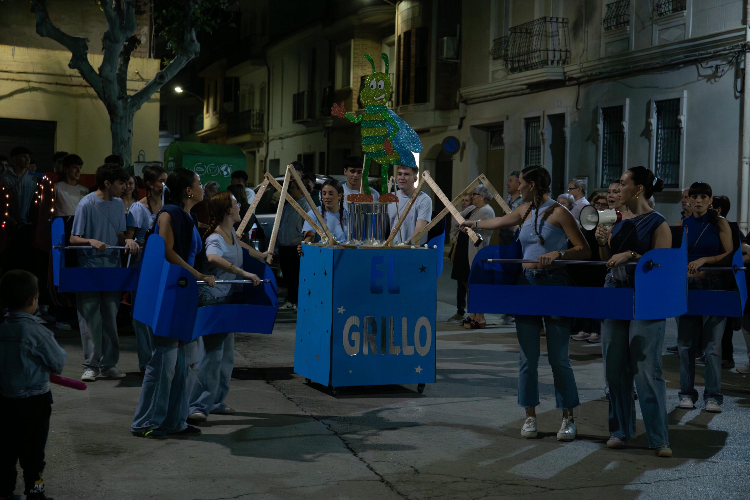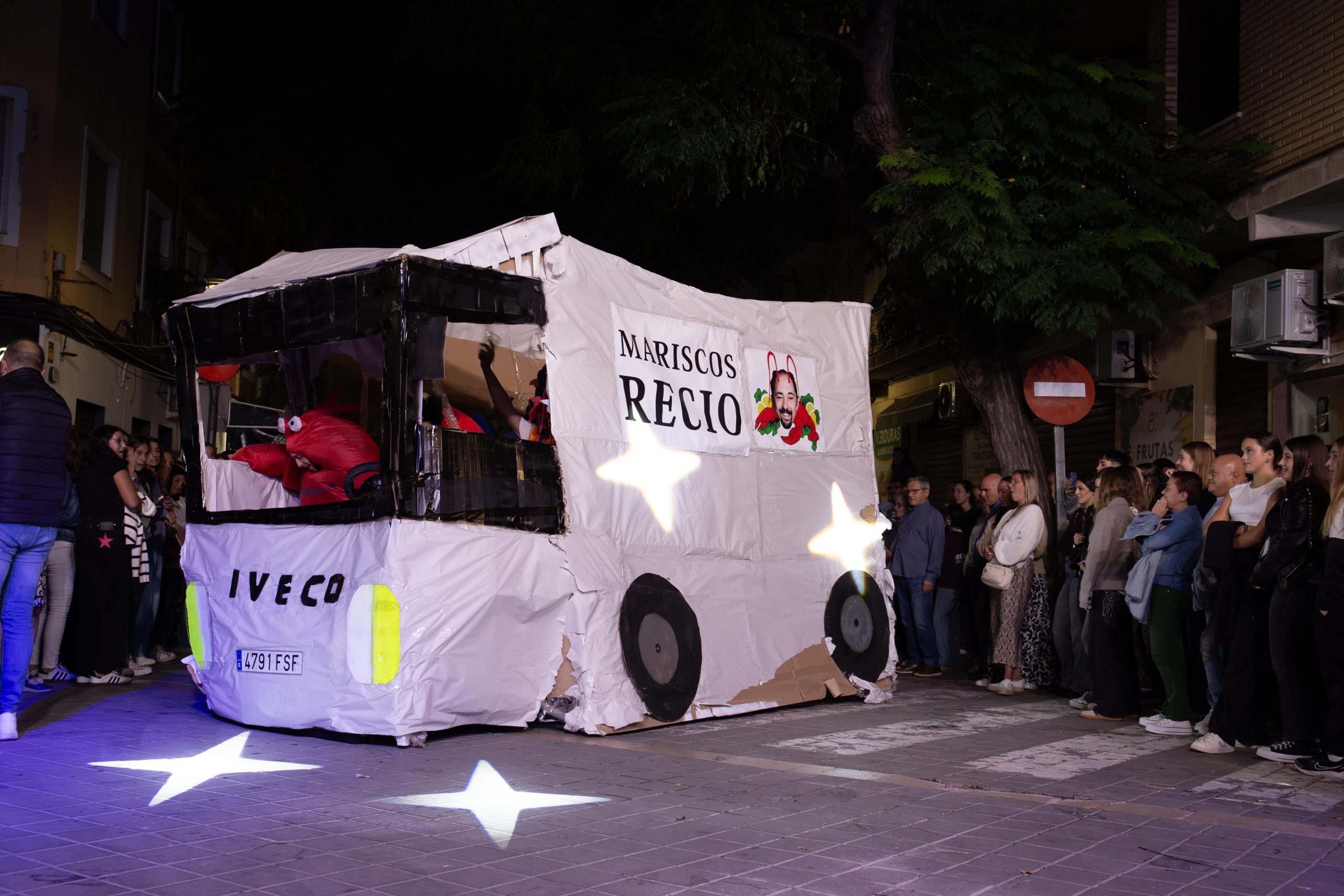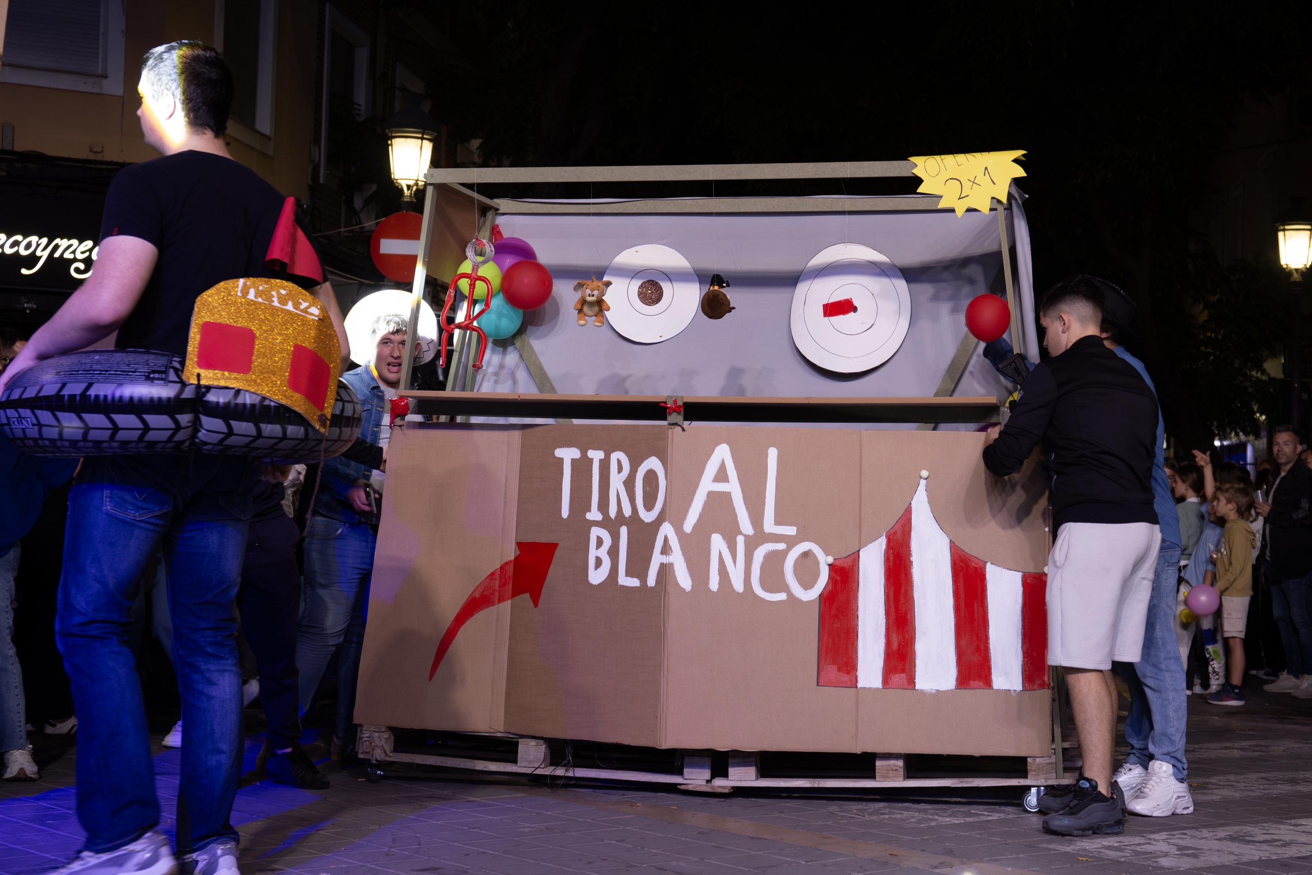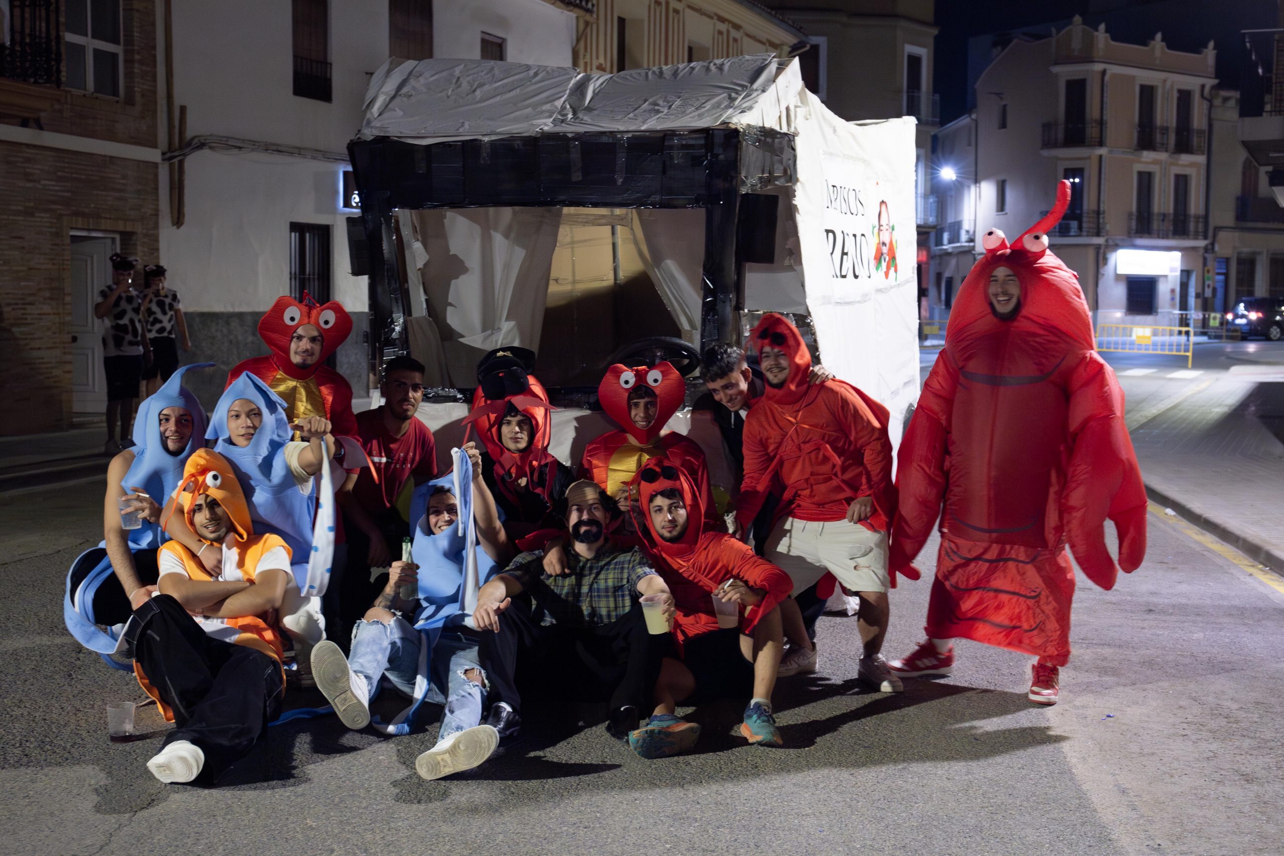 El recorrido finalizó en el escenario instalado en la Plaza Constitución para la entrega de Premios y la discomóvil posterior. El primer premio, valorado en 400 euros, fue para La Pre-Vendimia, que escenificaron el parque de atracciones “PrevePark”; en segundo lugar, el premio de 300 euros fue para la peña Vengadores, disfrazados de “Mariscos Recio”; el tercer premio, dotado de 200 euros, fue para los Tótems africanos, de La Falla Industria y Comercio, y el cuarto, por valor de 100 euros, fue para la peña La Travel, disfrazados de toros bajo el lema de “San Sergin”.