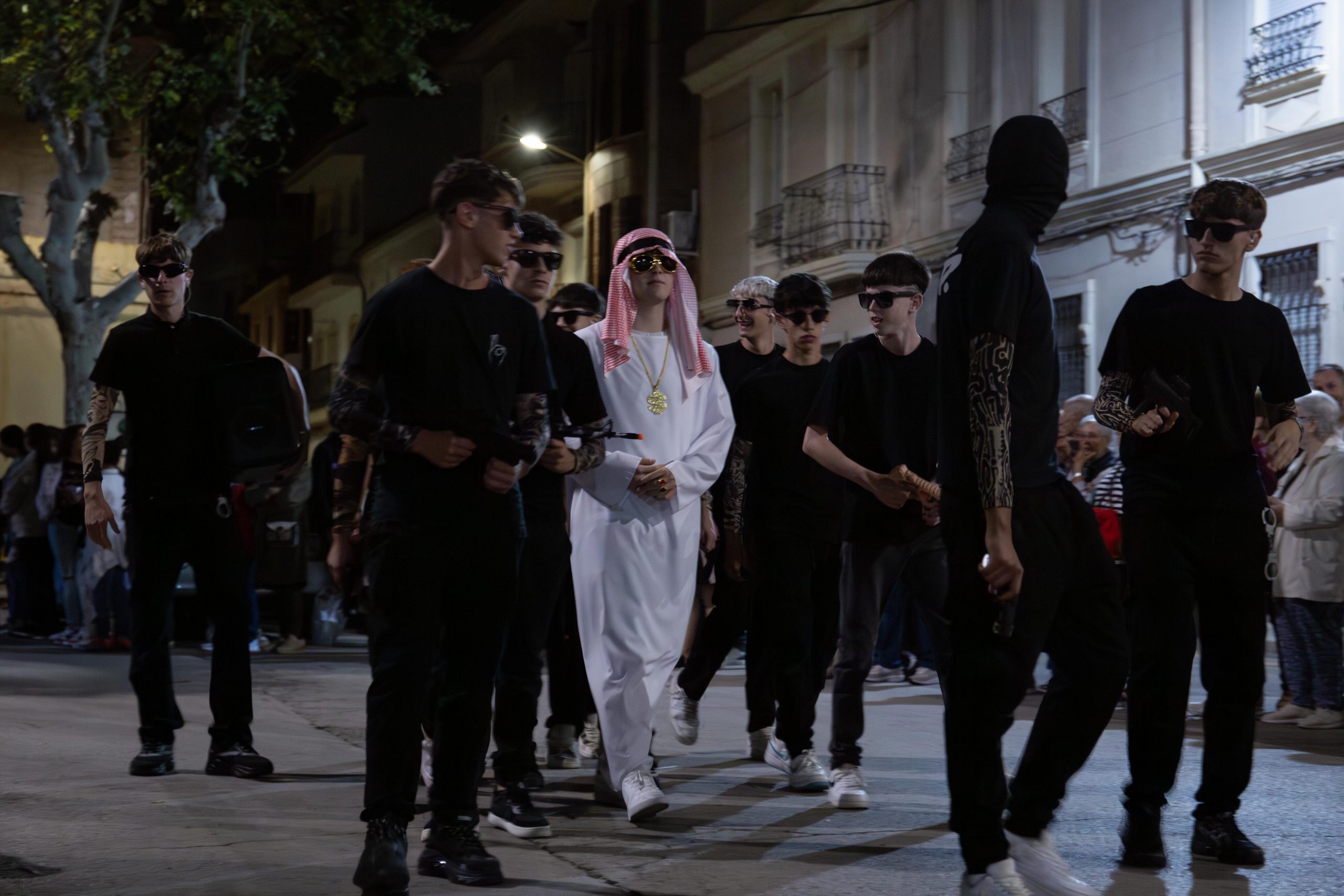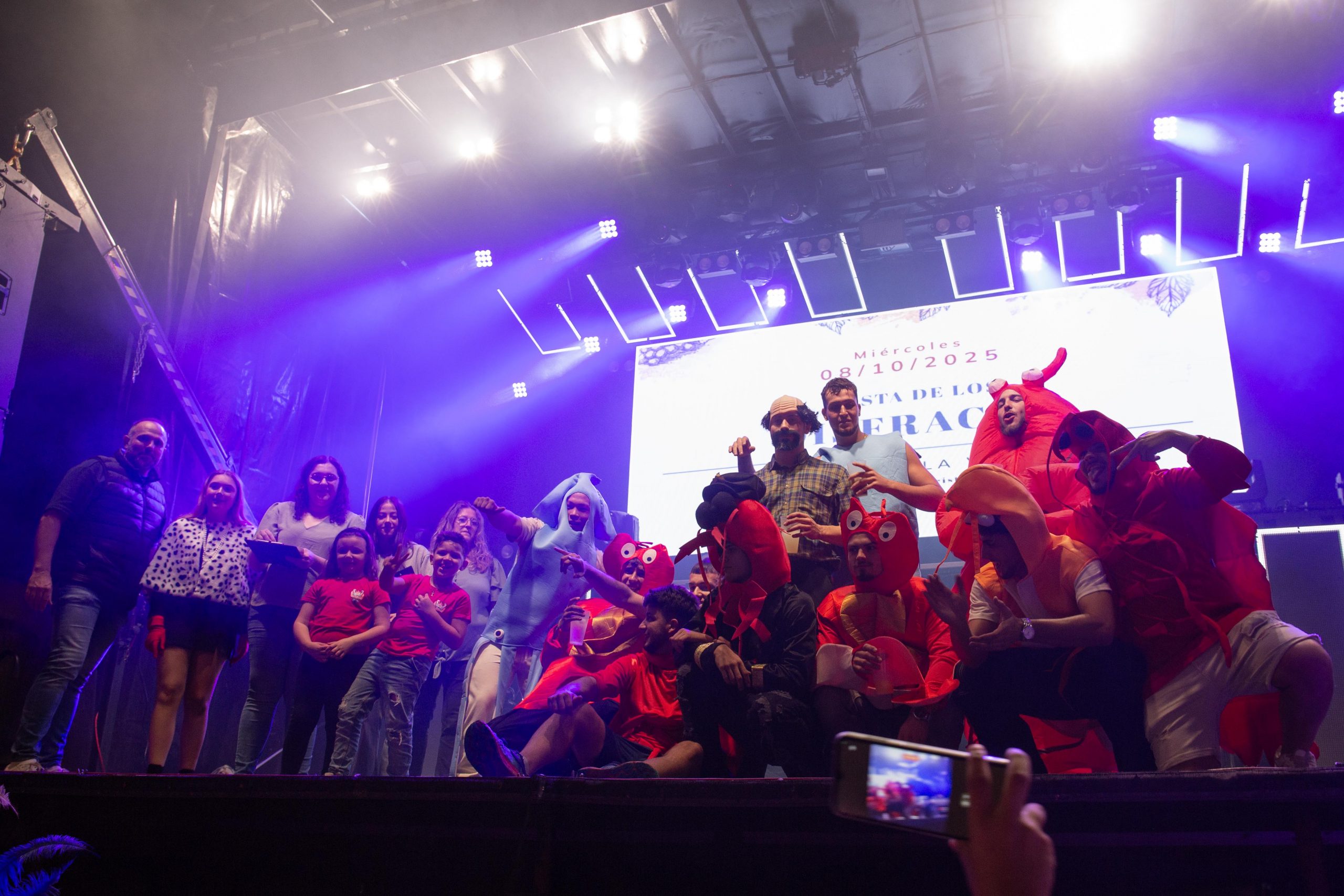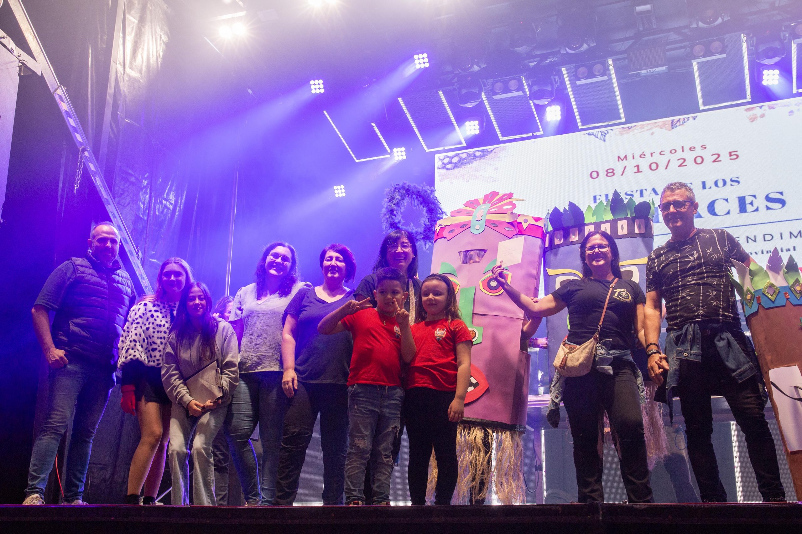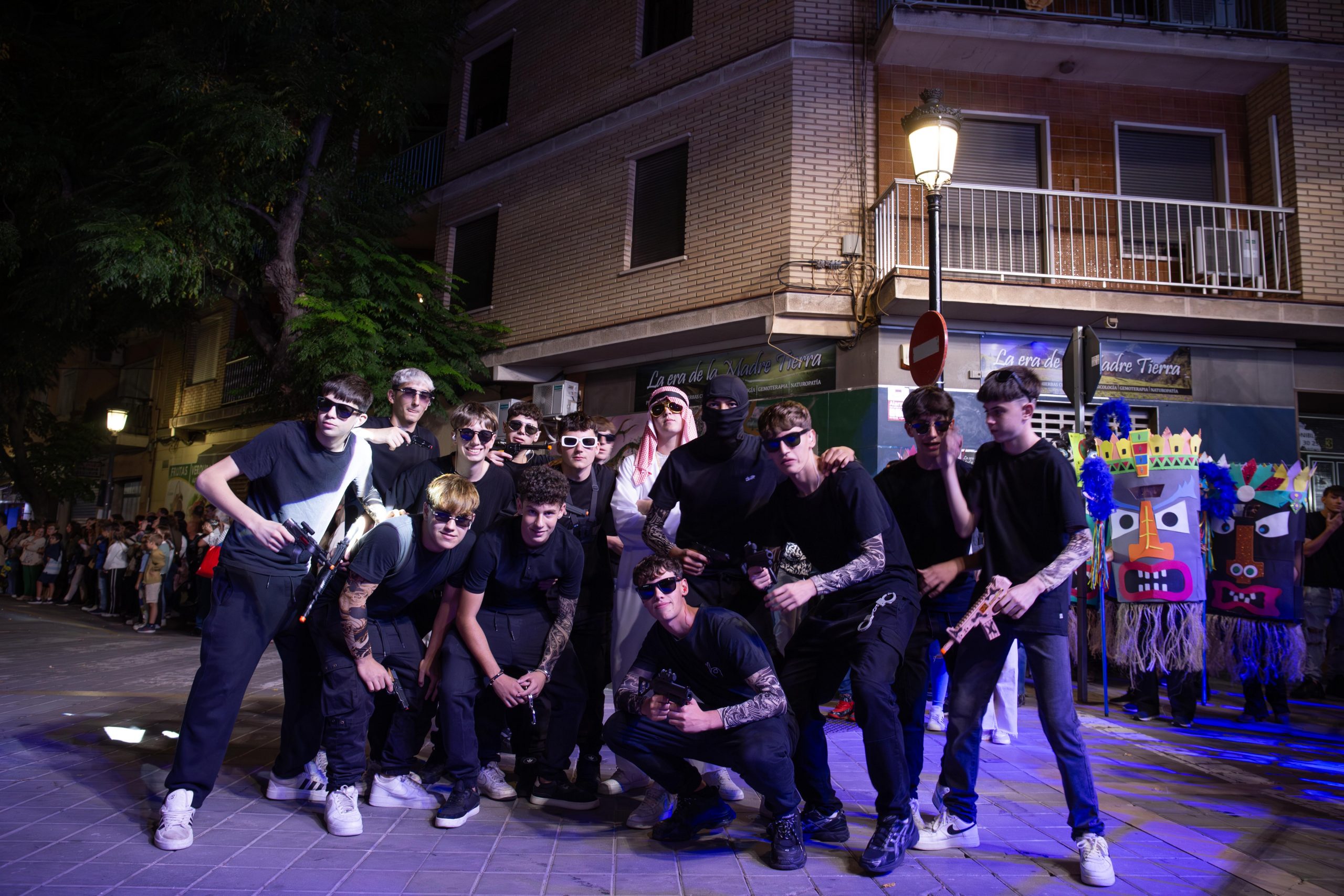 El recorrido finalizó en el escenario instalado en la Plaza Constitución para la entrega de Premios y la discomóvil posterior. El primer premio, valorado en 400 euros, fue para La Pre-Vendimia, que escenificaron el parque de atracciones “PrevePark”; en segundo lugar, el premio de 300 euros fue para la peña Vengadores, disfrazados de “Mariscos Recio”; el tercer premio, dotado de 200 euros, fue para los Tótems africanos, de La Falla Industria y Comercio, y el cuarto, por valor de 100 euros, fue para la peña La Travel, disfrazados de toros bajo el lema de “San Sergin”.