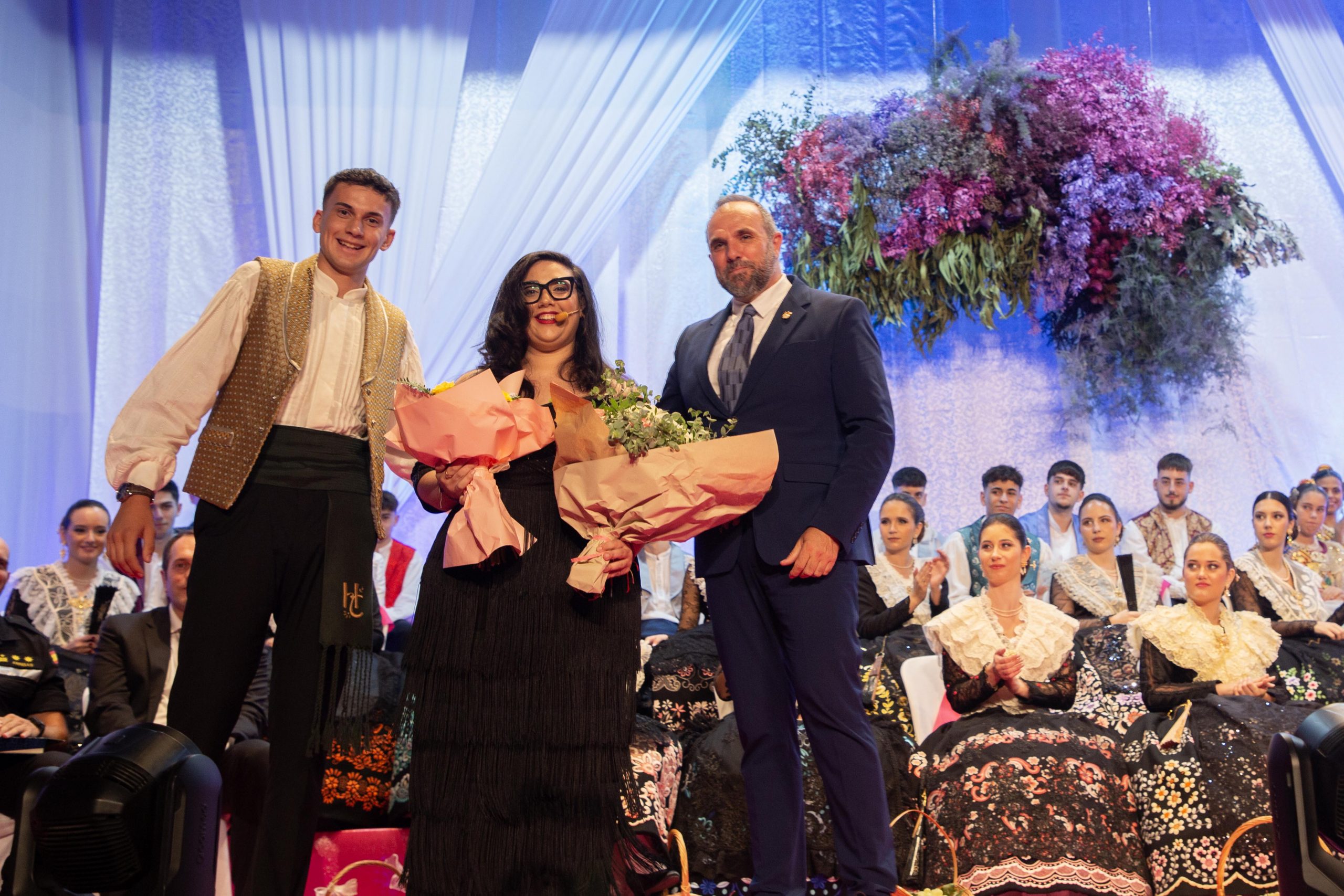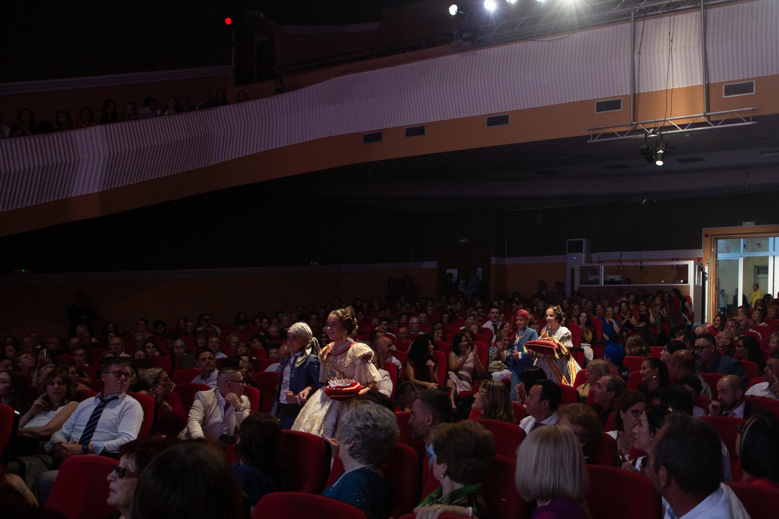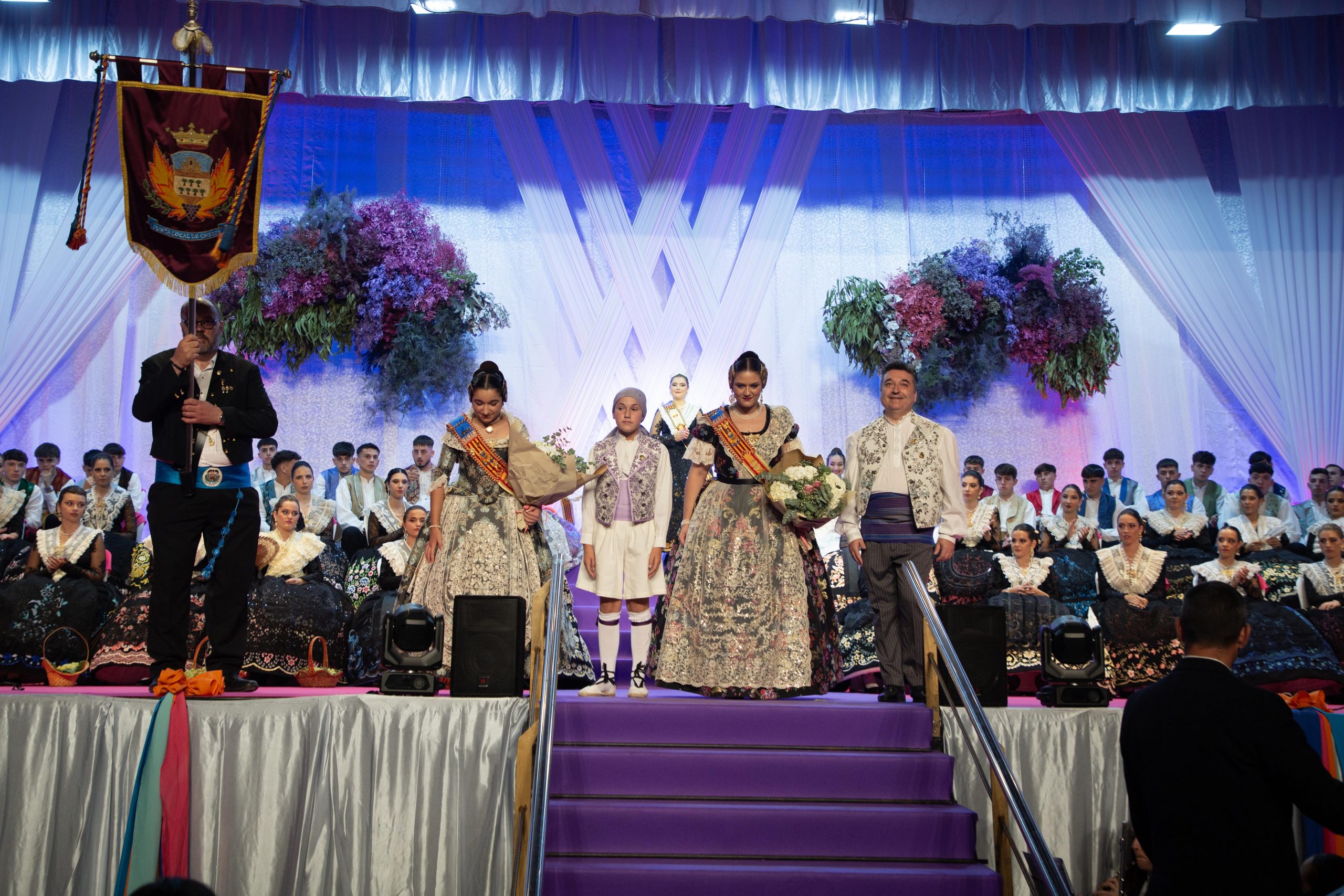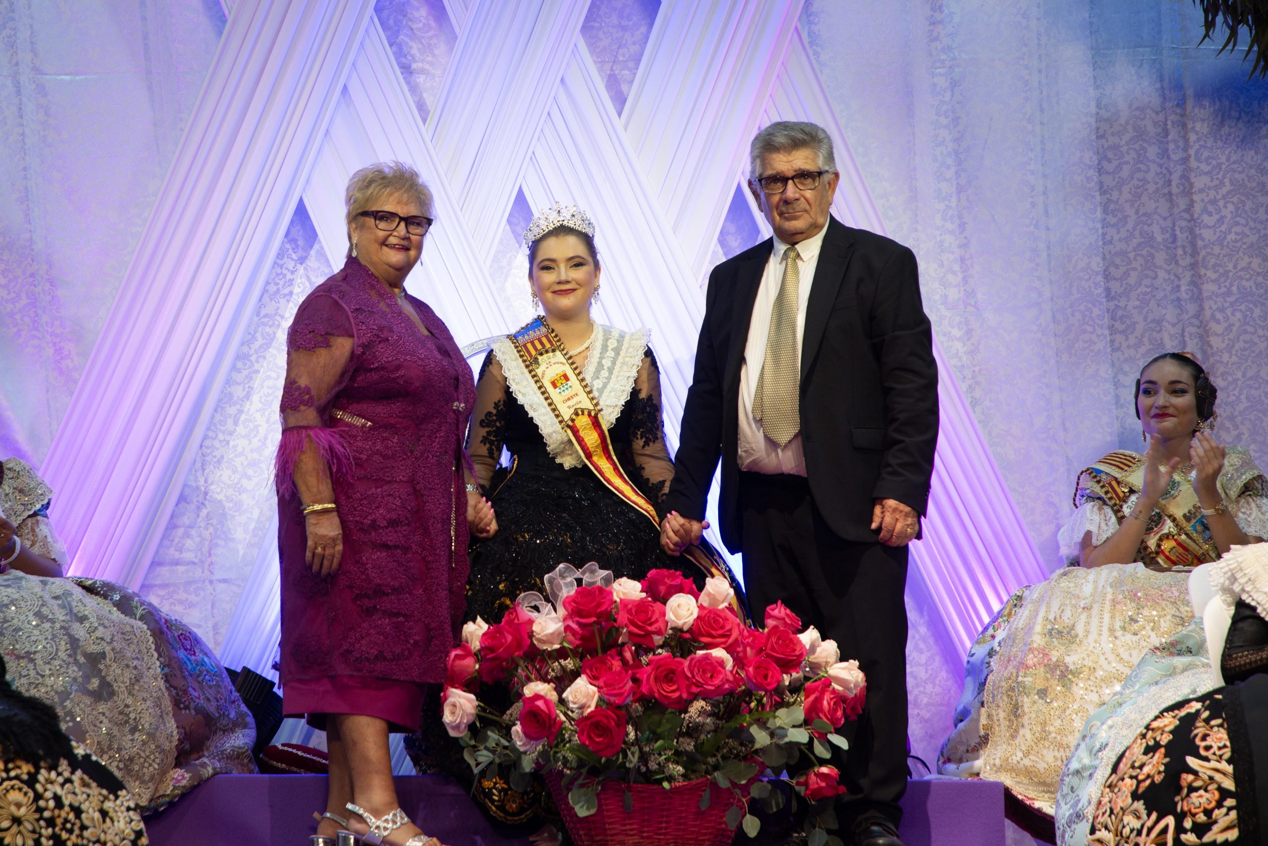 Los representantes de las Fallas locales, la Junta Local Fallera y de los Clavarios 2025 subieron al escenario también para ofrecer sus ramos de flores y sus obsequios a Rocío Toledano Horta y, ya entrando en la recta final del acto, en un momento muy emotivo, los abuelos de las reina le hicieron entrega de una cesta floral y su madre le dedicó unas cálidas palabras, leídas en su nombre por Lucía Sánchez García.