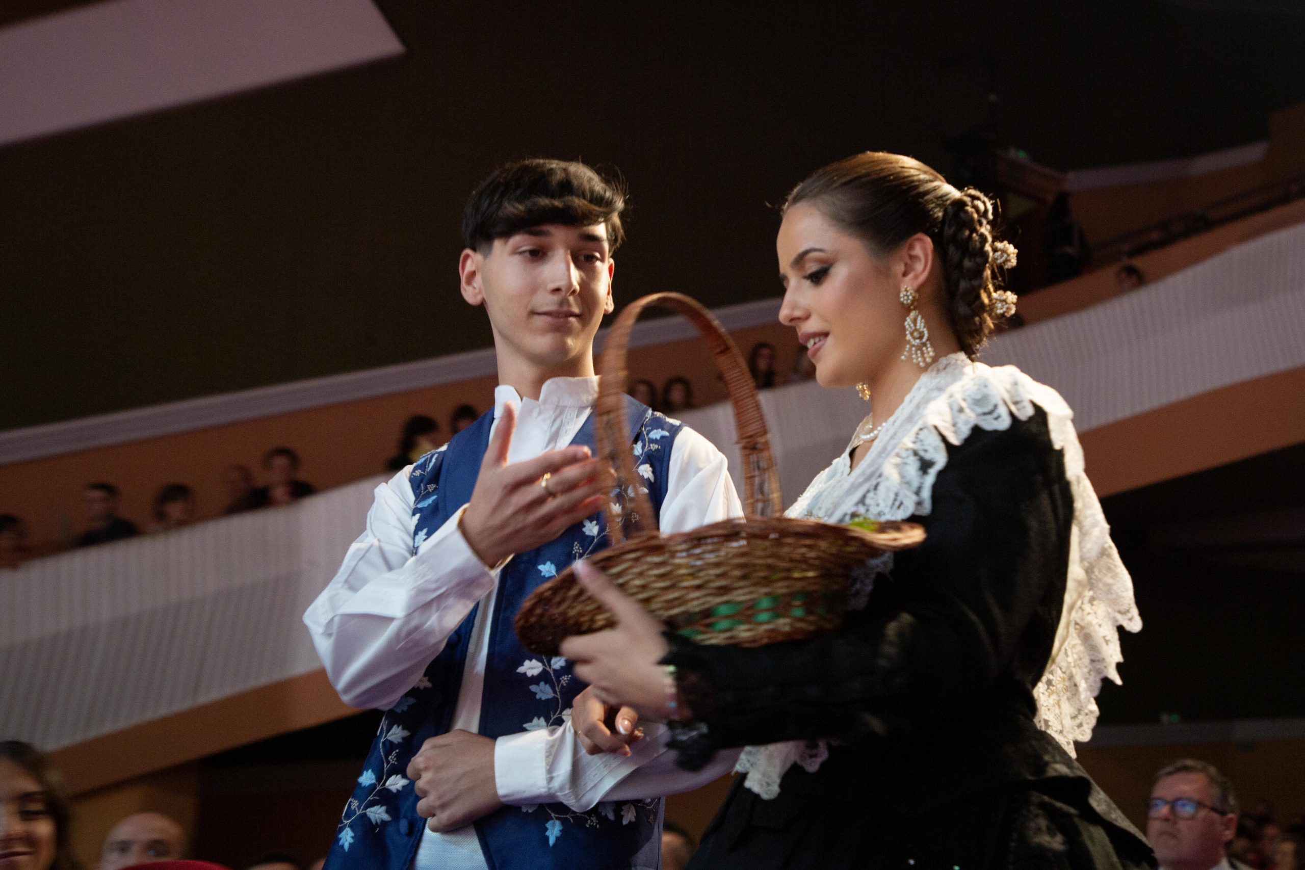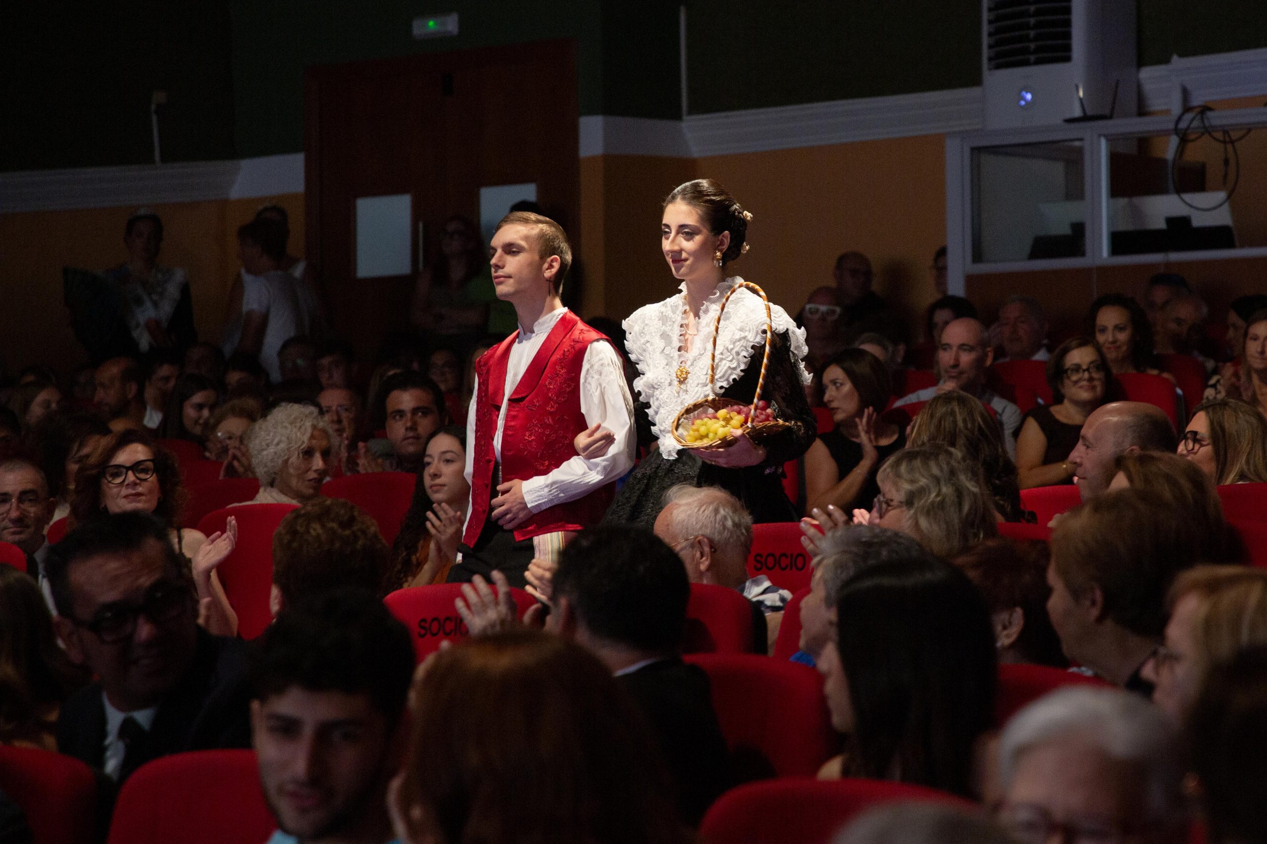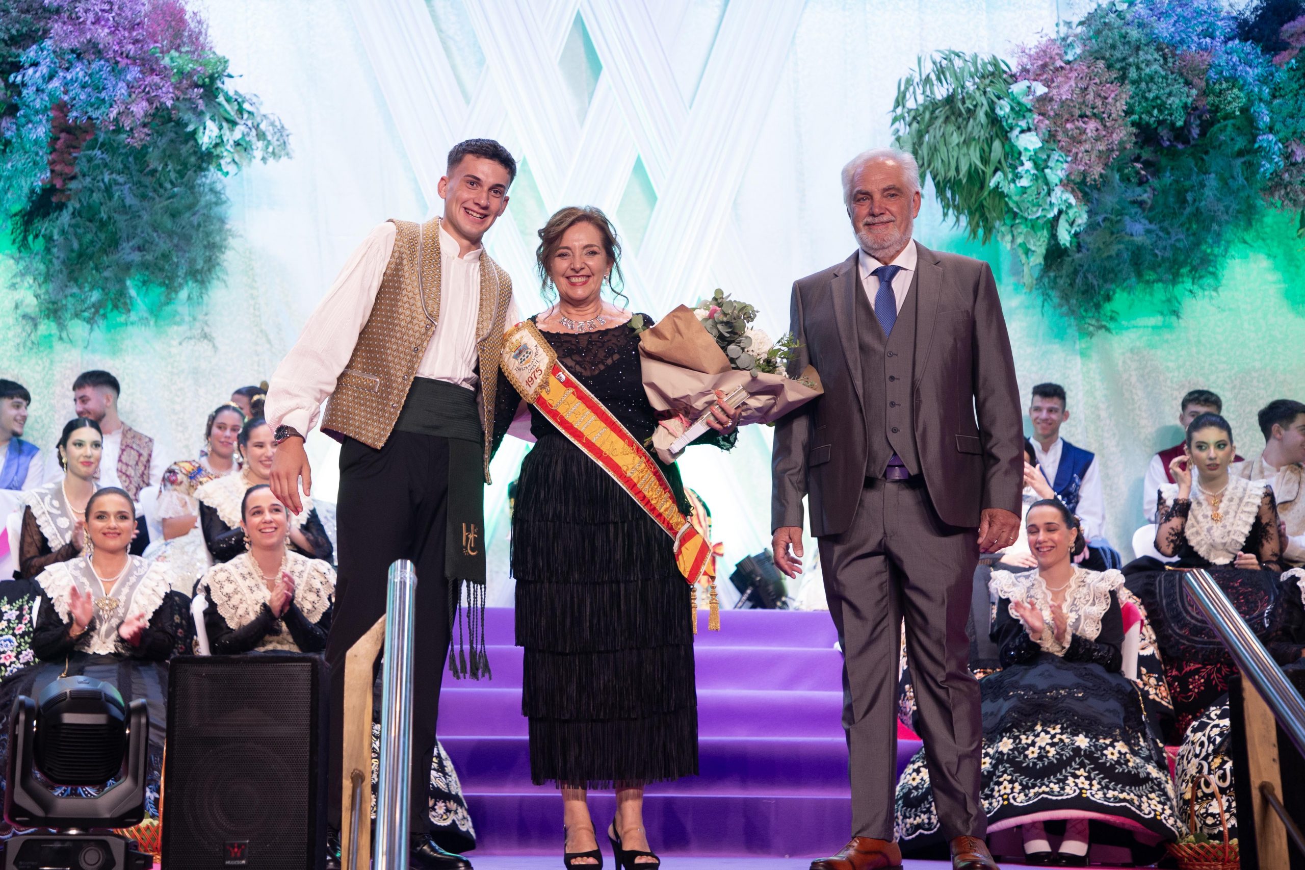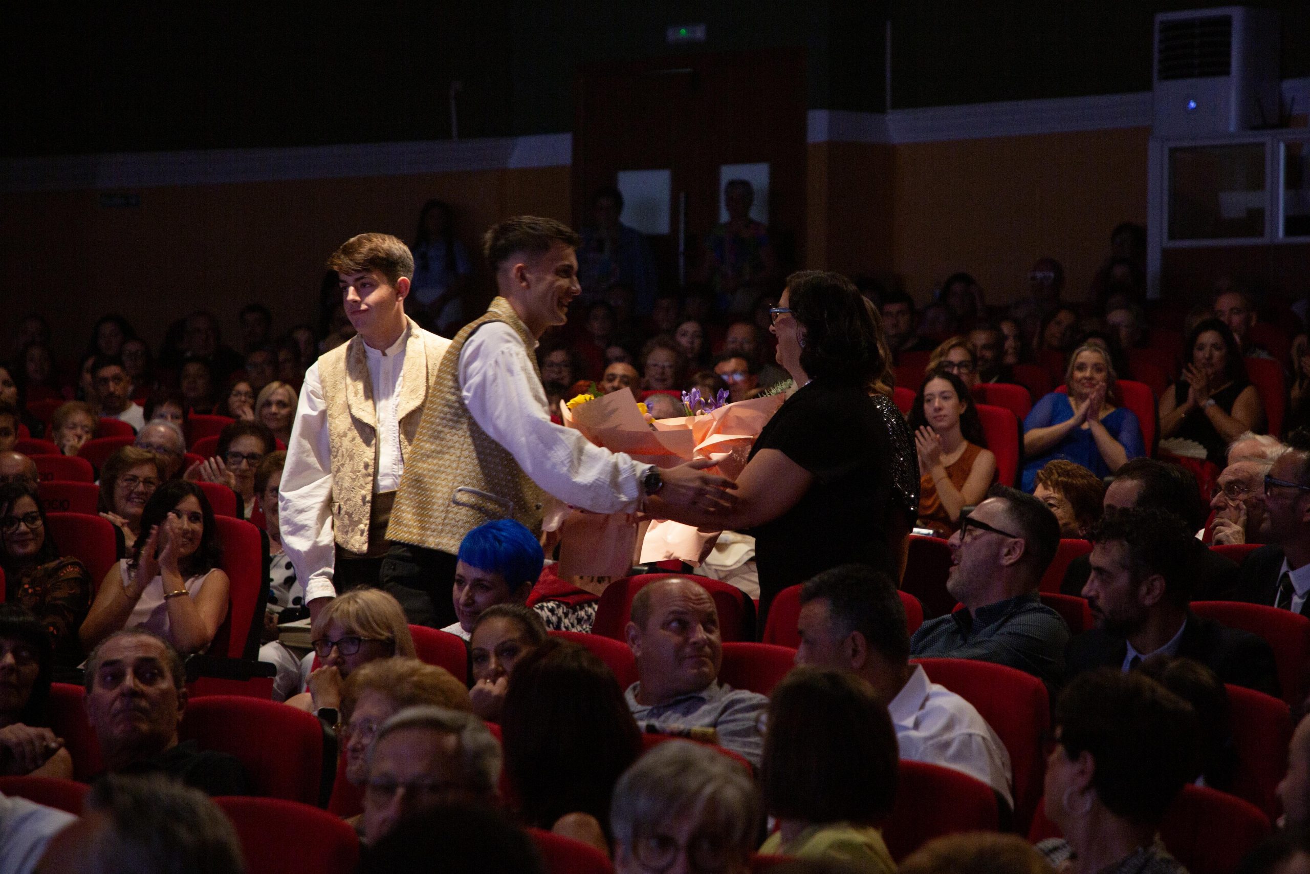 Los representantes de las Fallas locales, la Junta Local Fallera y de los Clavarios 2025 subieron al escenario también para ofrecer sus ramos de flores y sus obsequios a Rocío Toledano Horta y, ya entrando en la recta final del acto, en un momento muy emotivo, los abuelos de las reina le hicieron entrega de una cesta floral y su madre le dedicó unas cálidas palabras, leídas en su nombre por Lucía Sánchez García.