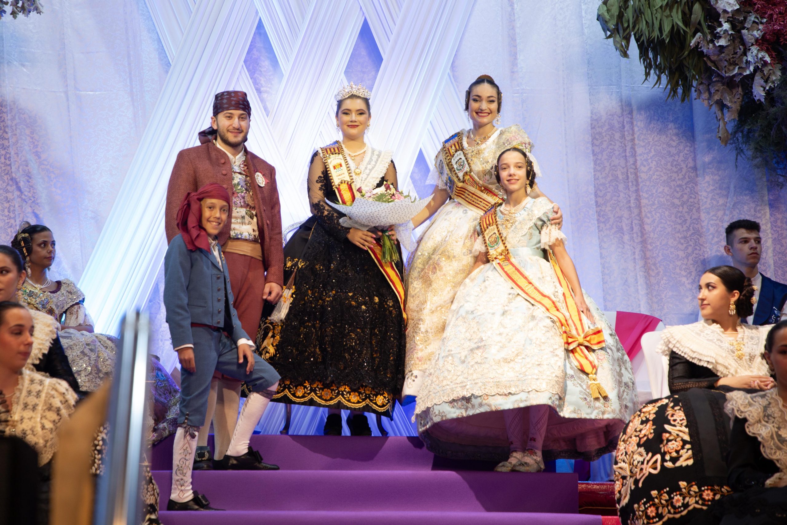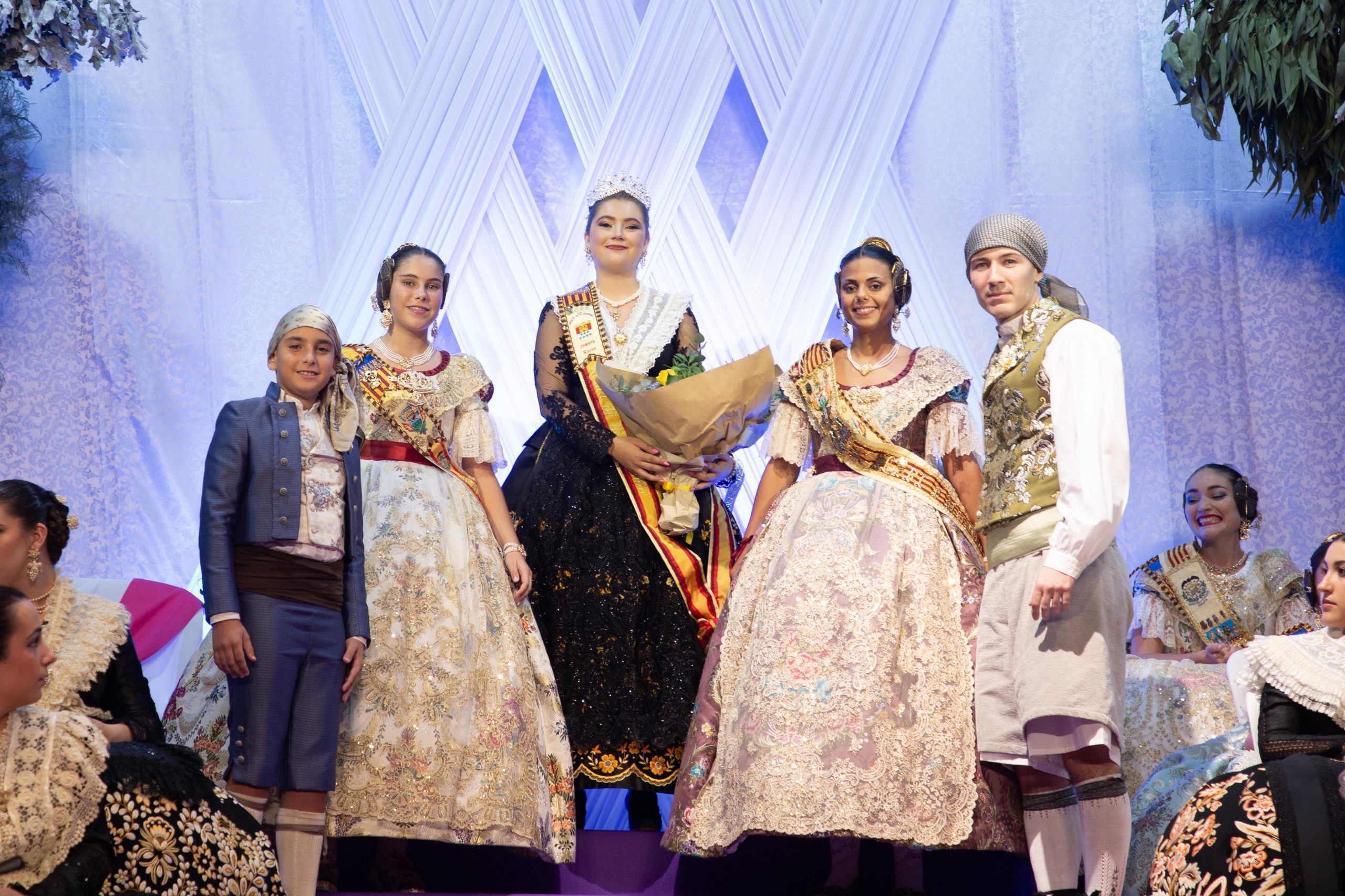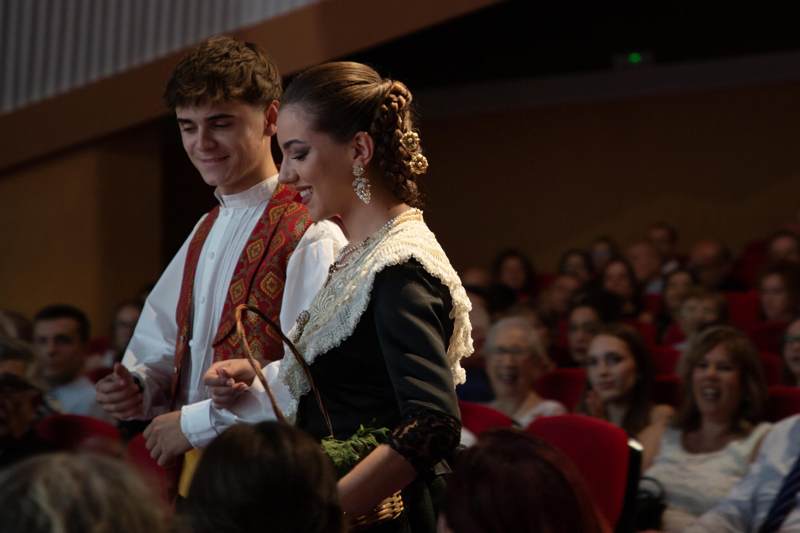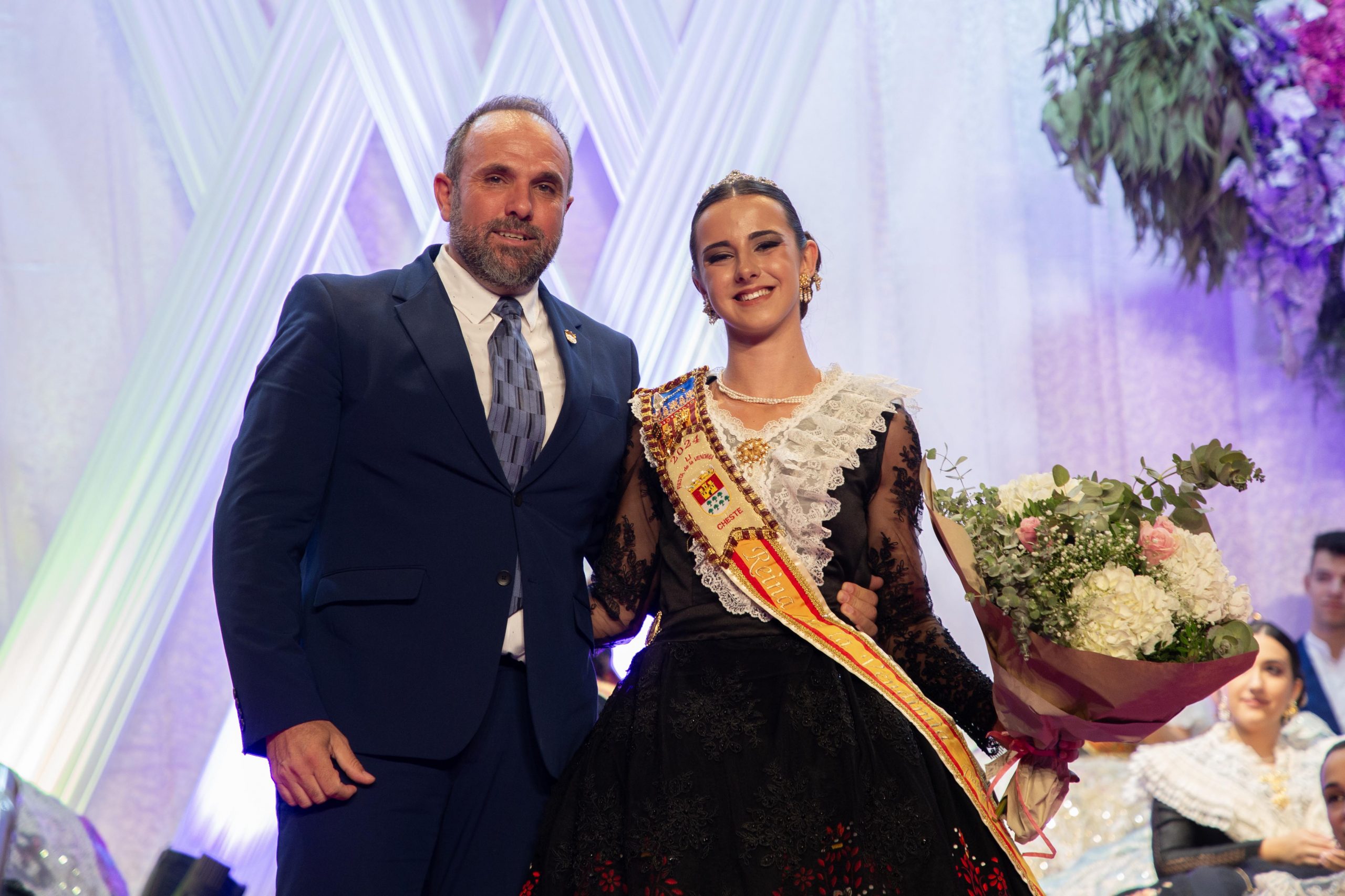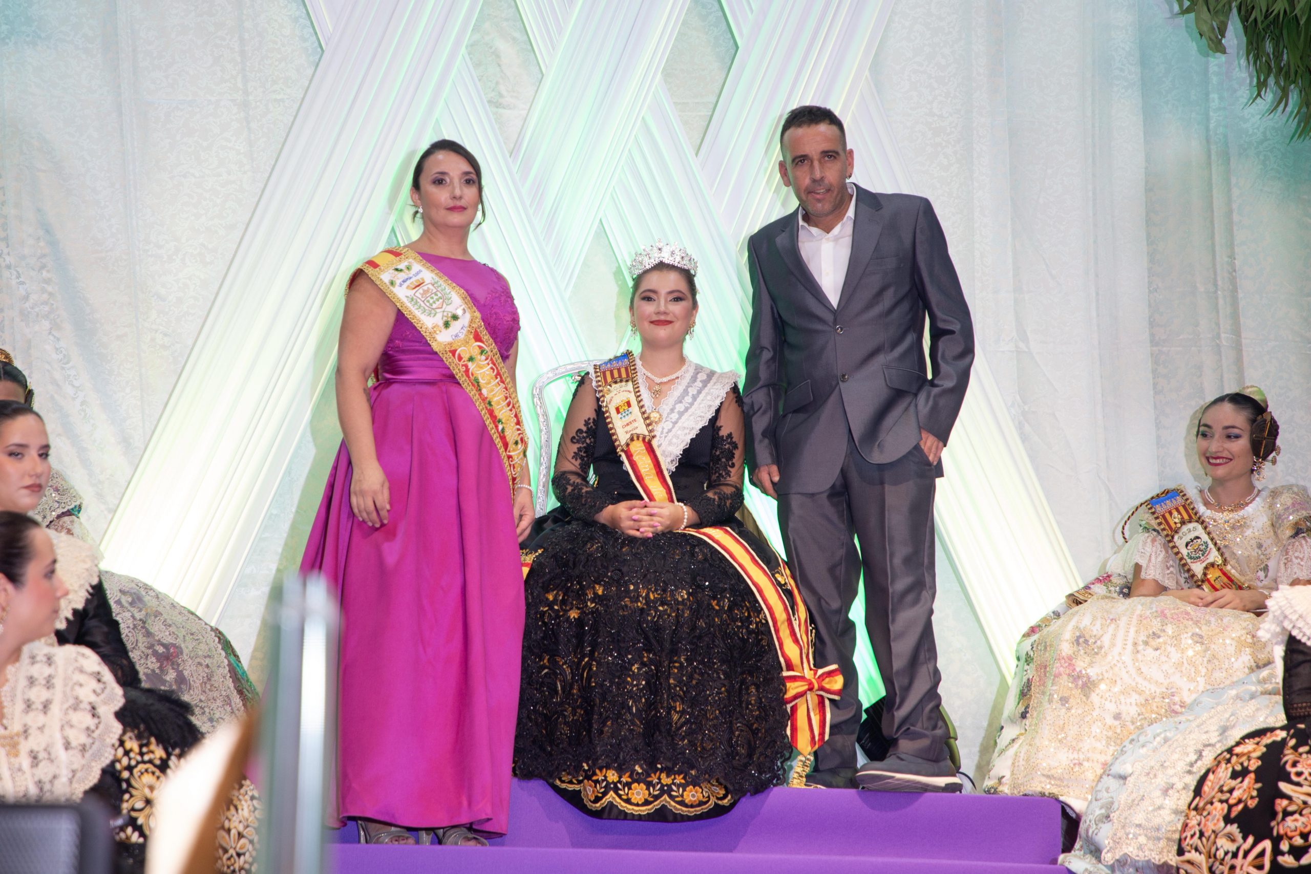 Los representantes de las Fallas locales, la Junta Local Fallera y de los Clavarios 2025 subieron al escenario también para ofrecer sus ramos de flores y sus obsequios a Rocío Toledano Horta y, ya entrando en la recta final del acto, en un momento muy emotivo, los abuelos de las reina le hicieron entrega de una cesta floral y su madre le dedicó unas cálidas palabras, leídas en su nombre por Lucía Sánchez García.
