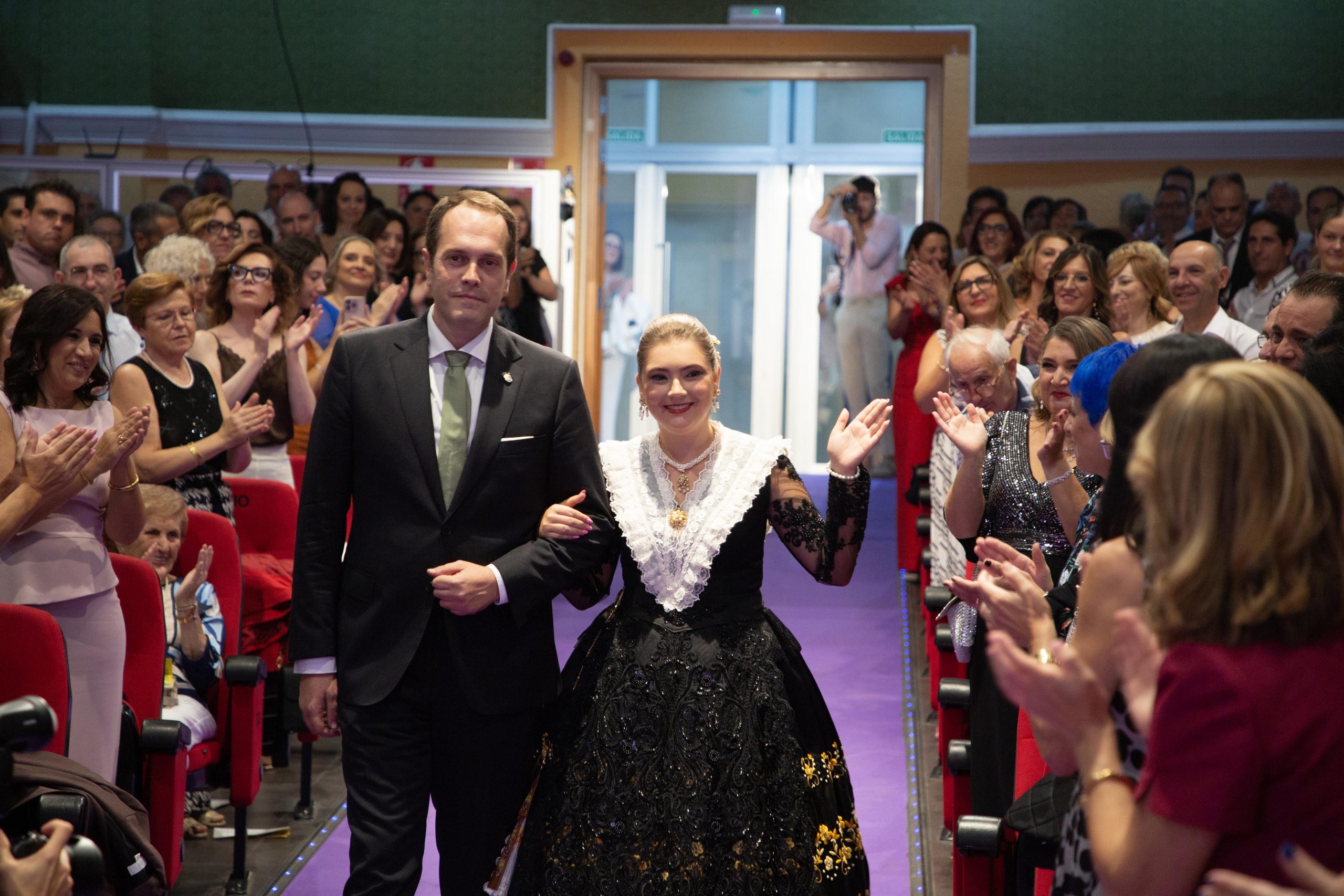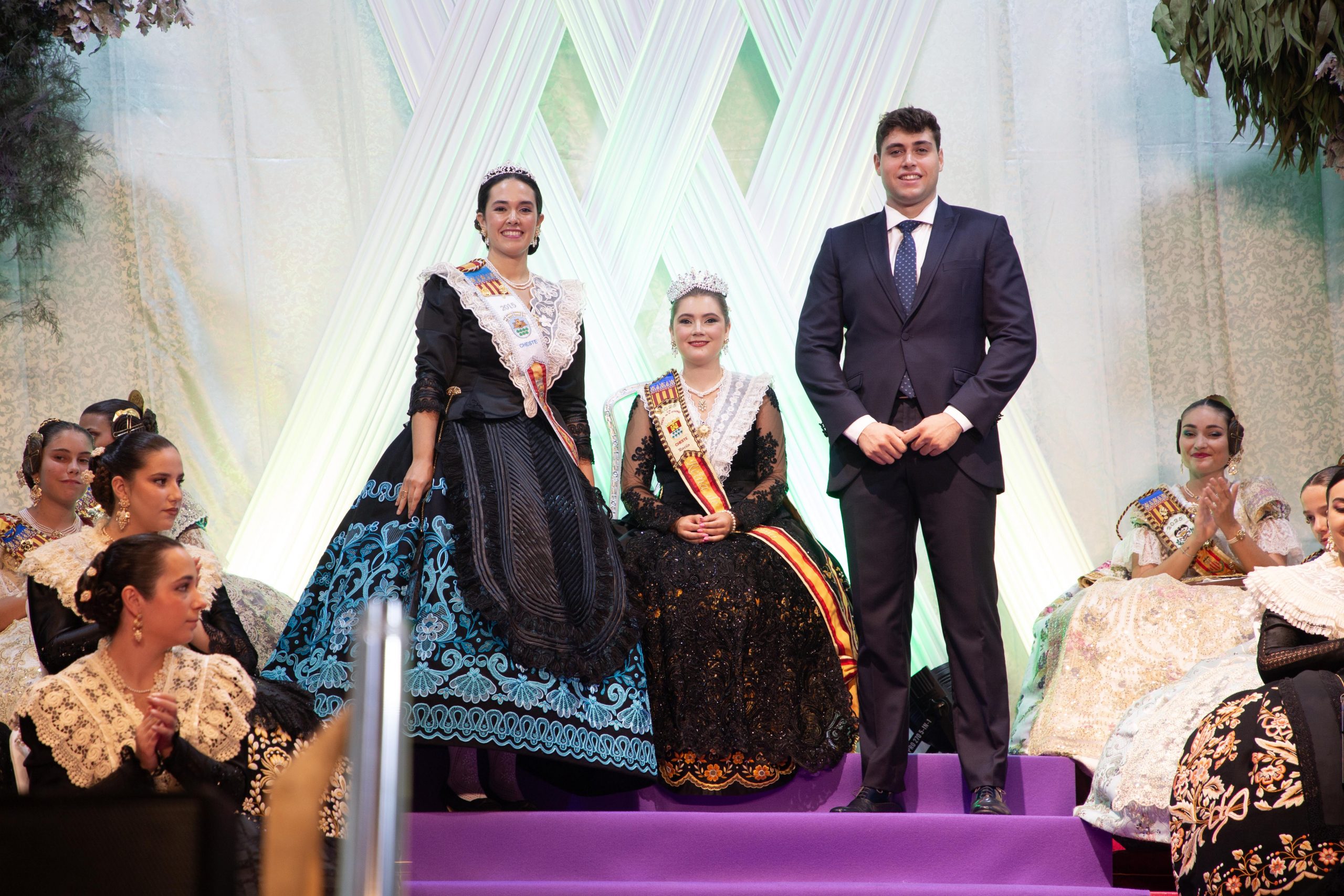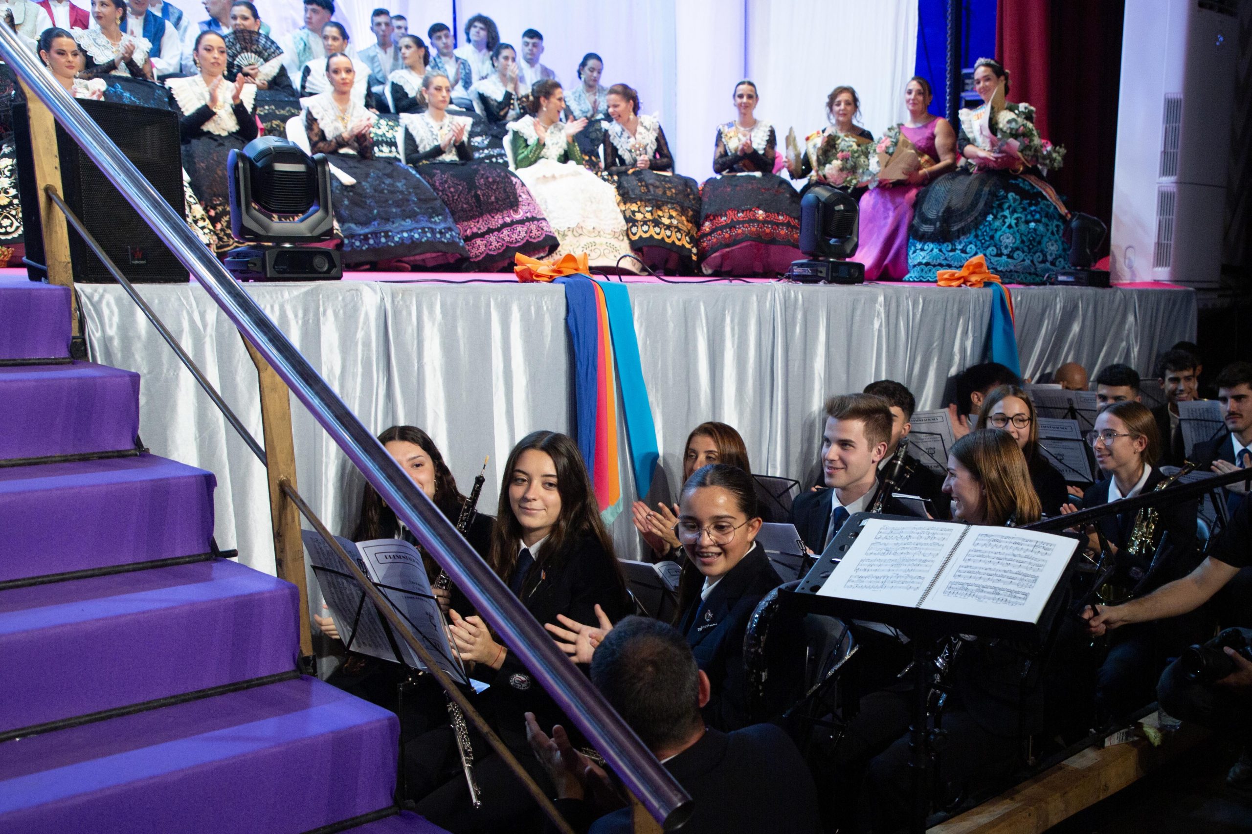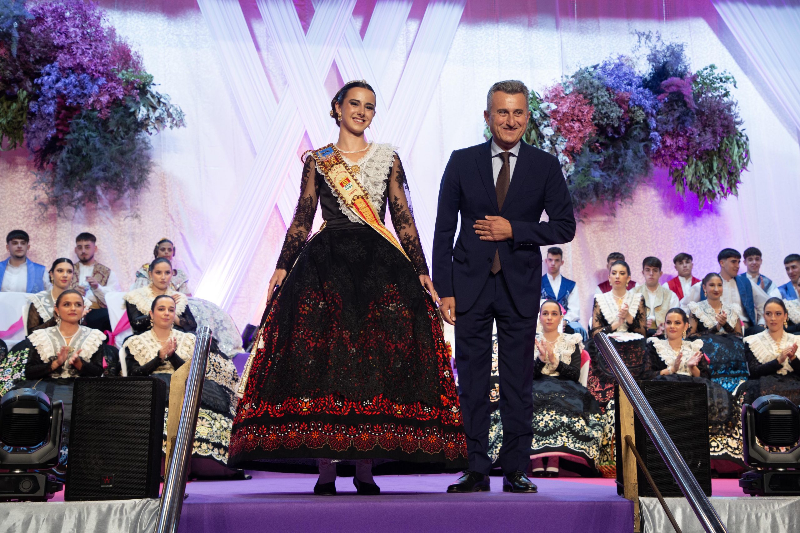 Los representantes de las Fallas locales, la Junta Local Fallera y de los Clavarios 2025 subieron al escenario también para ofrecer sus ramos de flores y sus obsequios a Rocío Toledano Horta y, ya entrando en la recta final del acto, en un momento muy emotivo, los abuelos de las reina le hicieron entrega de una cesta floral y su madre le dedicó unas cálidas palabras, leídas en su nombre por Lucía Sánchez García.