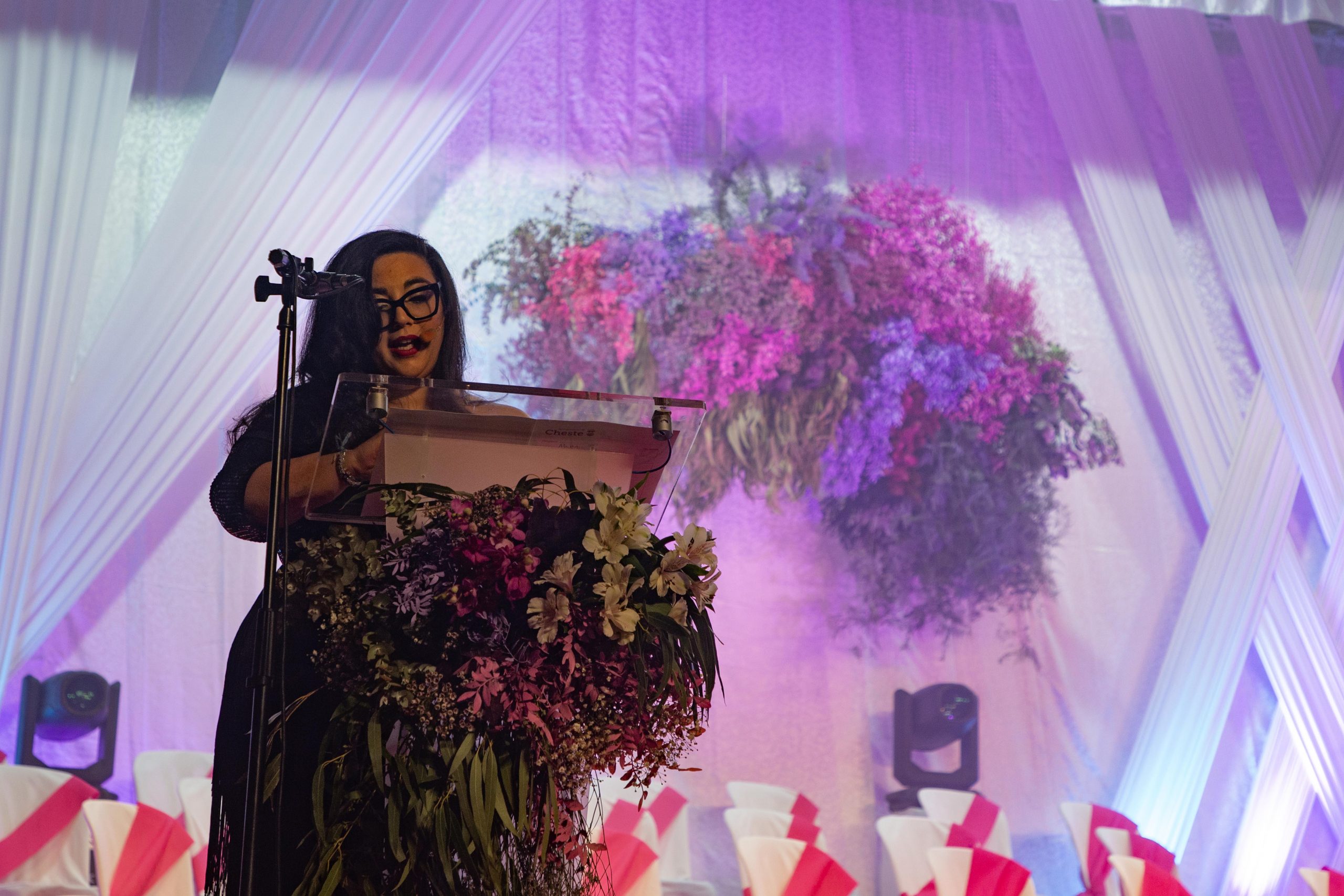 A las 19:00, con el aforo completo, comenzó el juego de luces que finalizaría dejando al descubierto un impresionante trono, confeccionado artesanalmente por Cristóbal de La Cruz y Bárbara de La Cruz, con arreglo floral de Deborah Soriano.