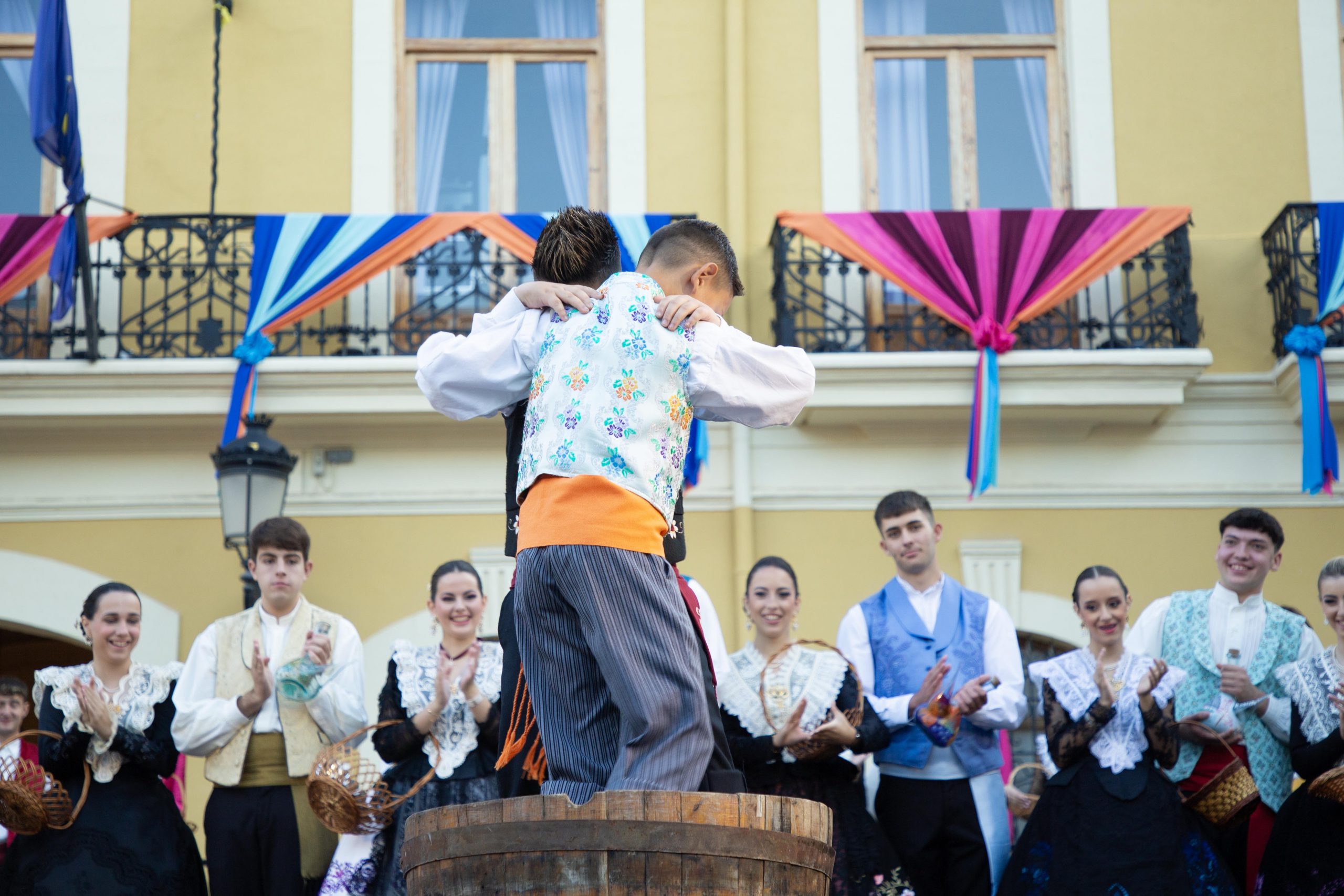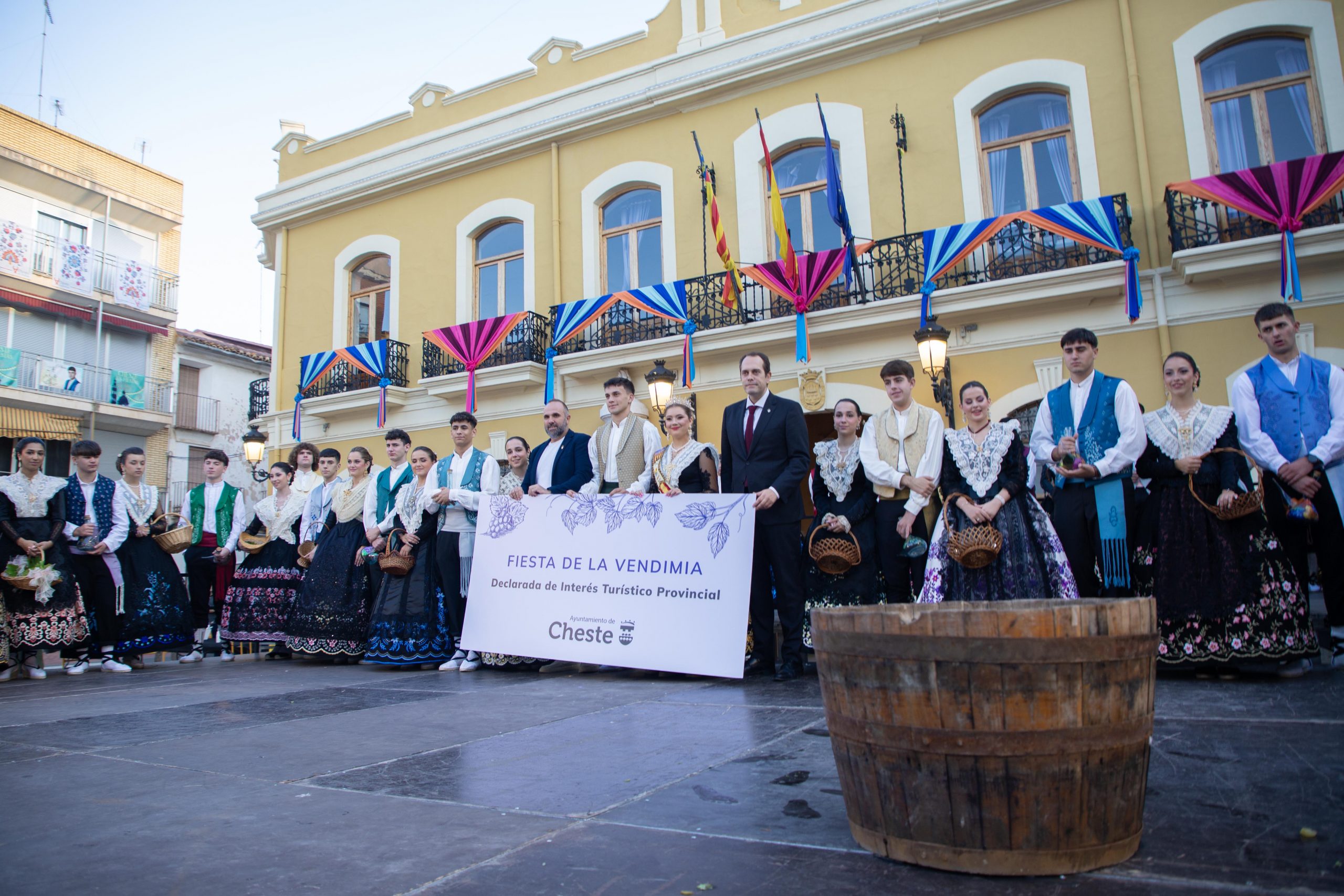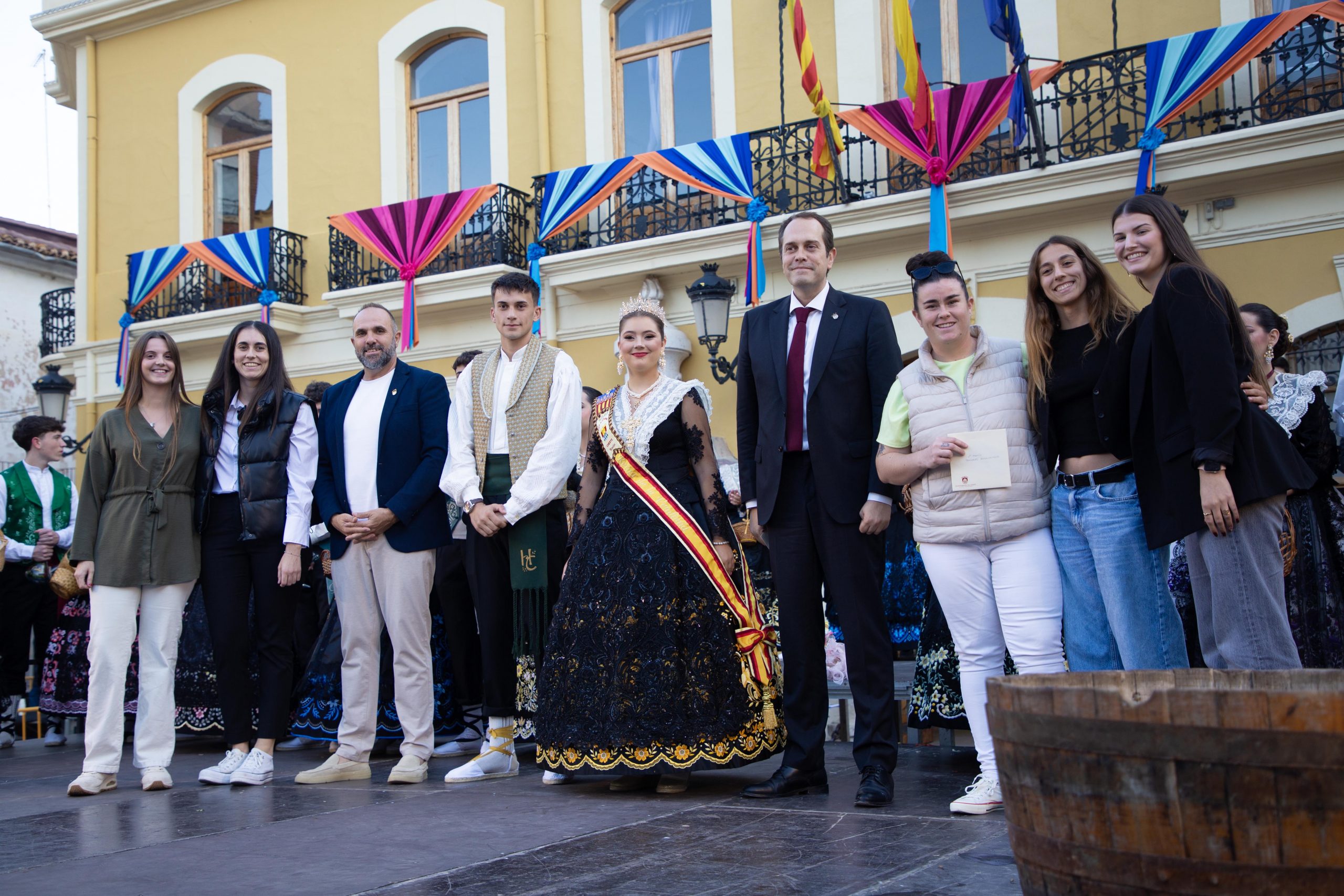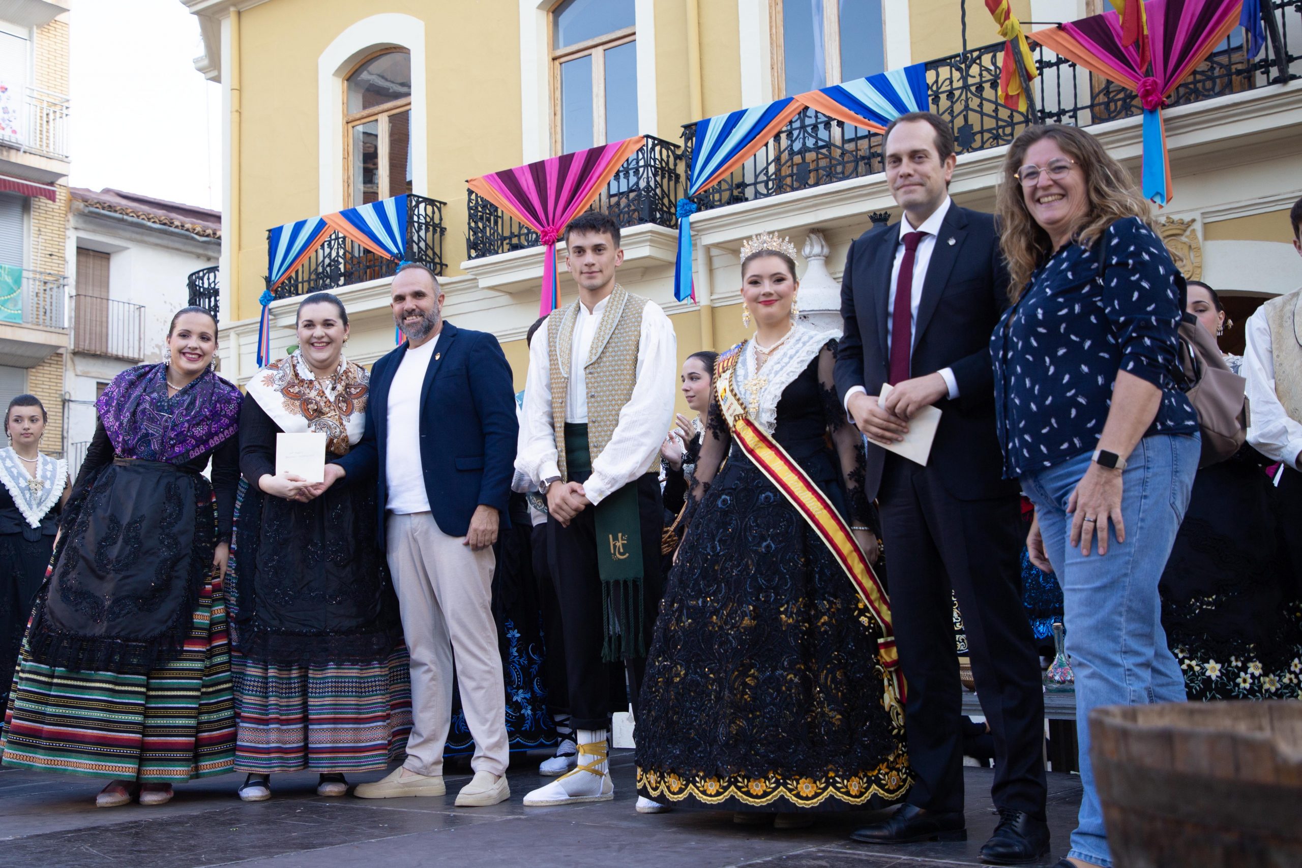 Tras los premios, el alcalde, José Morell, ensalzó en su discurso los valores de la fiesta y la proclamó como Fiesta de Interés Turístico Provincial, invitando a los chicos y chicas de la Vendimia a hacerse una foto conmemorativa. «La Pisá de la uva es uno de los ejes centrales de nuestras fiestas de la Vendimia, repletas de tradiciones que mantenemos vivas porque forman parte de nuestro ser. No podemos olvidar que nuestro origen está ligado al cultivo de la tierra y en día como hoy, más que nunca, tenemos que reivindicar el trabajo de quienes hoy continúan dedicados a la agricultura, y en especial al cultivo de la vid”, manifestaba Morell. «Este año celebramos la declaración otorgada por la Generalitat que reconoce a nuestra Fiesta como de Interés Turístico Provincial. Un reconocimiento a nuestra tradición, a una de las manifestaciones culturales más importantes, más significativas, más identitarias de nuestro pueblo. Pero también es un reconocimiento a las personas que generación tras generación han hecho posible que se fueran desarrollando, consolidando y ampliando, así que gracias a todos y todas”.