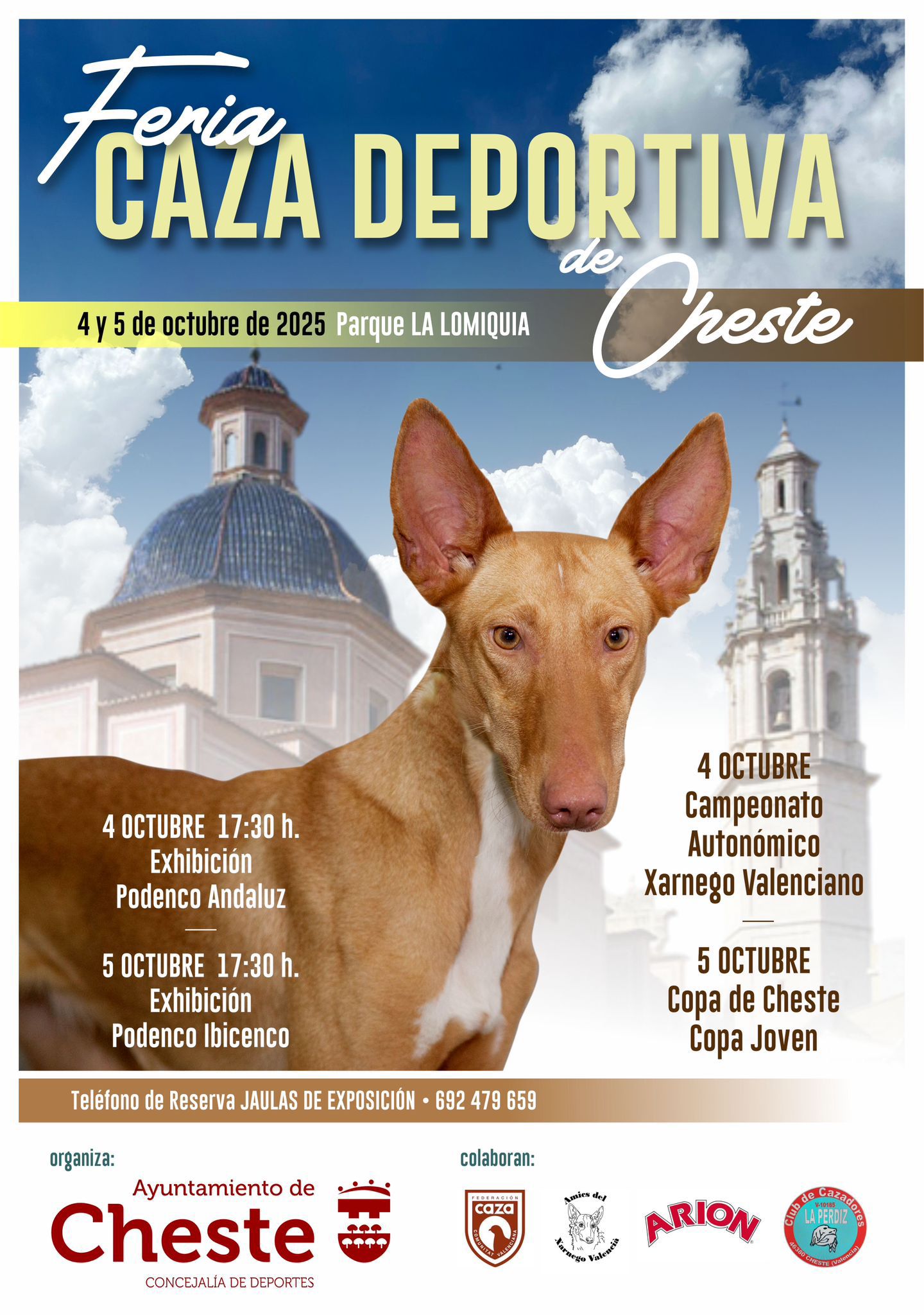 La Concejalía de Deportes ha organizado una Feria de la Caza Deportiva los días 4 y 5 de octubre, en el parque de La Lomiquia, con un amplio programa que contempla la celebración del Campeonato Autonómico de Xarnego Valenciano, el sábado; así como una Copa de Cheste y una Copa Joven, el domingo.
