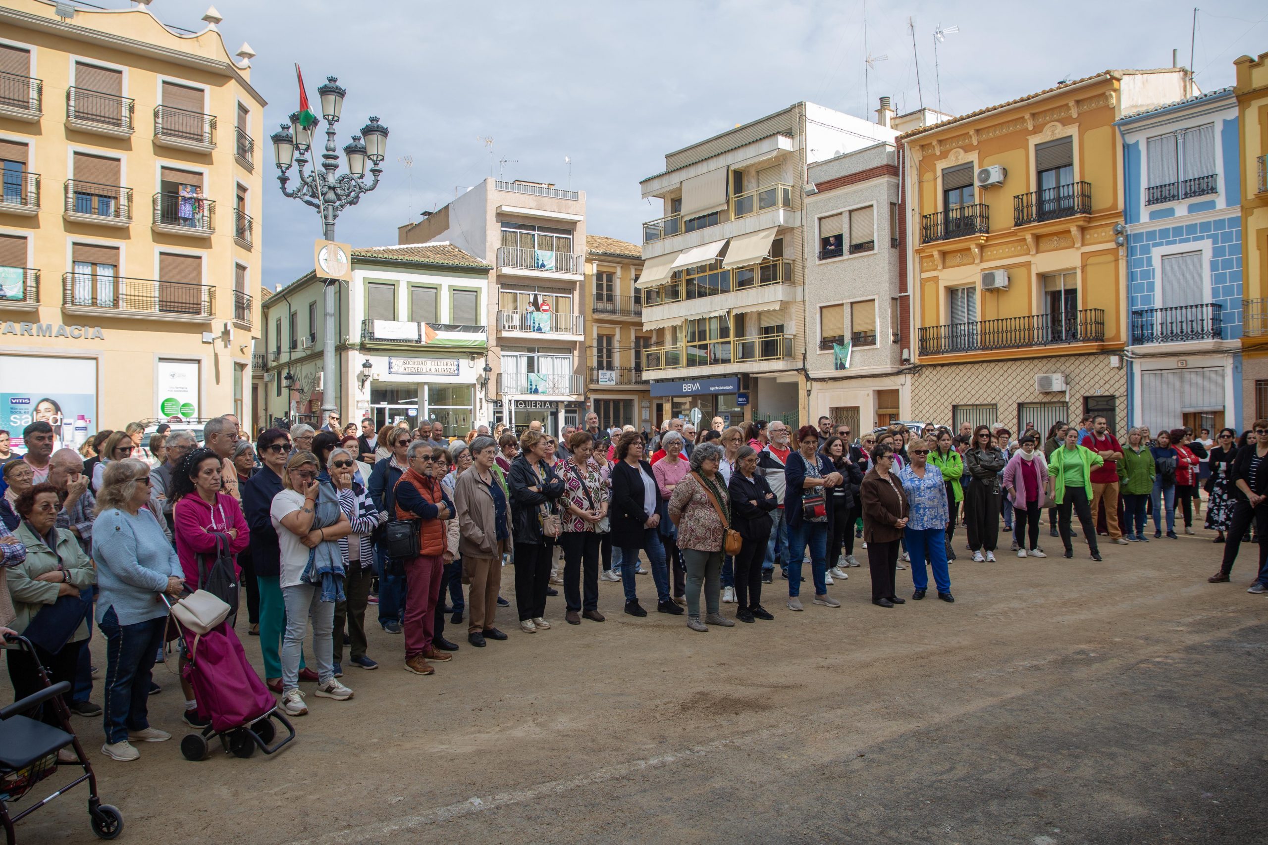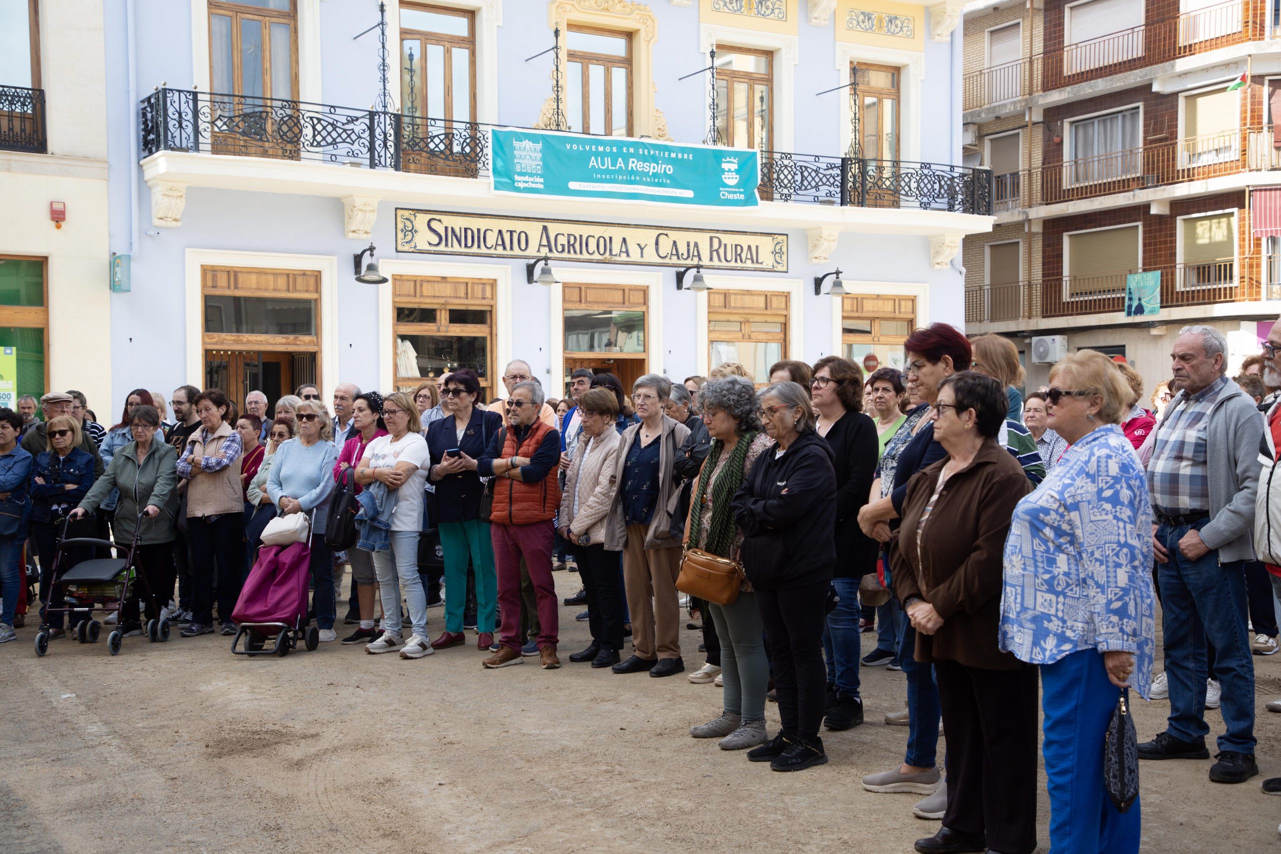 Esta mañana, a las 12:00, decenas de vecinos y vecinas de Cheste se han concentrado en la plaza Doctor Cajal con motivo del primer aniversario de la DANA.