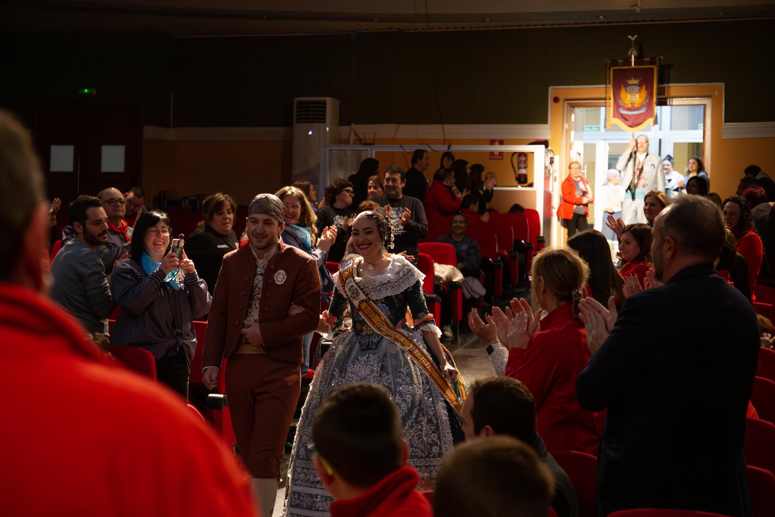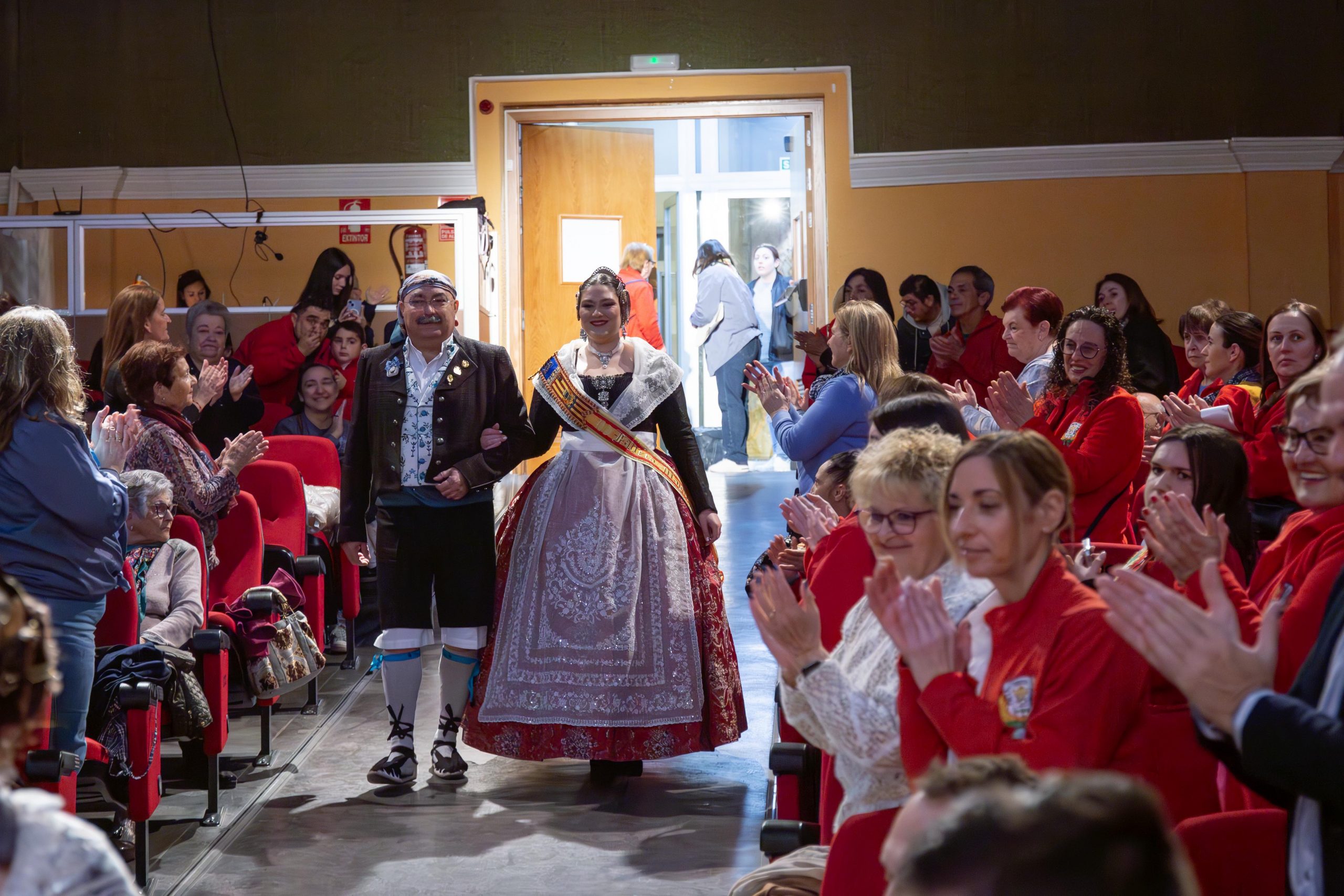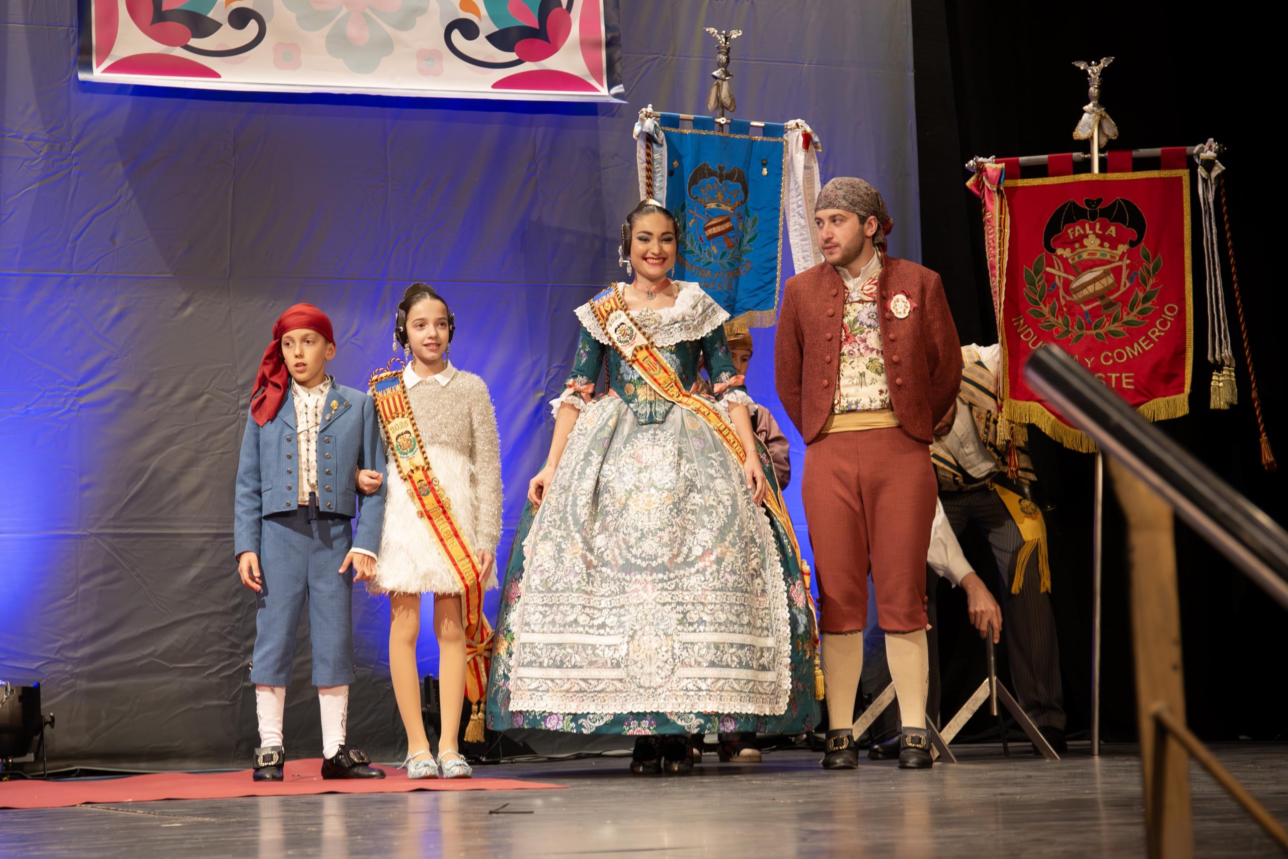 Las falleras Celia García Pérez, de la Falla Barrio de la Alegría, y Beatriz Catalá Fuertes, de la Falla Barrio Industria y Comercio, fueron las encargadas de conducir la Gala, abriendo el acto con unas palabras dedicadas a las poblaciones afectadas por la DANA, destacando la fortaleza y la resiliencia del pueblo valenciano ante la adversidad.