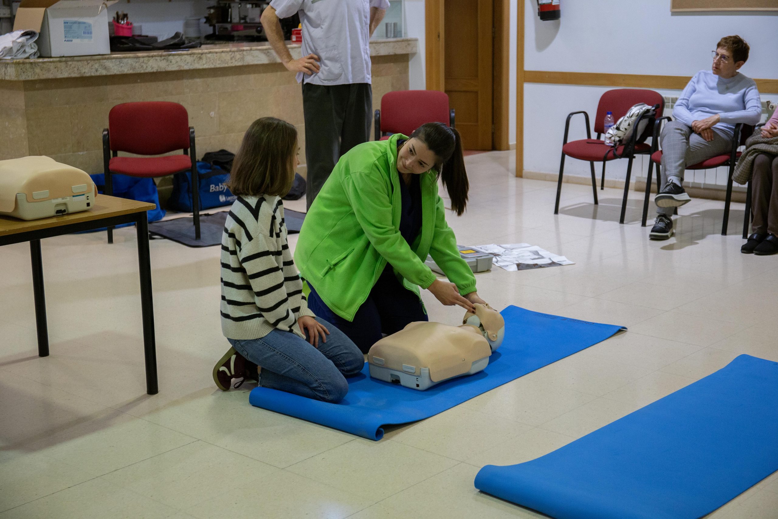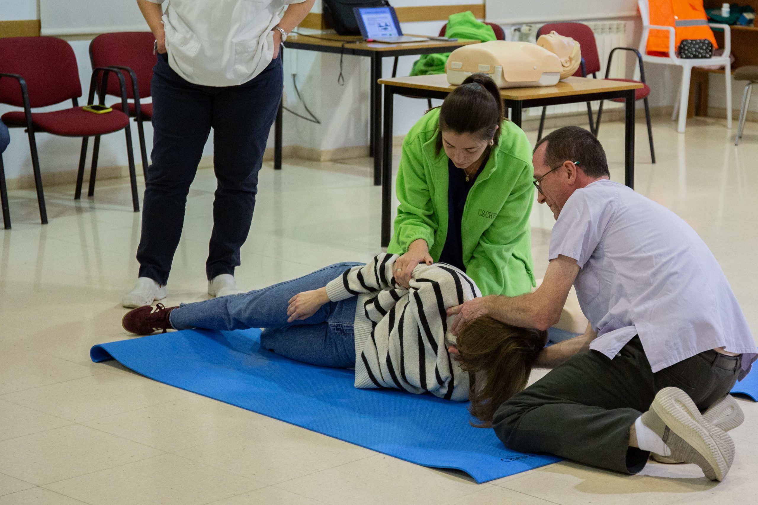 “Los primeros auxilios son una serie de técnicas que llevamos a cabo para proporcionar una ayuda inmediata y temporal para una persona que necesita una atención médica, hasta que esta llega; primero os vamos a enseñar cómo se hacen las diferentes técnicas y después podréis probarlas, porque como mejor se aprende es haciéndolo”, explicaba Rosero.