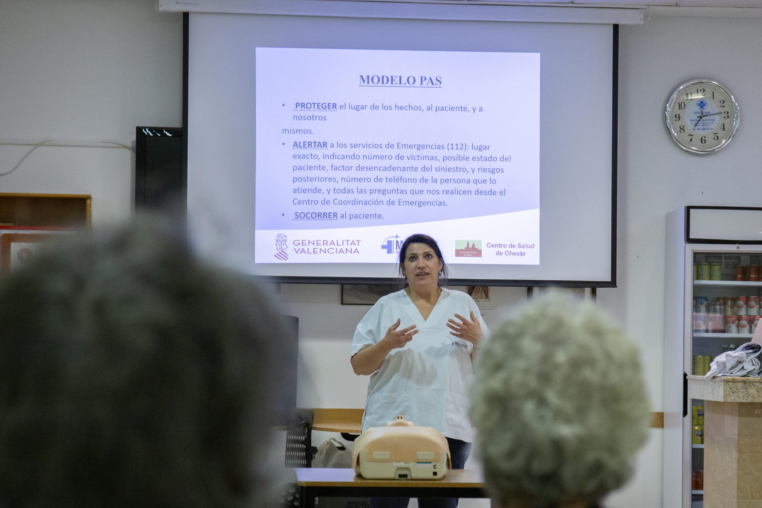 Los y las profesionales encargados de impartirla fueron Mª Ángeles Rosero Arenas, médica de familia del Centro de Salud de Cheste; Miguel Ángel García García, médico de cuidados intensivos del Hospital de Sagunto, y las médicas residentes del centro de Salud de Cheste, Sofía Marco, de 4º año, y Victoria Martínez, de 3º.