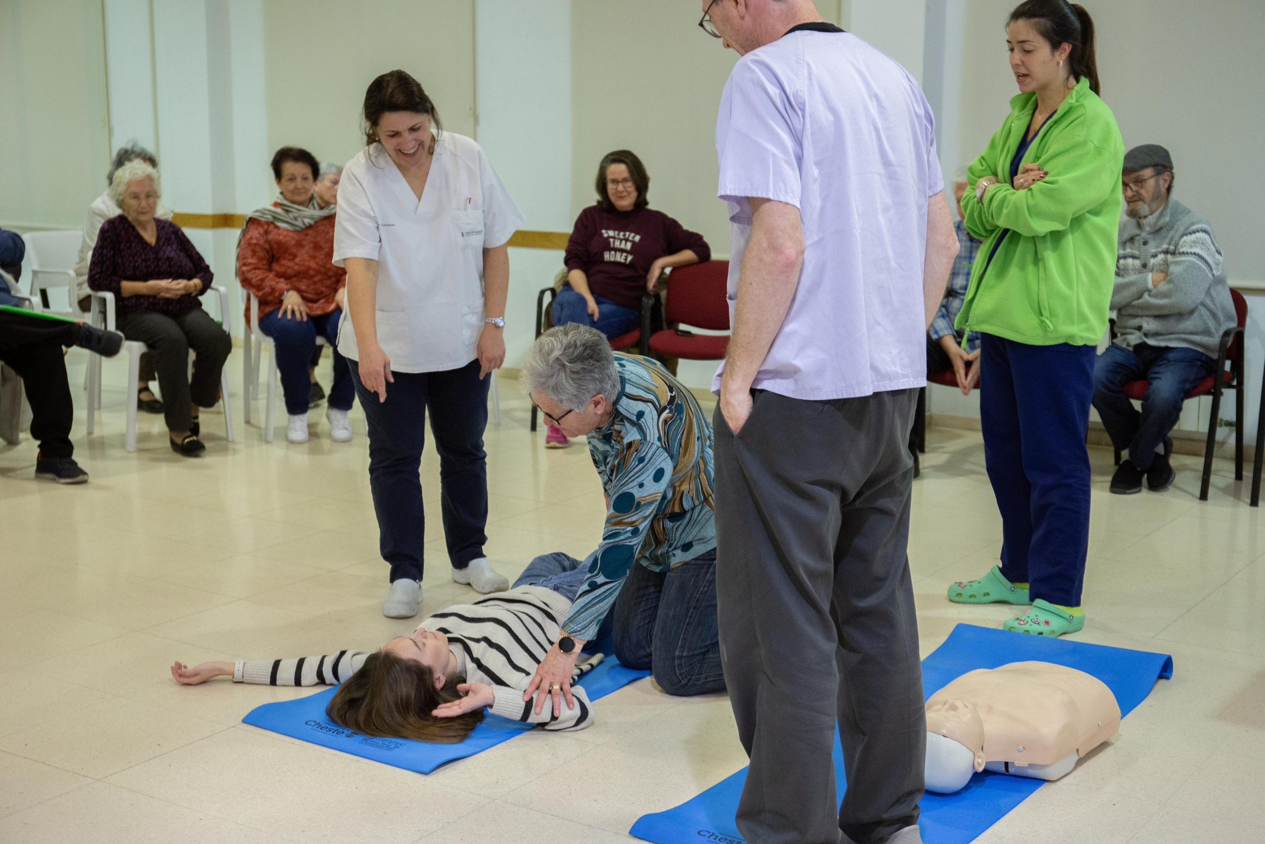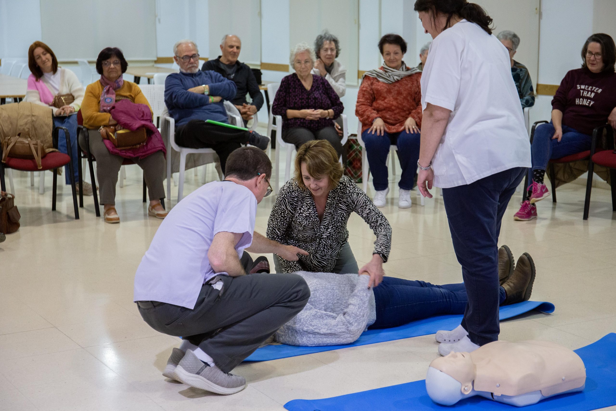 Entre los cuatro profesionales abordaron de forma teórica y práctica los protocolos a seguir ante personas inconscientes, en casos de atragantamientos, hemorragias, quemaduras, heridas, deformidades en extremidades o crisis epilépticas, entre otros casos.