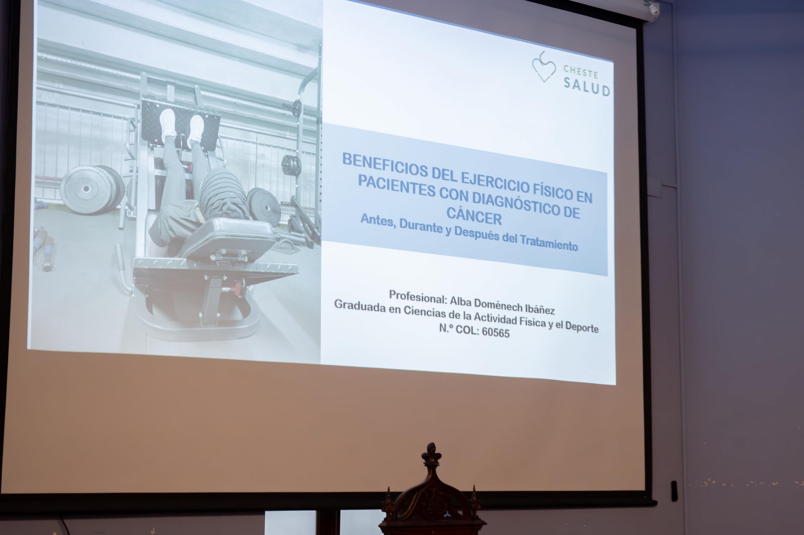 En esta ocasión, la ponencia estuvo a cargo de la chestana Alba Doménech Ibáñez, graduada en Ciencias de la Actividad Física y el Deporte y especialista en ejercicio físico y cáncer.