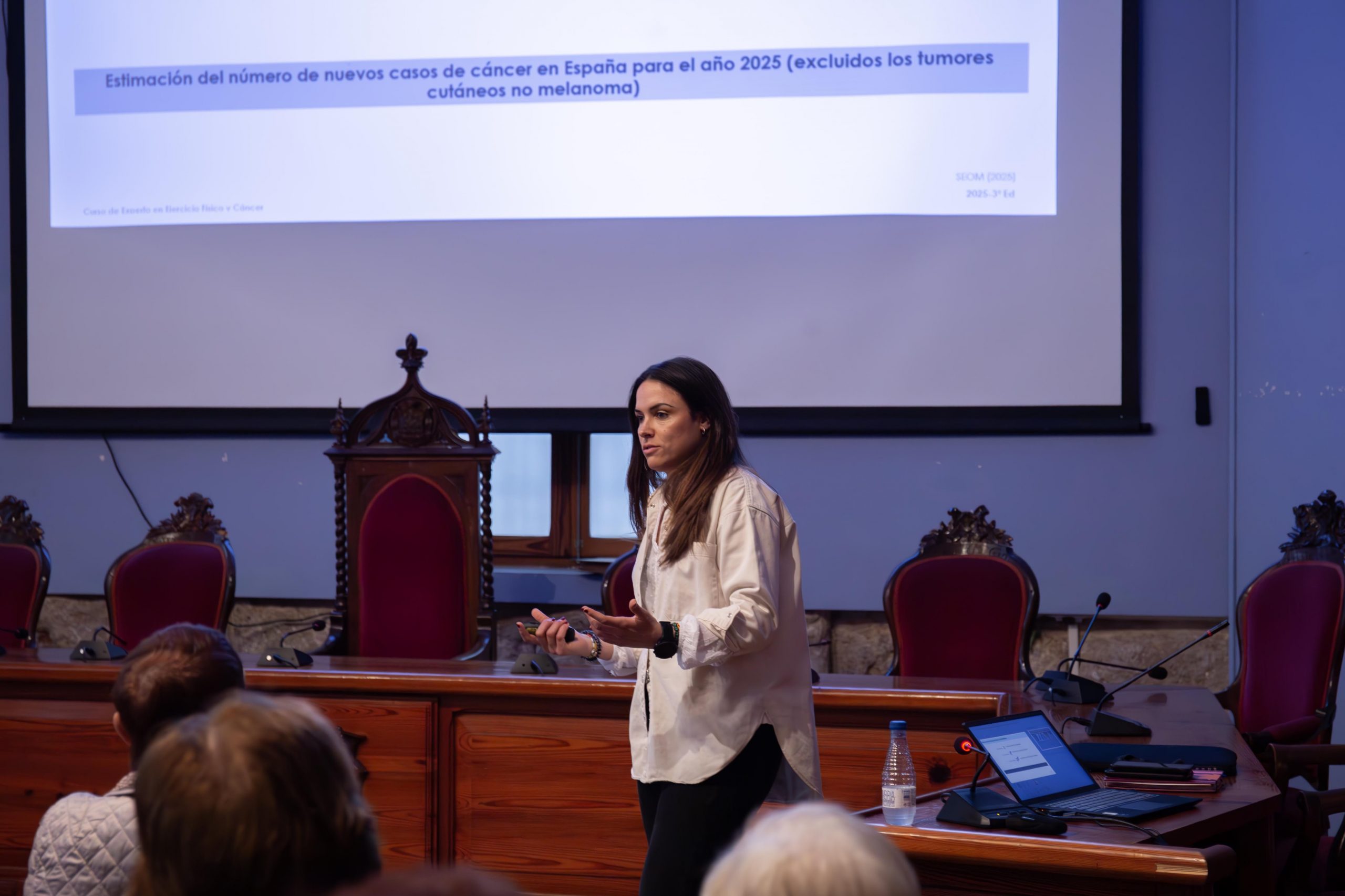 La charla se dividió en diferentes bloques en los que se abordaron el contexto de la enfermedad, con cifras actuales sobre la afectación del cáncer, así como los beneficios del ejercicio físico tanto en la etapa preventiva, como ante un diagnóstico o durante el tratamiento posterior.