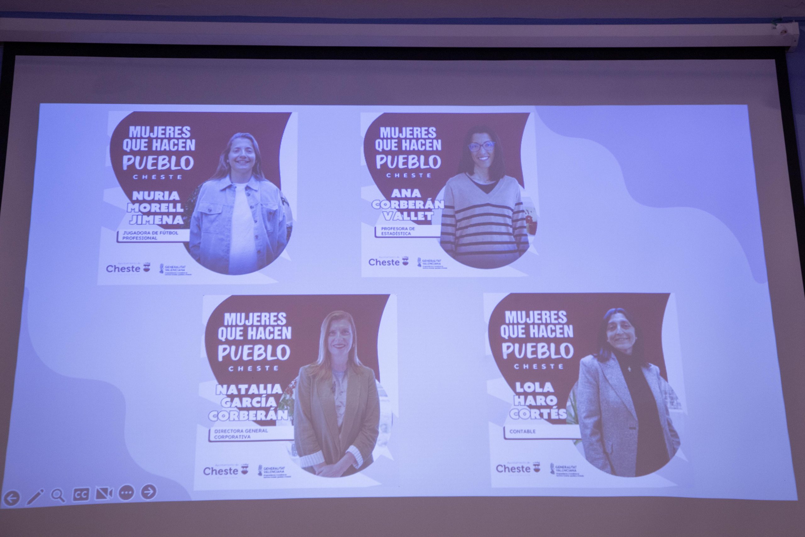 Las homenajeadas fueron Nuria Morell Jimena, jugadora de fútbol profesional; Natalia García Corberán, Directora General corporativa; Lola Haro Cortés, contable, y Ana Corberán Vallet, Profesora universitaria de estadística.
