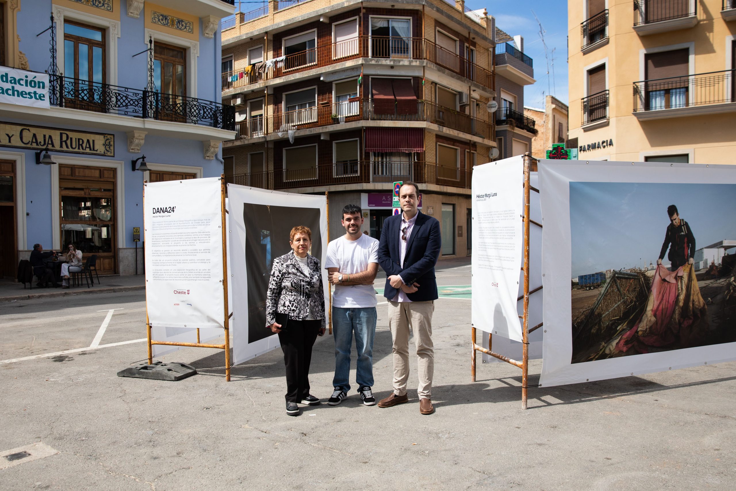 El acto comenzó con la inauguración de la exposición ‘DANA 24’, del fotógrafo Héctor Murgui Luna, instalada en andamios a lo largo del recorrido. La muestra documenta los efectos del barranco y el impacto humano y material de la DANA, y permanecerá abierta al público durante 20 días. Para Héctor Murgui esta exposición “busca transformar el recuerdo en conciencia y reflexión. Cada imagen es un testimonio de la tragedia, pero también de la fuerza y solidaridad de la comunidad.»