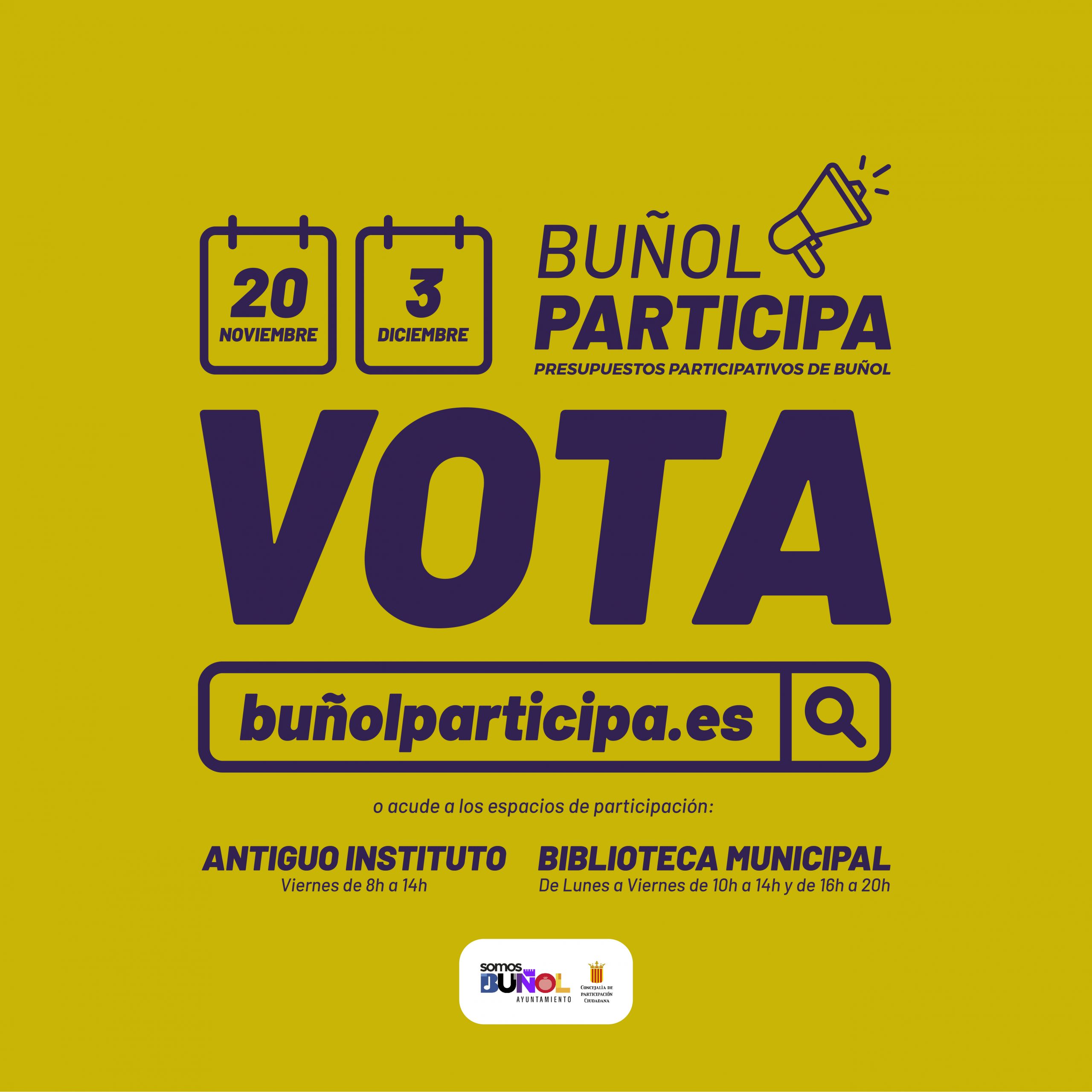 Recuerda entra en la web www.buñolparticipa.es y vota tus propuestas preferidas.