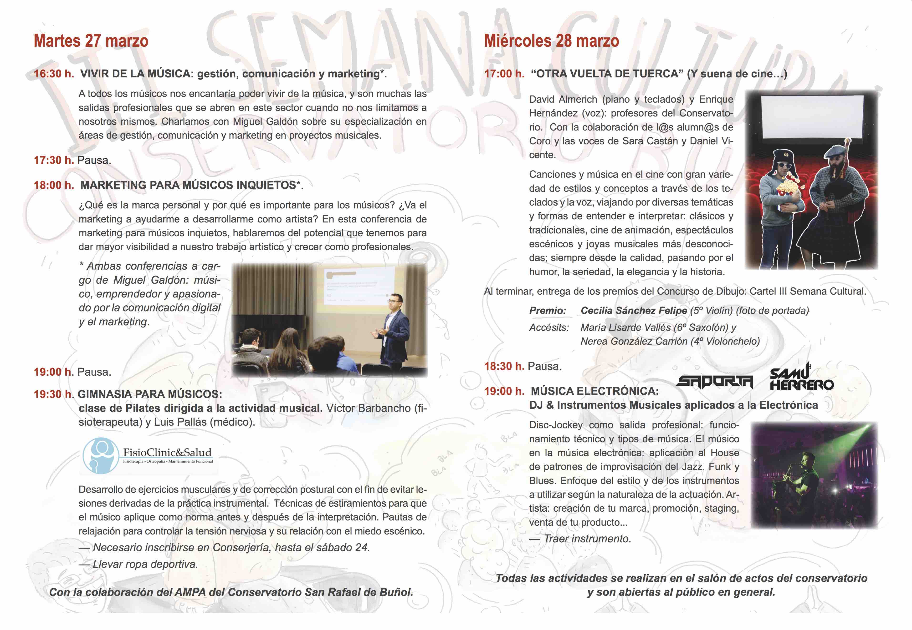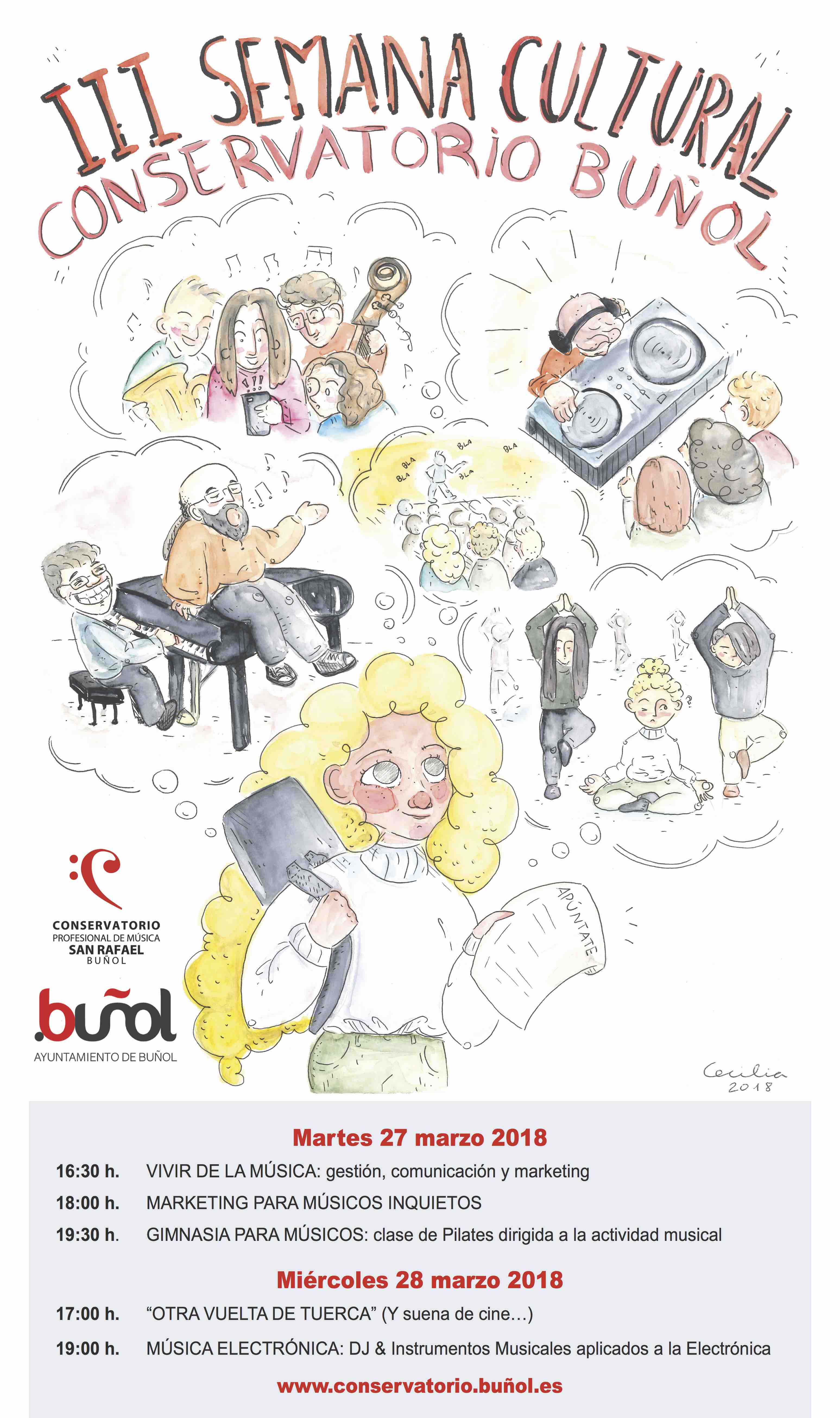 Redacción.- El martes 27 y el miércoles 28 de marzo el Conservatorio «San Rafael» de Buñol va a celebrar su IIIª Semana Cultural con actividades diversas que ofrecen al alumnado una formación complementaria y lo orientan en las diferentes salidas profesionales.