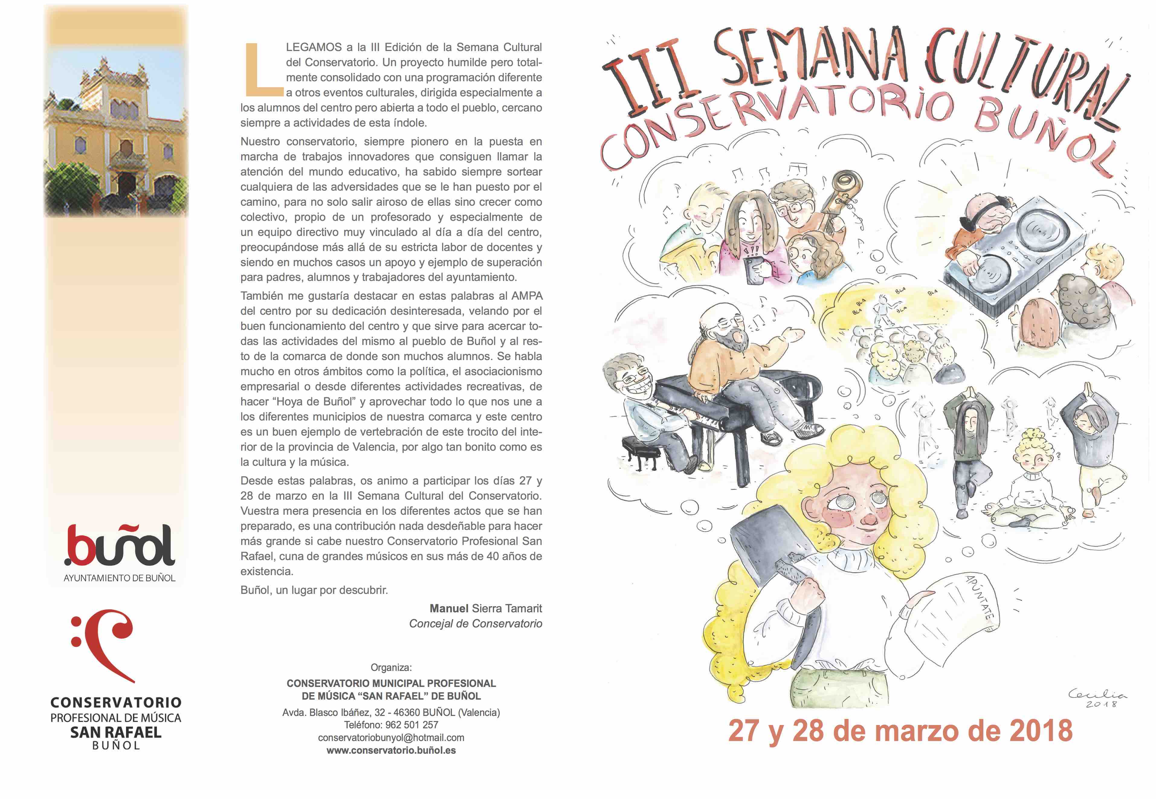 El martes 27 y el miércoles 28 de marzo el Conservatorio «San Rafael» de Buñol va a celebrar su IIIª Semana Cultural