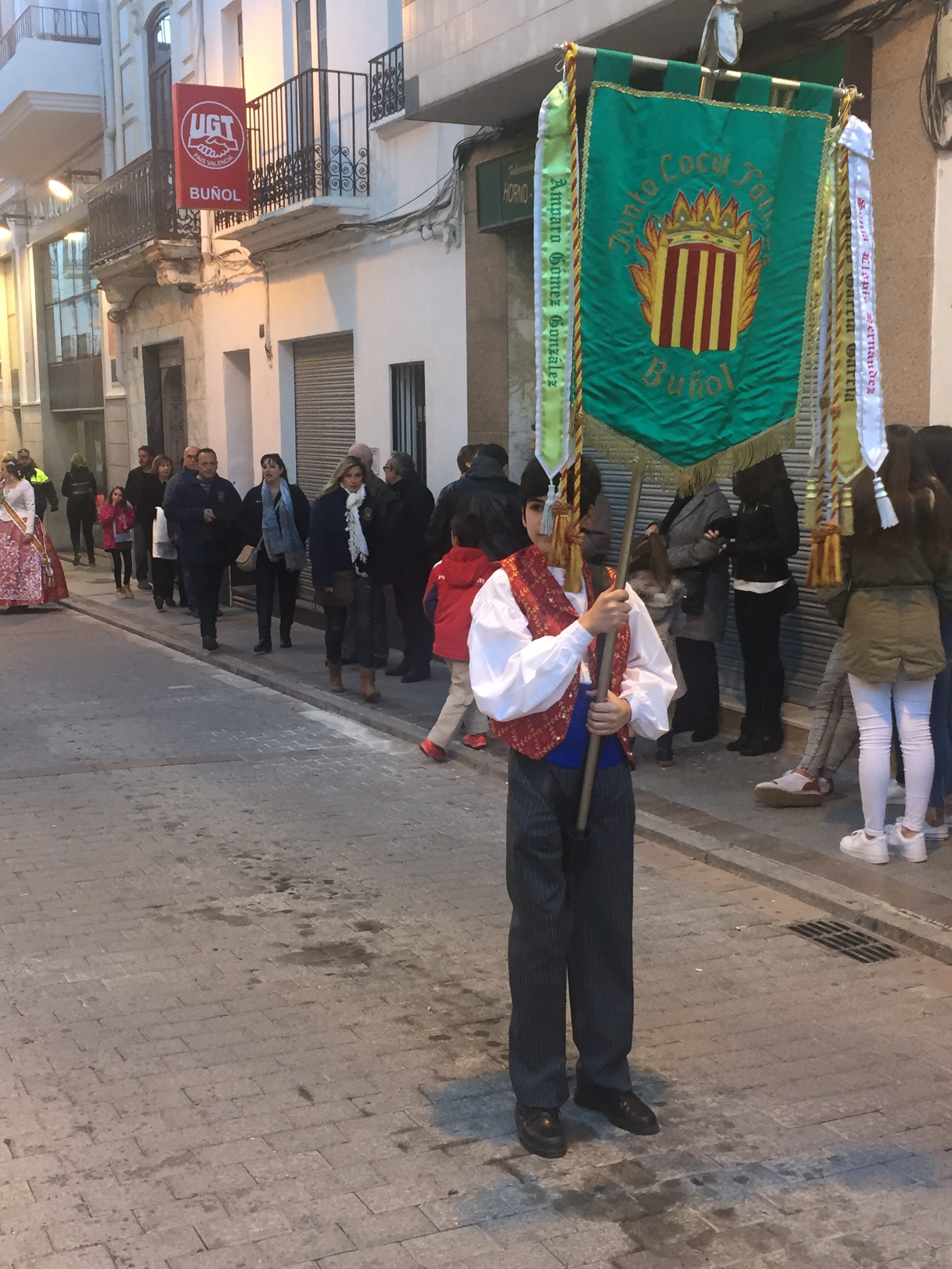 Acompañada de su Corte de Honor, del Alcalde de Buñol, Rafael Pérez, de la edil de Fiestas y Presidenta de la Junta Local, Juncal Carrascosa, así como de las cinco comisiones falleras de la localidad, Sonia Llopis pronunció un discurso en el que quiso hacer partícipes a todos los vecinos y vecinas de la localidad, de las segundas fiestas más importantes del pueblo.