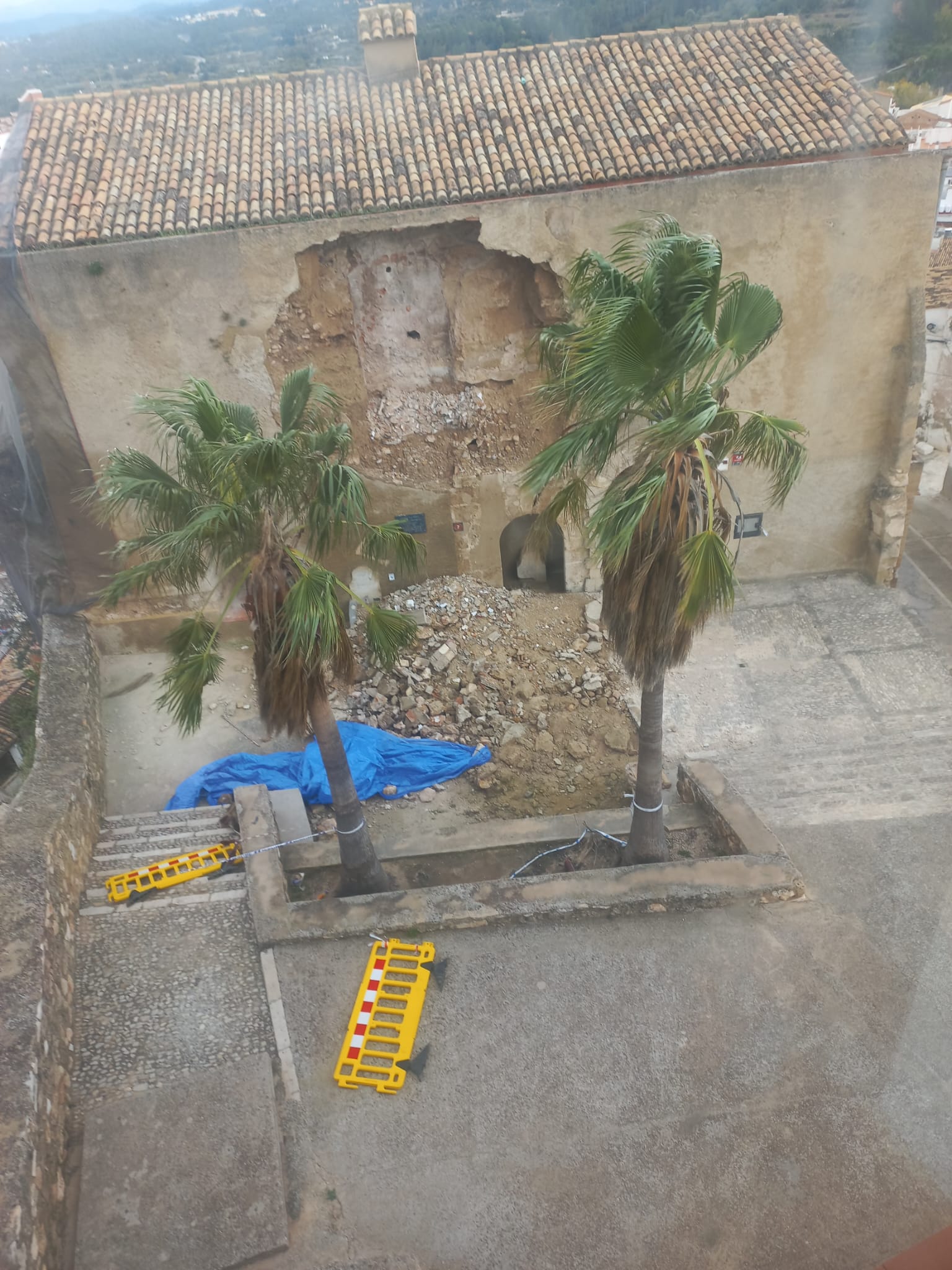 La directora general de Patrimonio Cultural, Marta Alonso, visitó este jueves el lugar junto a la alcaldesa, Virginia Sanz, y técnicos del Ministerio de Cultura para analizar la situación y coordinar los trabajos necesarios. El museo, que ocupa la antigua iglesia del Salvador dentro del conjunto del Castillo de Buñol —catalogado como Bien de Interés Cultural (BIC)—, sufrió el colapso de una de sus estructuras de tapia de tierra, afectando el muro que da a la plaza.