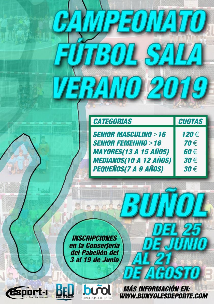 Redacción.- La Concejalía de Deportes del Ayuntamiento de Buñol ha informado de la apertura de inscripciones para el próximo Campeonato de Fútbol Sala de este verano, que se desarrollará del 25 de junio al 21 de agosto.