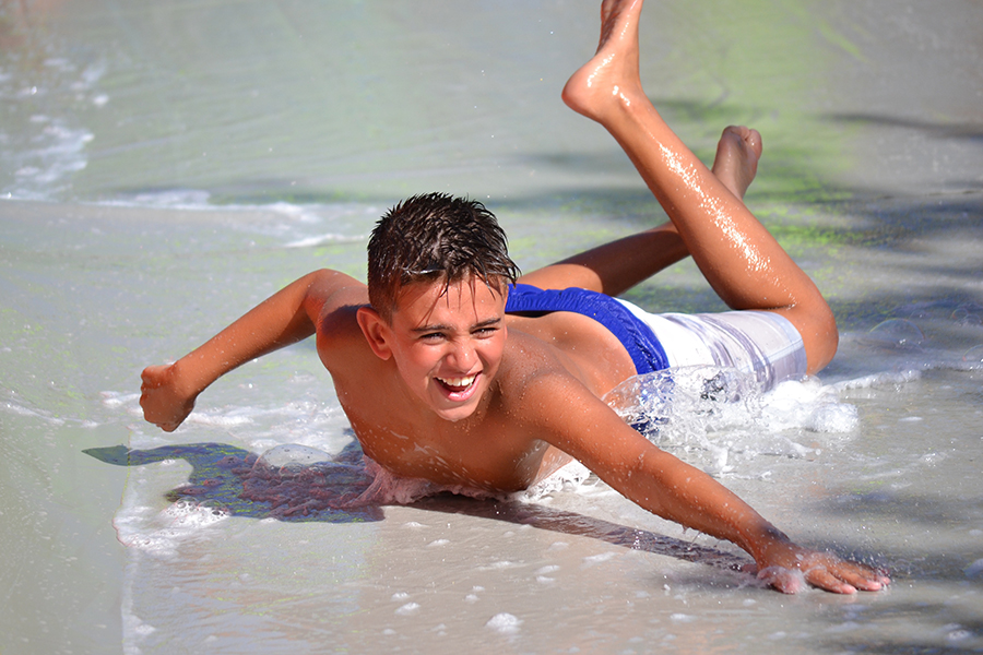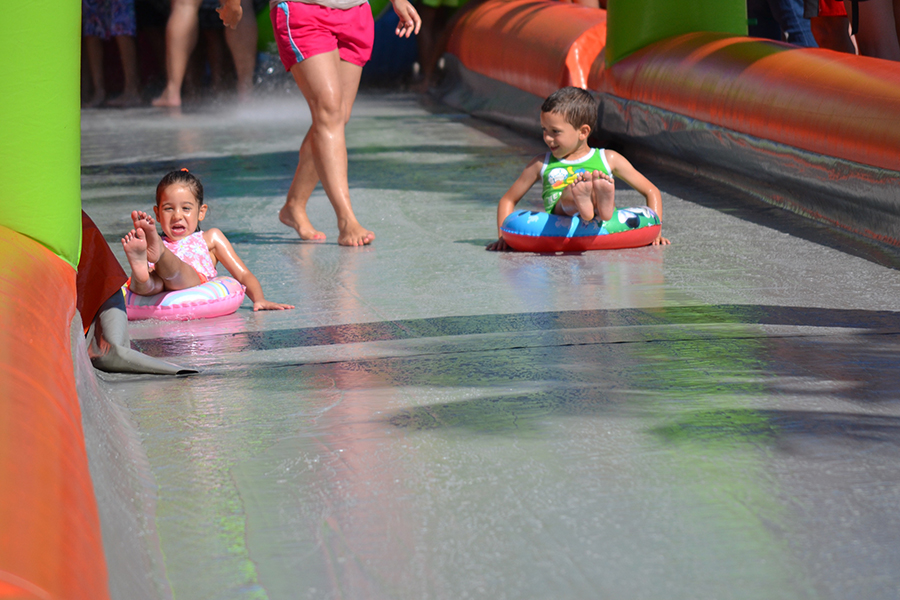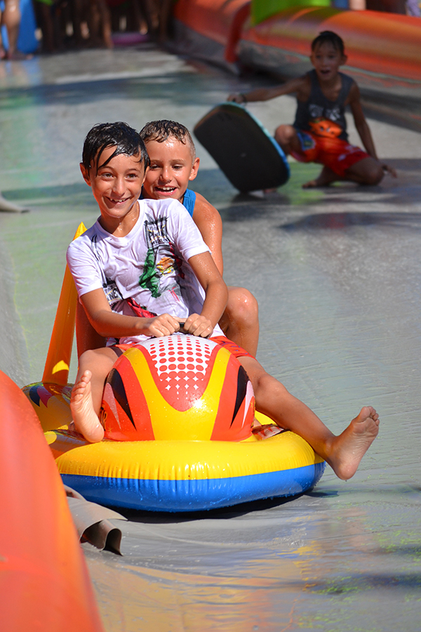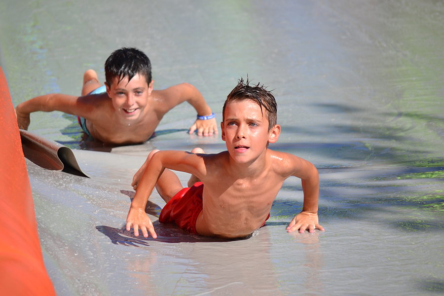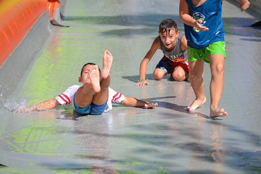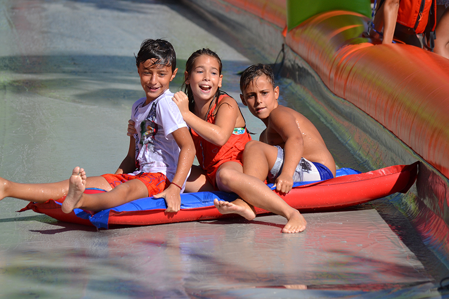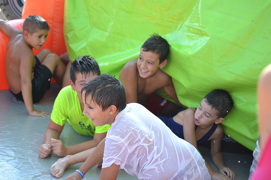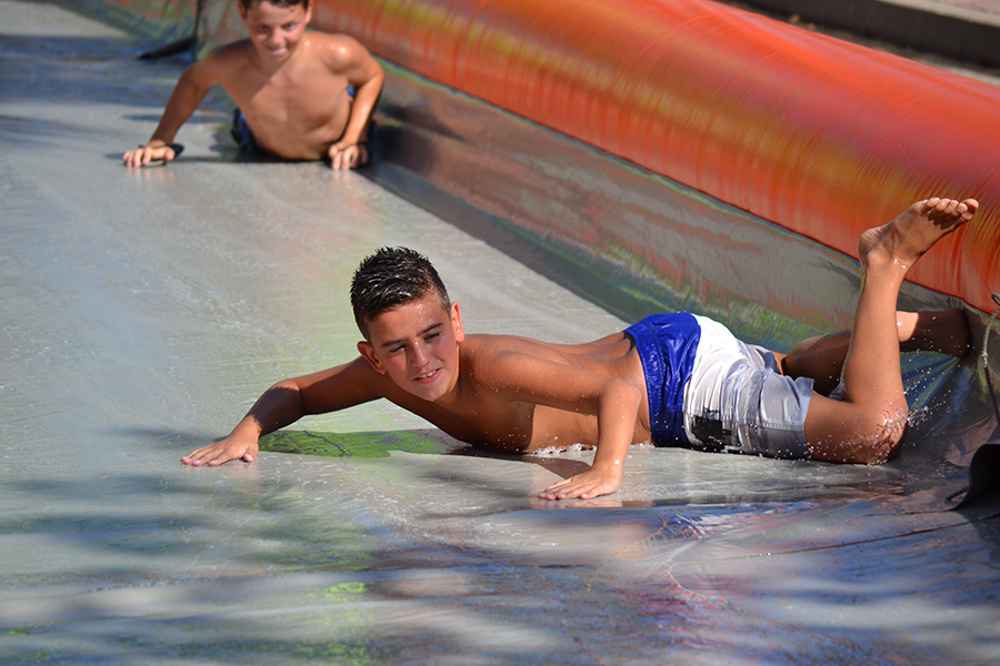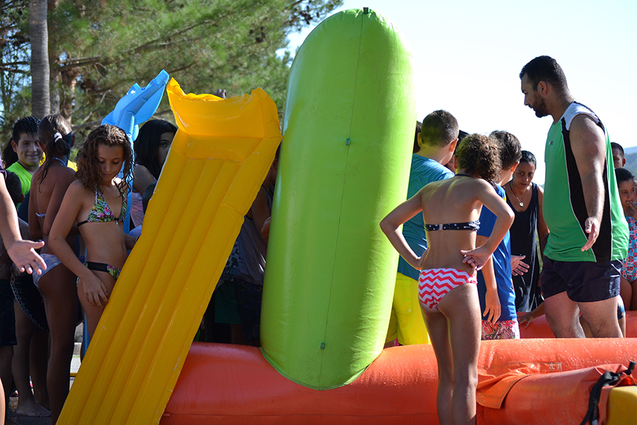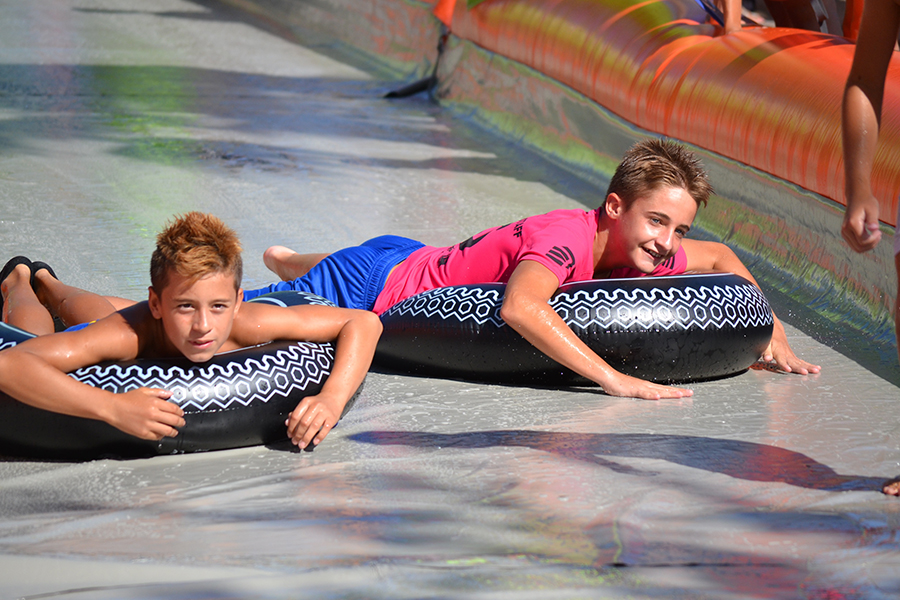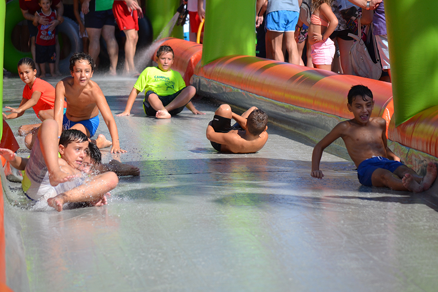 La tarde comenzó con un tobogán acuático y continuó con mucho tenis, pádel y frontón.