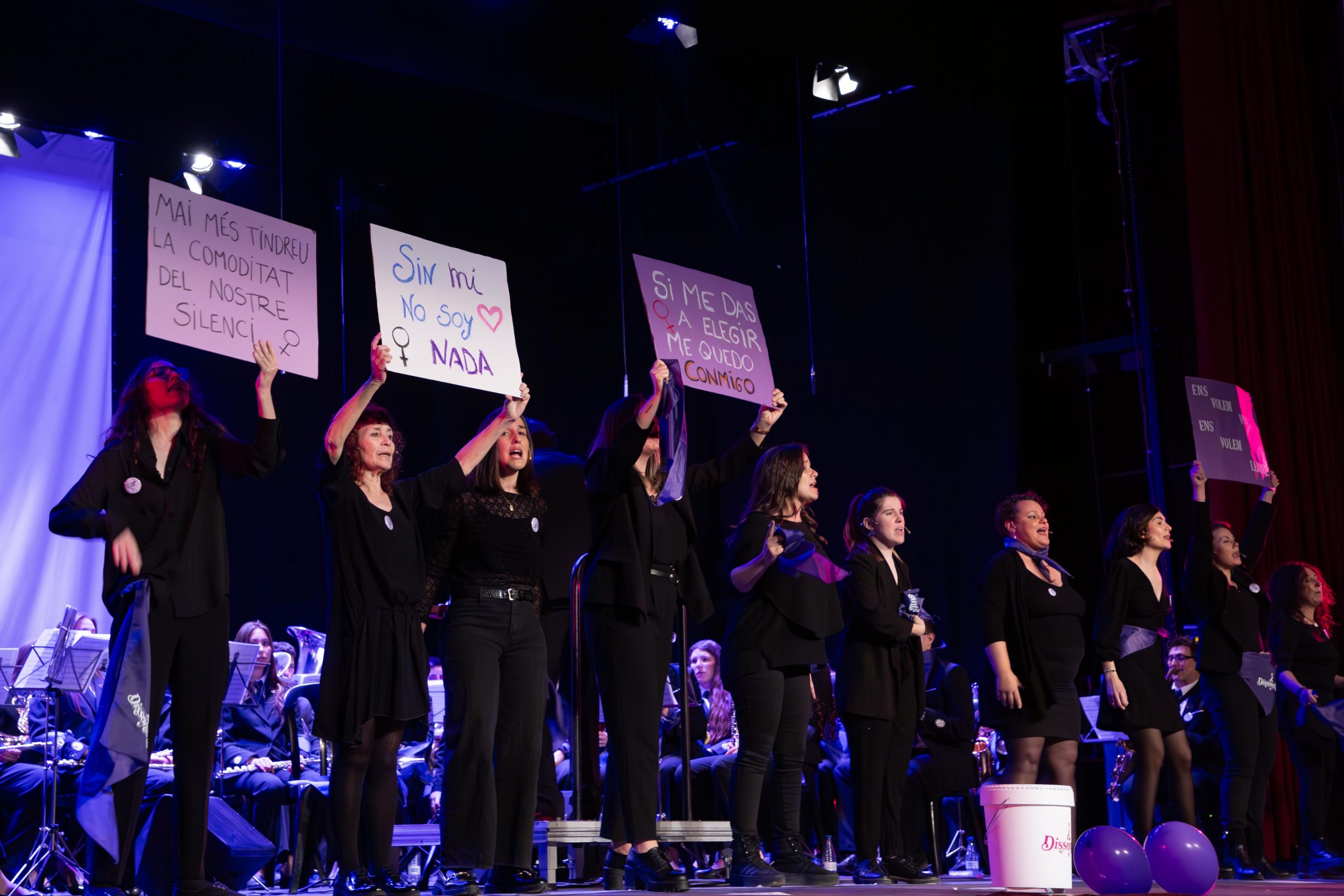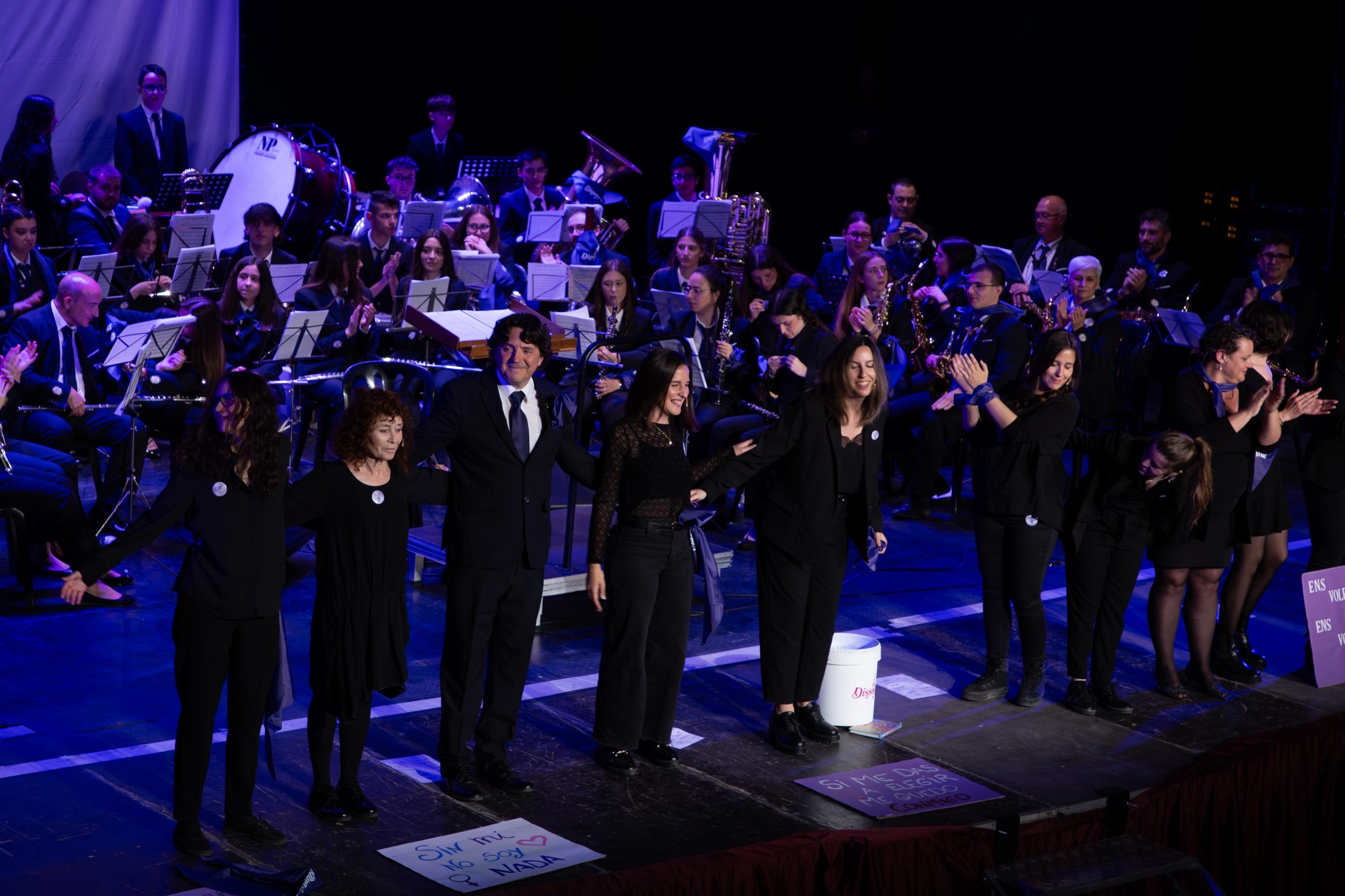 Al finalizar el espectáculo, desde Dissonants también se dirigieron al público. “Este concierto tiene la voluntad de hacer de la música una herramienta de denuncia, de memoria, de esperanza. Ha sido un regalo poder compartir el escenario con la Banda sinfónica Lira de Cheste y con Javier Enguídanos en este ciclo de Música en Primavera, con este concierto que es el clamor de que “Nos queremos vivas”, que gritamos con rabia, porque somos voz, somos corazón, pero sobretodo, somos resistencia”.