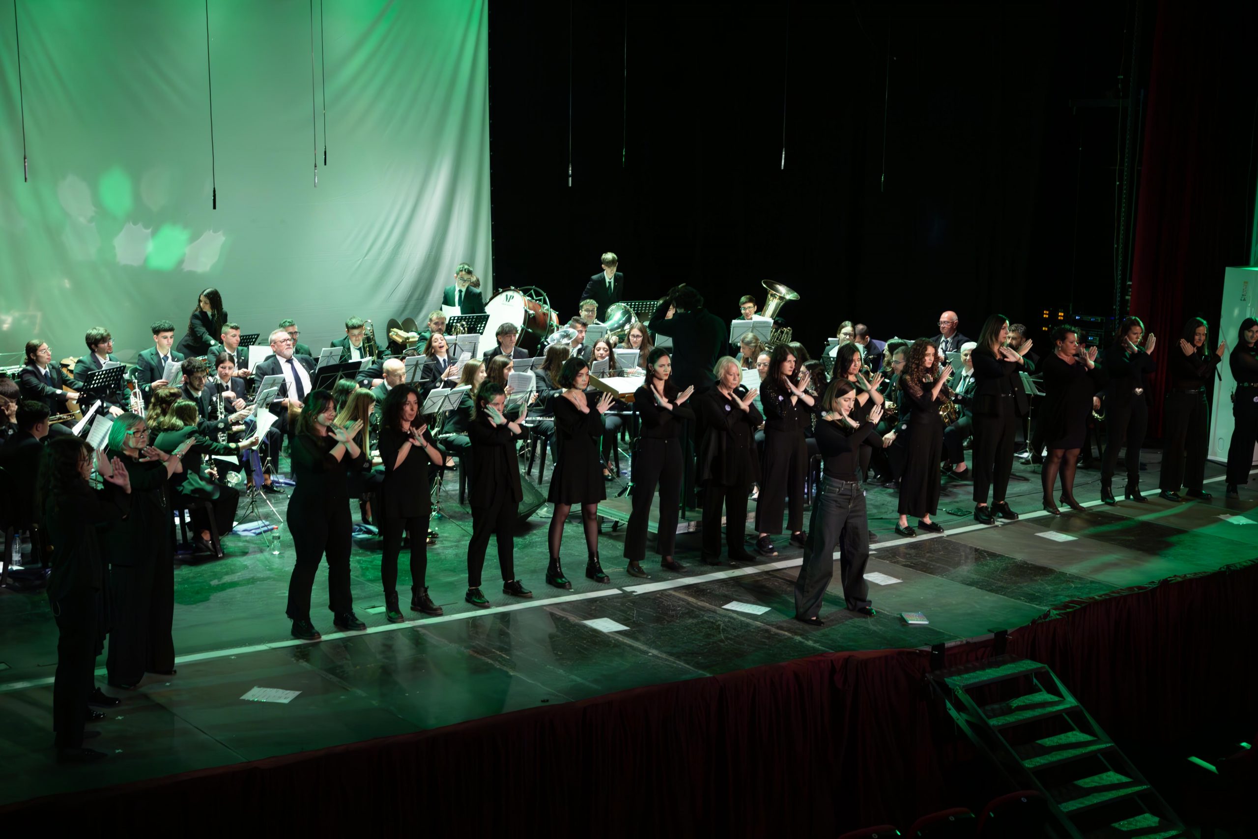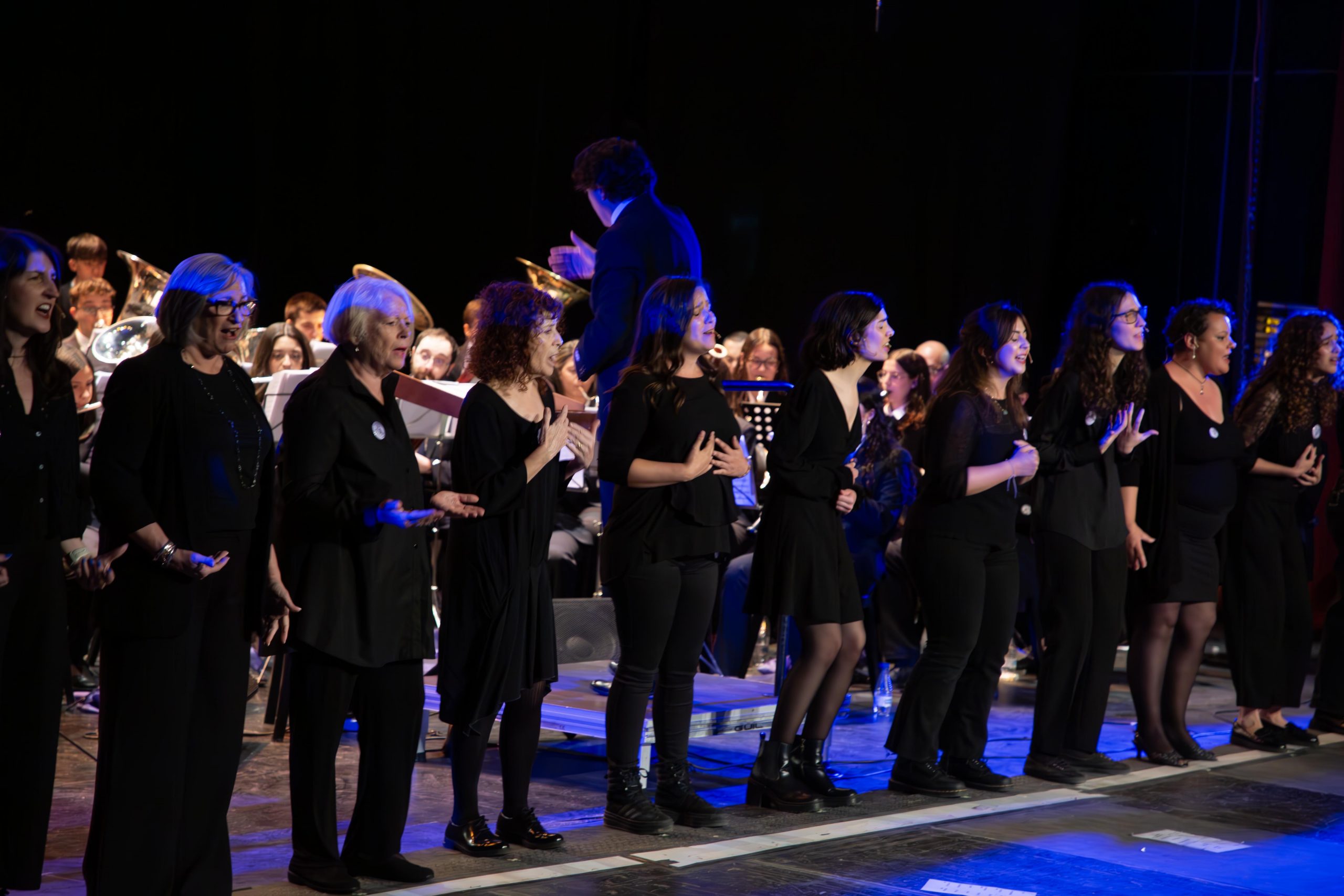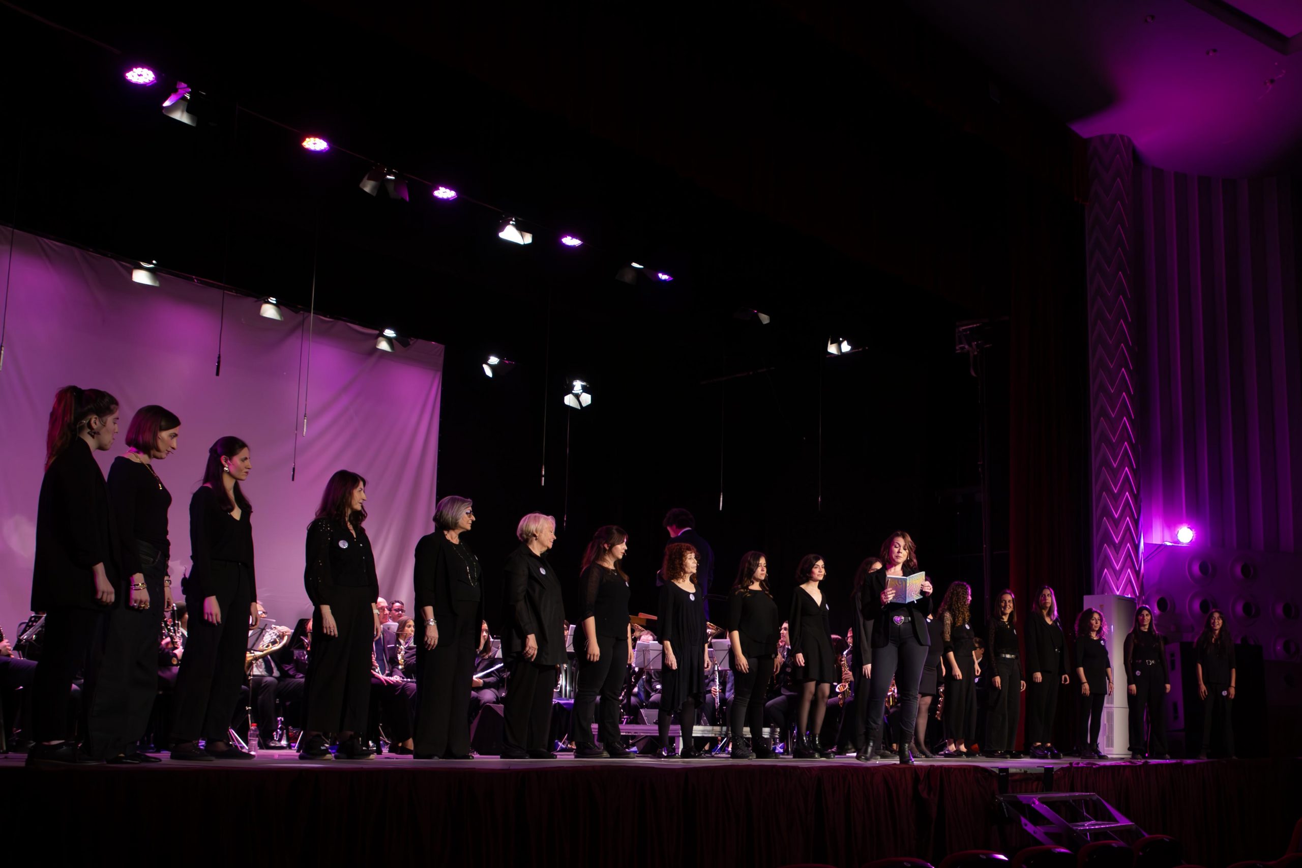 El pasado sábado, 24 de mayo, la Banda Sinfónica La Lira de Cheste y la agrupación vocal Dissonants, de l’Eliana, pusieron en pie al Teatro Liceo con el estreno del espectáculo “En veu de totes simfònic”, una propuesta escénica que se sirvió de la música, la narración y el audiovisual para contar la historia de una víctima de violencia machista.