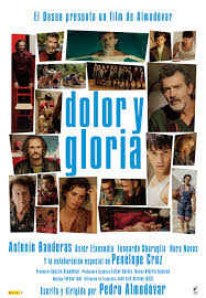 - Sinopsis: Narra una serie de reencuentros en la vida de Salvador Mallo, un director de cine en su ocaso. Algunos de ellos físicos, y otros recordados, como su infancia en los años 60, cuando emigró con sus padres a Paterna, un pueblo de Valencia, en busca de prosperidad, así como el primer deseo, su primer amor adulto ya en el Madrid de los 80, el dolor de la ruptura de este amor cuando todavía estaba vivo y palpitante, la escritura como única terapia para olvidar lo inolvidable, el temprano descubrimiento del cine, y el vacío, el inconmensurable vacío ante la imposibilidad de seguir rodando. «Dolor y Gloria» habla de la creación, de la dificultad de separarla de la propia vida y de las pasiones que le dan sentido y esperanza. En la recuperación de su pasado, Salvador encuentra la necesidad urgente de volver a escribir.