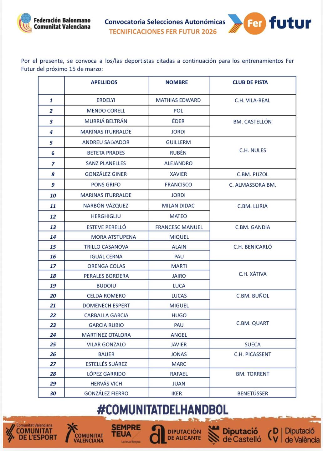 Redacción.- El Club Balonmano Buñol ha anunciado con orgullo la selección de dos de sus jugadores infantiles para las jornadas de tecnificación autonómica FER Futur 2026.