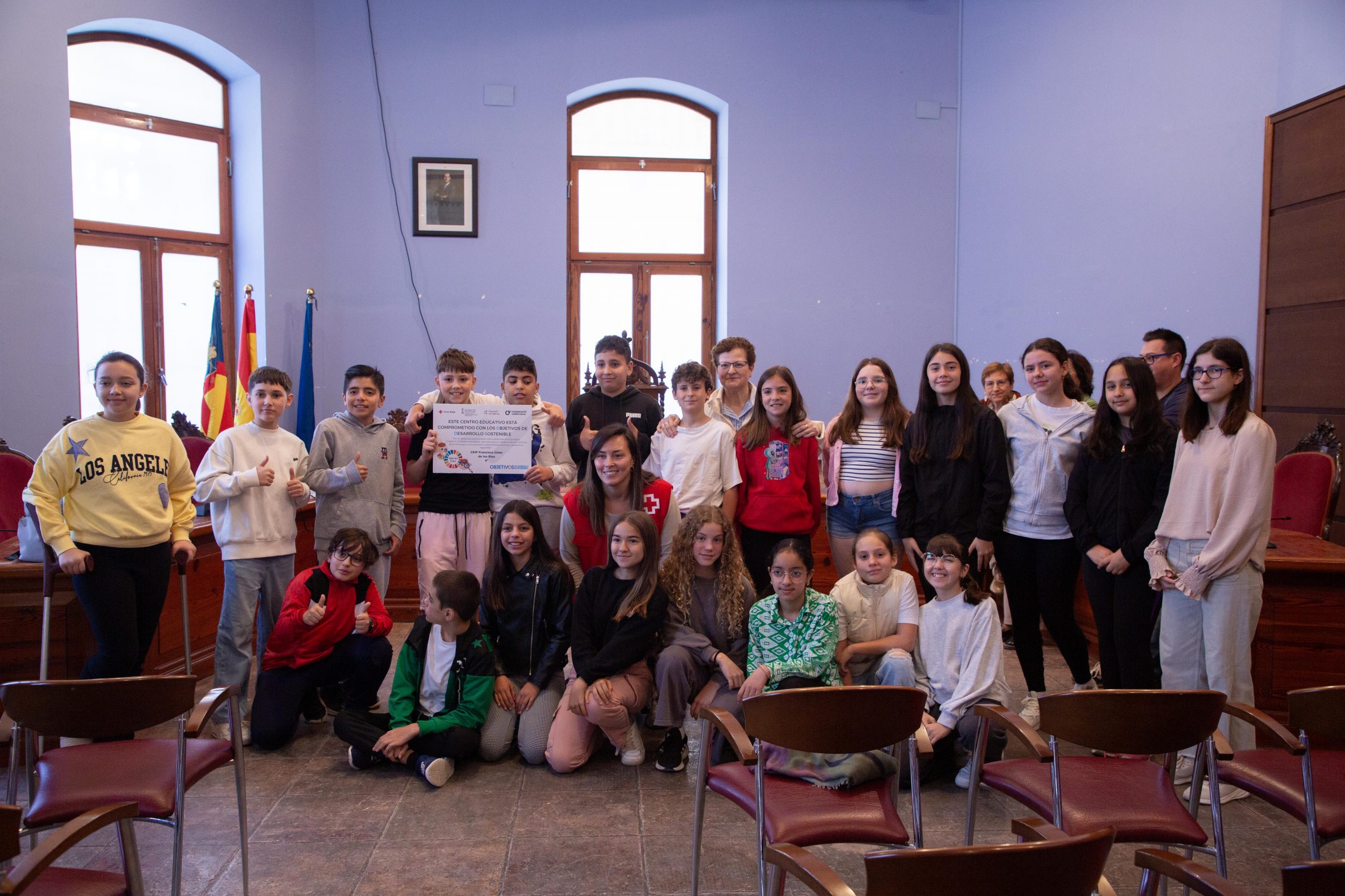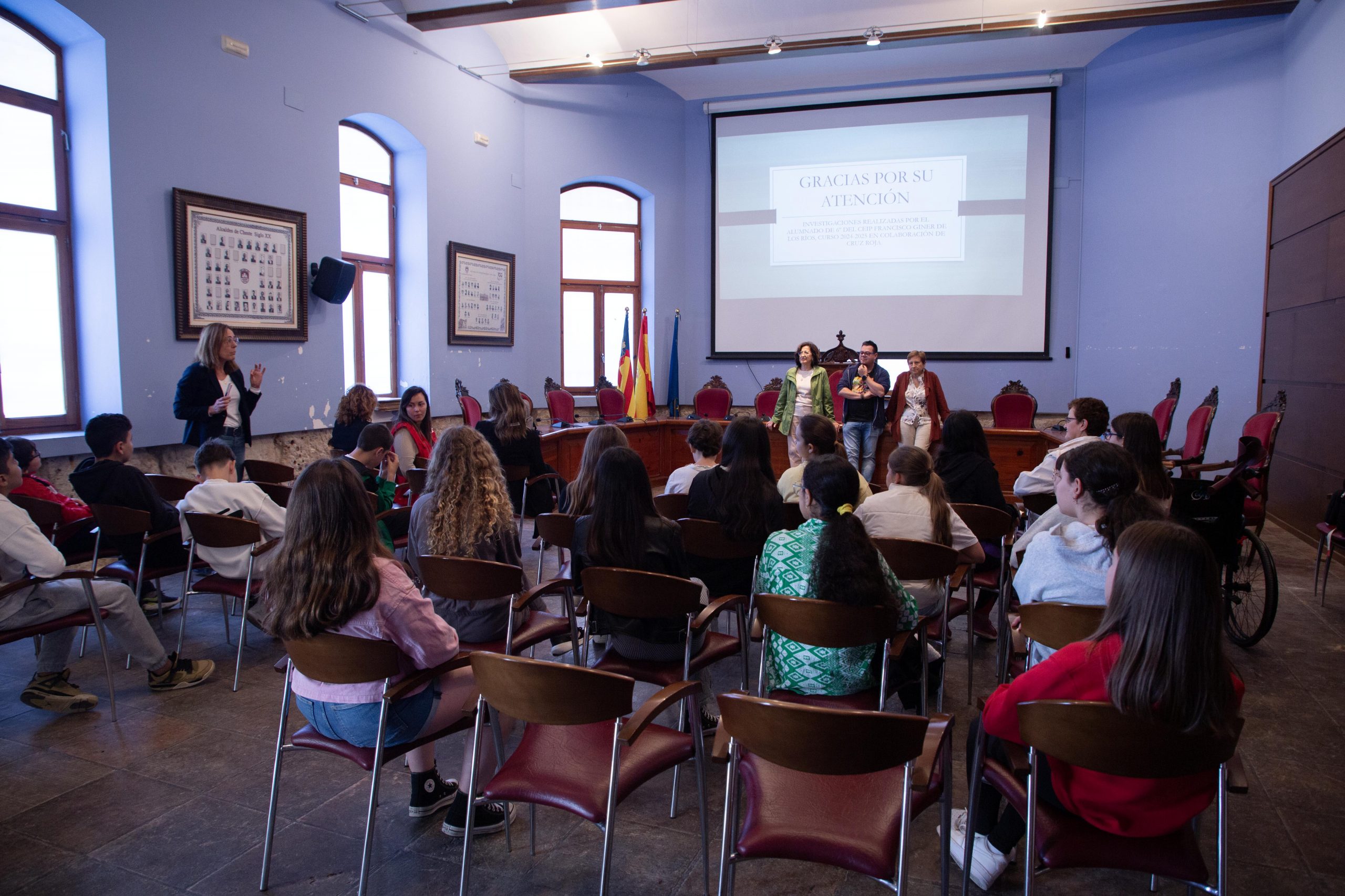 El pasado viernes, 9 de mayo, el alumnado de 6º de Primaria del CEIP Francisco Giner de Los Ríos acudió al salón de Plenos del Ayuntamiento para presentar ante algunos de los miembros del equipo de Gobierno cinco propuestas de actuación para mejorar Cheste, fundamentadas en las investigaciones realizadas en el marco del proyecto de Cruz Roja “Ciudad 11”, en el que el centro está participando.