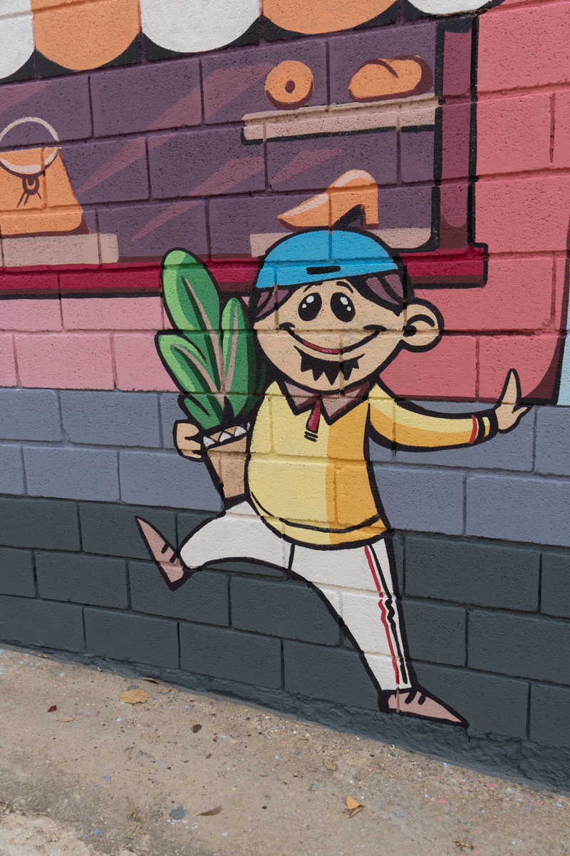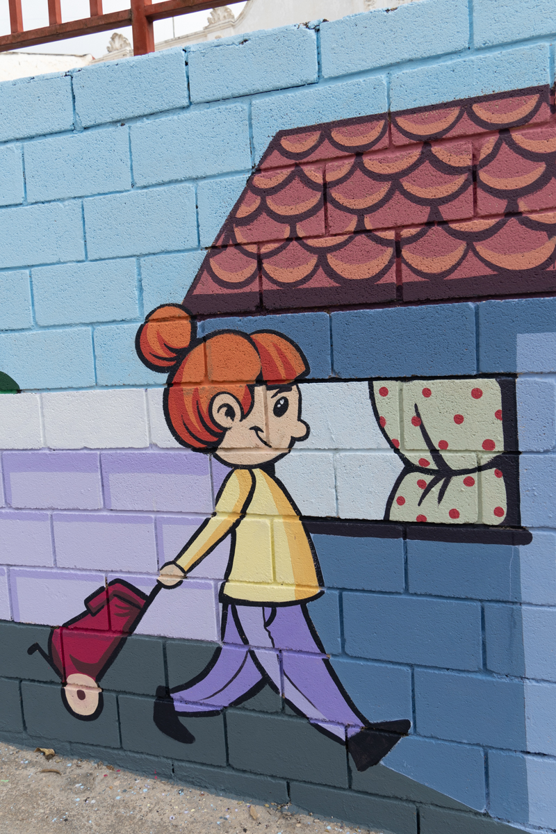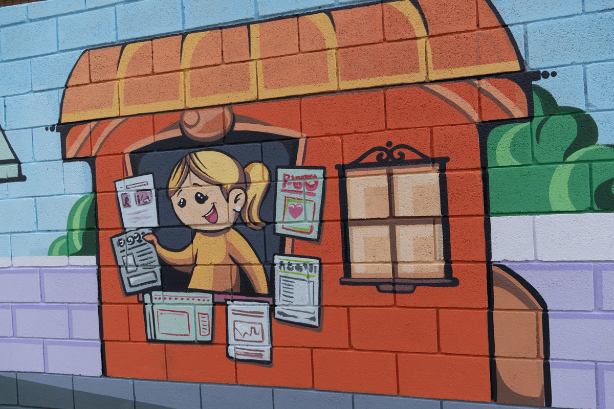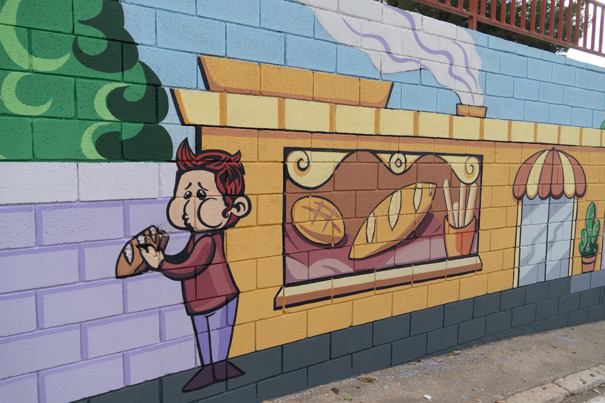 El artista cuenta a hoyunclick.es que «en este mural se han querido representar comercios de toda la vida, los que daban y dan vida al pueblo. Aunque esta vez acompañados de niñas y niños, que son los que también dan vida al pueblo y a la vez son el futuro tanto de los comercios como del mismo pueblo».