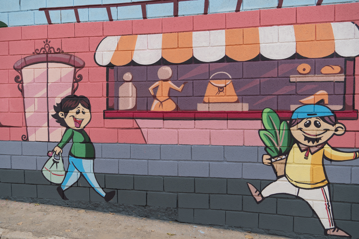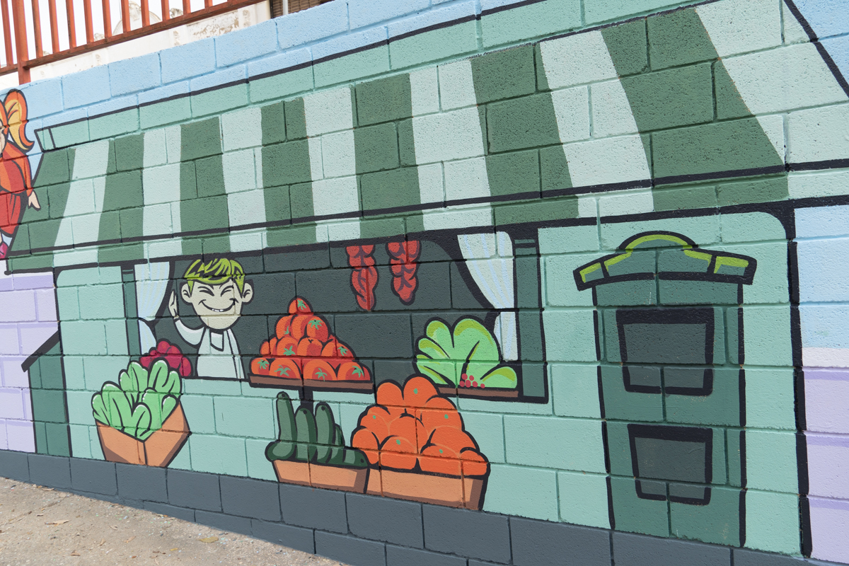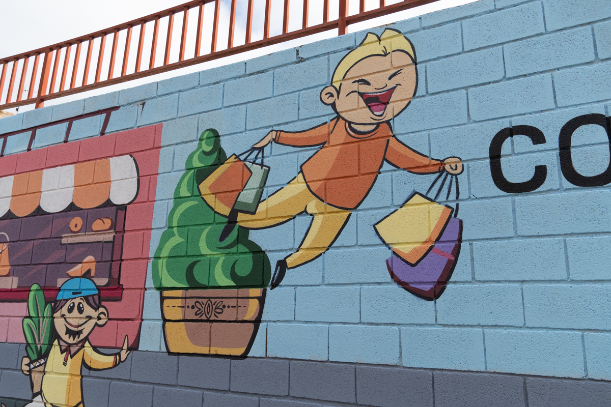 Aquí os dejamos las mejores imágenes del mural que ha pintado Toni López para fomentar las compras y el comercio de proximidad: