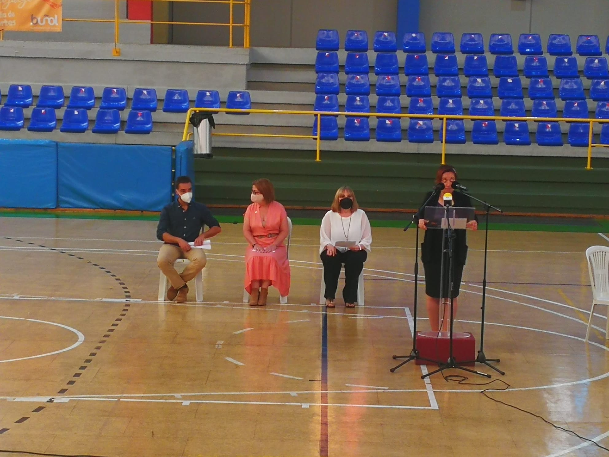 Posteriormente a este acto protocolario, dedicaron unas palabras a la figura de Pablo, la secretaria del Ayuntamiento de Buñol, Remedios Abasolo -que leyó el acta plenaria en la que se acordó por unanimidad poner el nombre de Pablo en el Pabellón-. También intervino la alcaldesa de la localidad, Juncal Carrascosa y, por útlimo, Javi Cusí -hermano de Pablo- que recordó de una manera emotiva a su compañero de vida. Los parlamentos terminaron con una gran ovación que se prolongó durante varios minutos. El acto terminó con una pequeña actuación de un grupo de cámara del Conservatorio de Buñol, dirigidos por Eduardo Carrascosa.