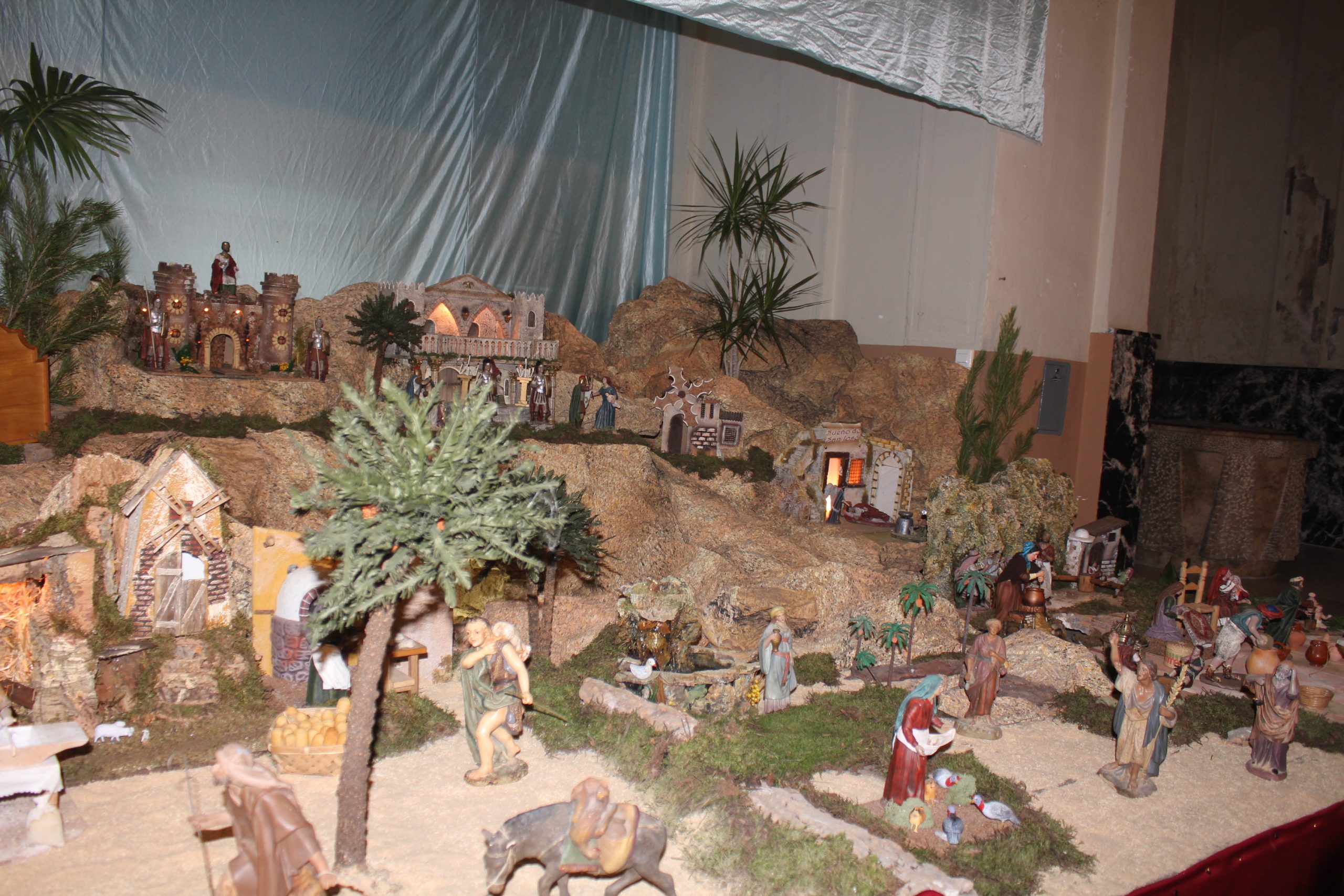 Luis comenzó colocando un pequeño nacimiento, con figuras más antiguas, en al altar mayor y a Don Carlos le encantó. Conforme avanzaban los años fue cambiando de ubicación. Ocupó, por ejemplo, el espacio donde está la Virgen de los Desamparados, el salón de San Luis… Pasado un tiempo, el belén iba creciendo a la par que lo iba haciendo el interés de las feligresas y feligreses y gente en general que iba a verlo. De hecho, el tamaño del de este año alcanza unos 15 metros y está situado debajo de la imagen de San Venancio, es decir, entrando en la parroquia, en la parte derecha. El motivo de por qué el belén fue aumentado de tamaño con los años es muy fácil de explicar. «Luisito» me lo dejó claro: «es que soy muy casporra y además los sacerdotes no me ponían ningún problema».