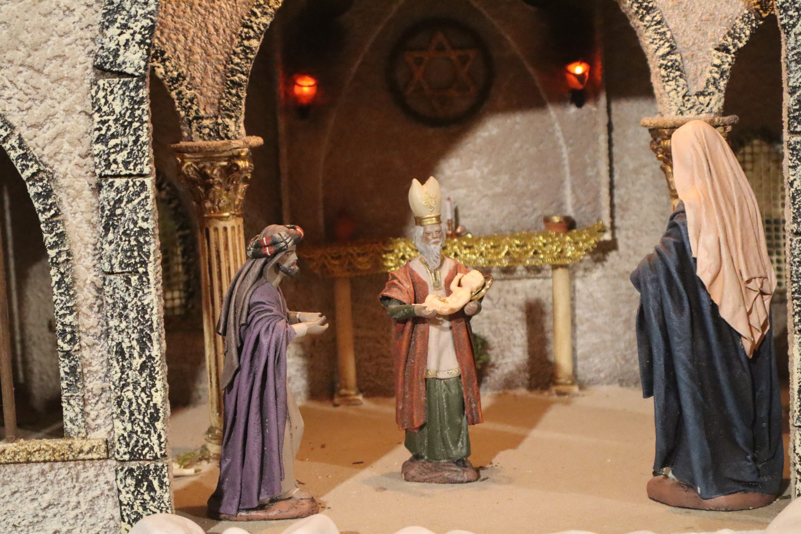 El Belén, de marcado carácter didáctico, está formado por más de un centenar de figuras cuidadosamente dispuestas en un espacio de aproximadamente cinco metros cuadrados. Cada escena está trabajada al detalle para facilitar al visitante una mejor comprensión visual del nacimiento de Jesucristo, cuidando al máximo la iluminación, la perspectiva y el recorrido.