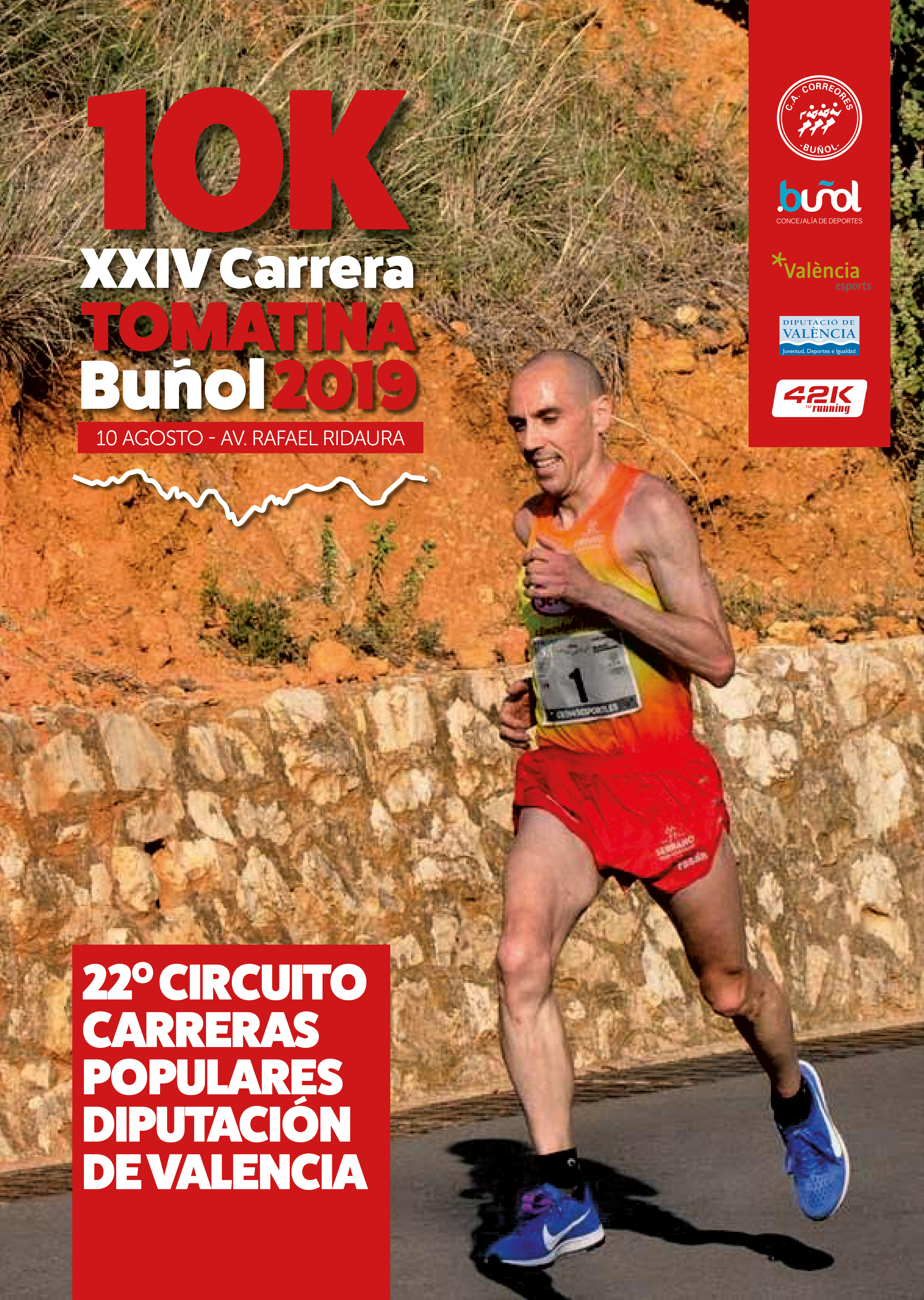 El 10 de agosto la XXIV Carrera Tomatina de Buñol vuelve al Circuito de Carreras Populares de la Diputación de Valencia, que celebra su 22ª edición. Se espera una amplia participación en una dura prueba de asfalto que tendrá su salida y meta en el instituto de Buñol.