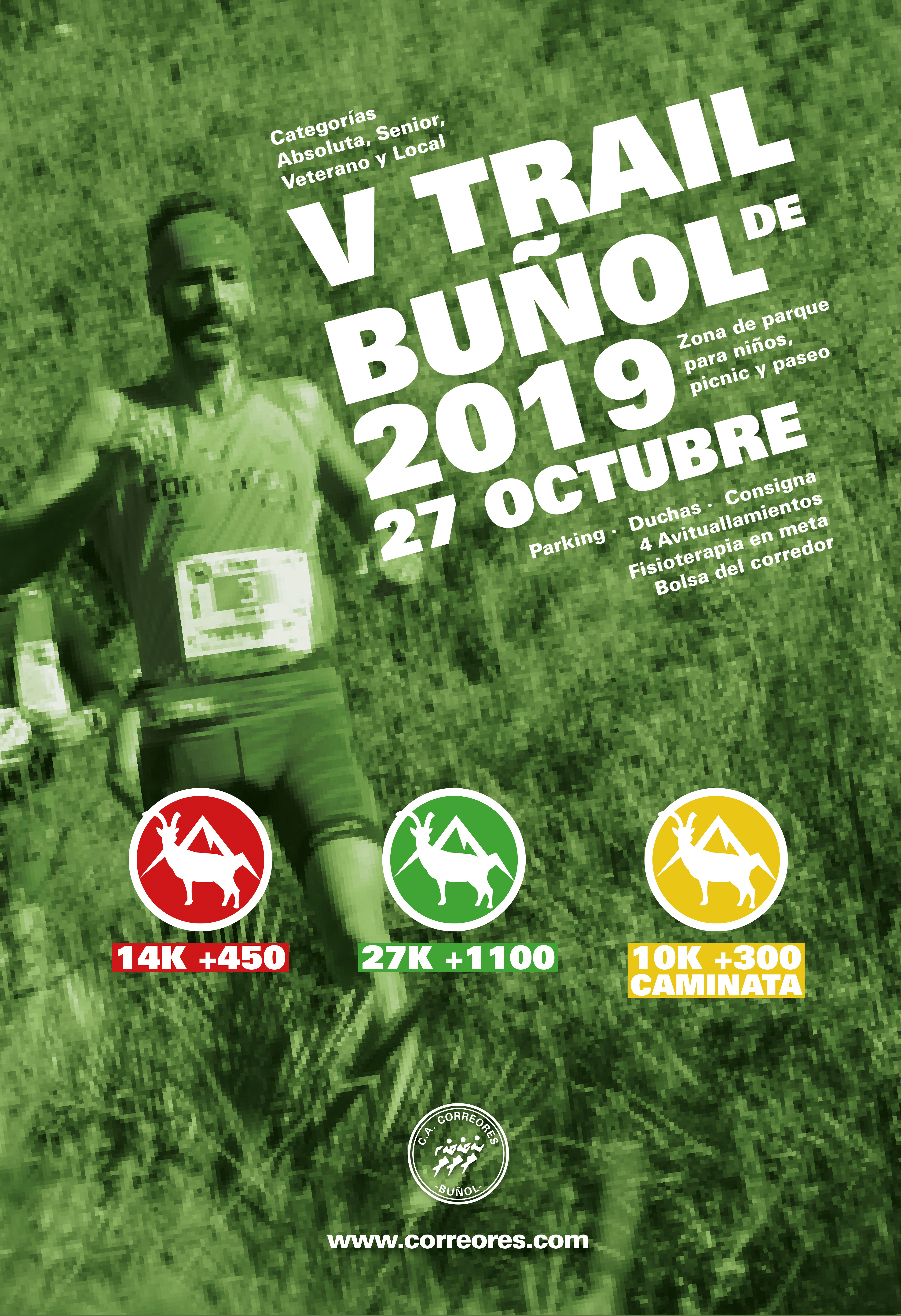 Finalmente, el domingo 27 de octubre se celebra el V Trail de Buñol, que contará con sus habituales modalidades: 27 km. +1100 m., 14 km. +450 m. y la caminata de 10 km. +300 m. que se incluyó el año pasado. Sin duda, una experiencia imprescindible para los amantes de la montaña, que contarán con la garantía de la experiencia del C.A. Correores de Buñol, que ha consolidado la organización de esta carrera por montaña alcanzando ya la quinta edición.
