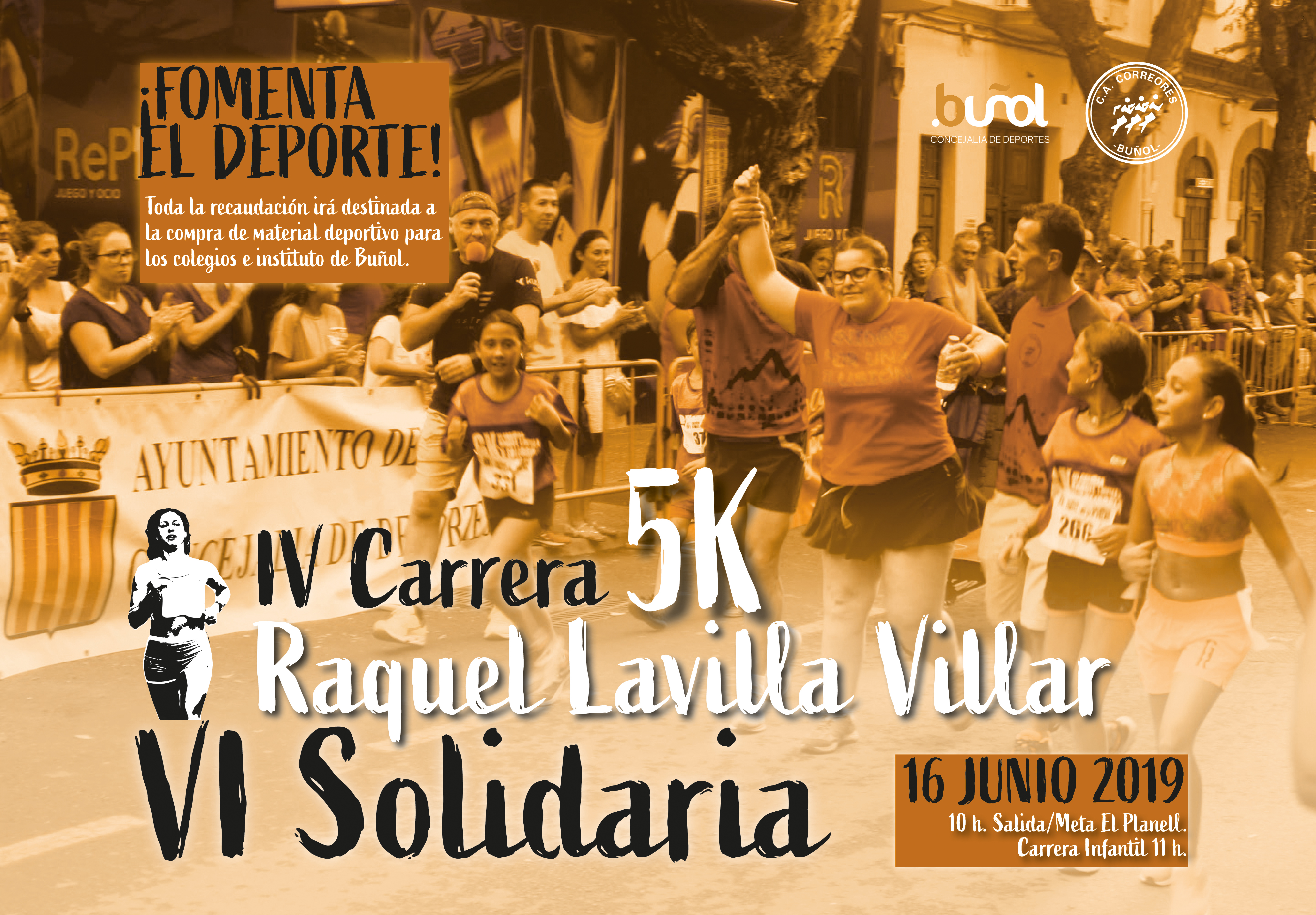El C.A. Correores de Buñol ya ha hecho oficial su calendario de carreras. La primera prueba que se va a celebrar es la IV Carrera Raquel Lavilla Villar VI Solidaria, que tendrá lugar el próximo domingo 16 de junio a partir de las 10 de la mañana. Este año, además de volver a su fecha habitual, la carrera se disputará desde el parque de El Planell y recupera su distancia de 5 km., más adecuada para el corredor menos habitual e incluso para los que deseen hacerla caminando. Como siempre, el dinero recaudado será repartido entre los cuatro centros educativos de la localidad para material deportivo del área de Educación Física. La intención del C.A. Correores de Buñol es siempre fomentar el deporte.