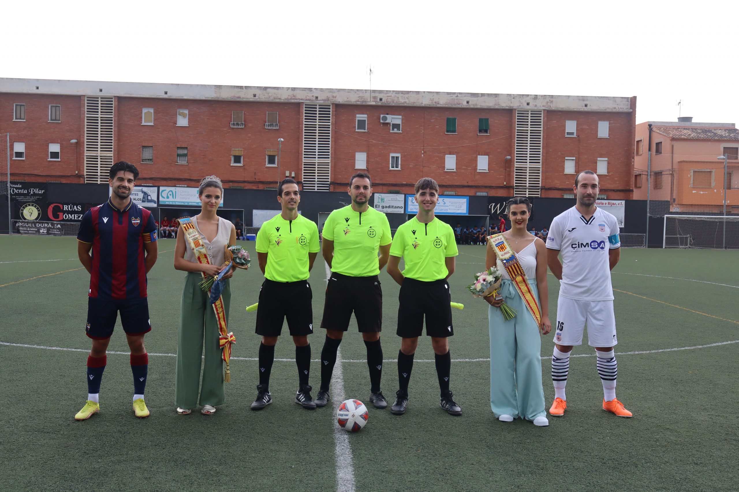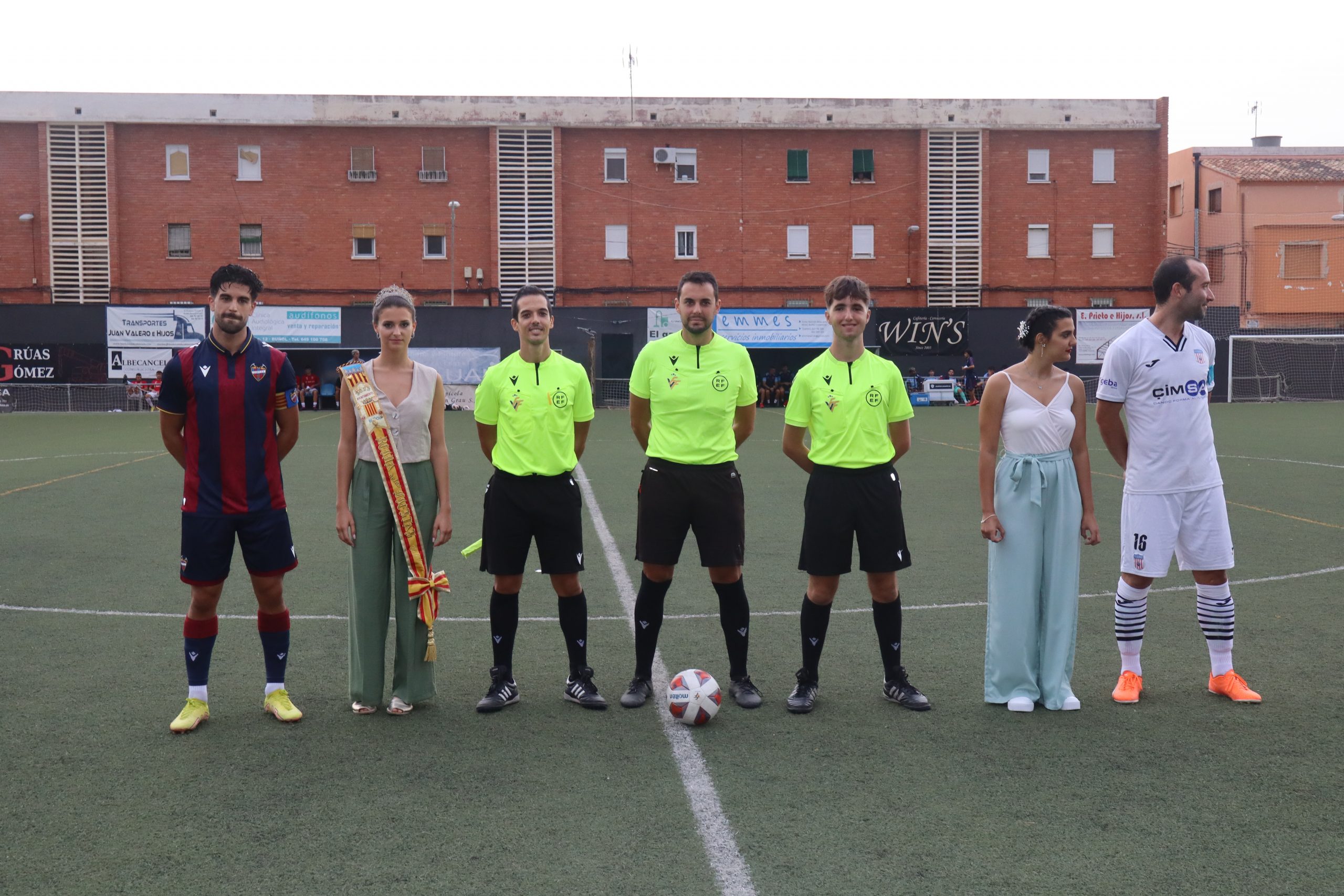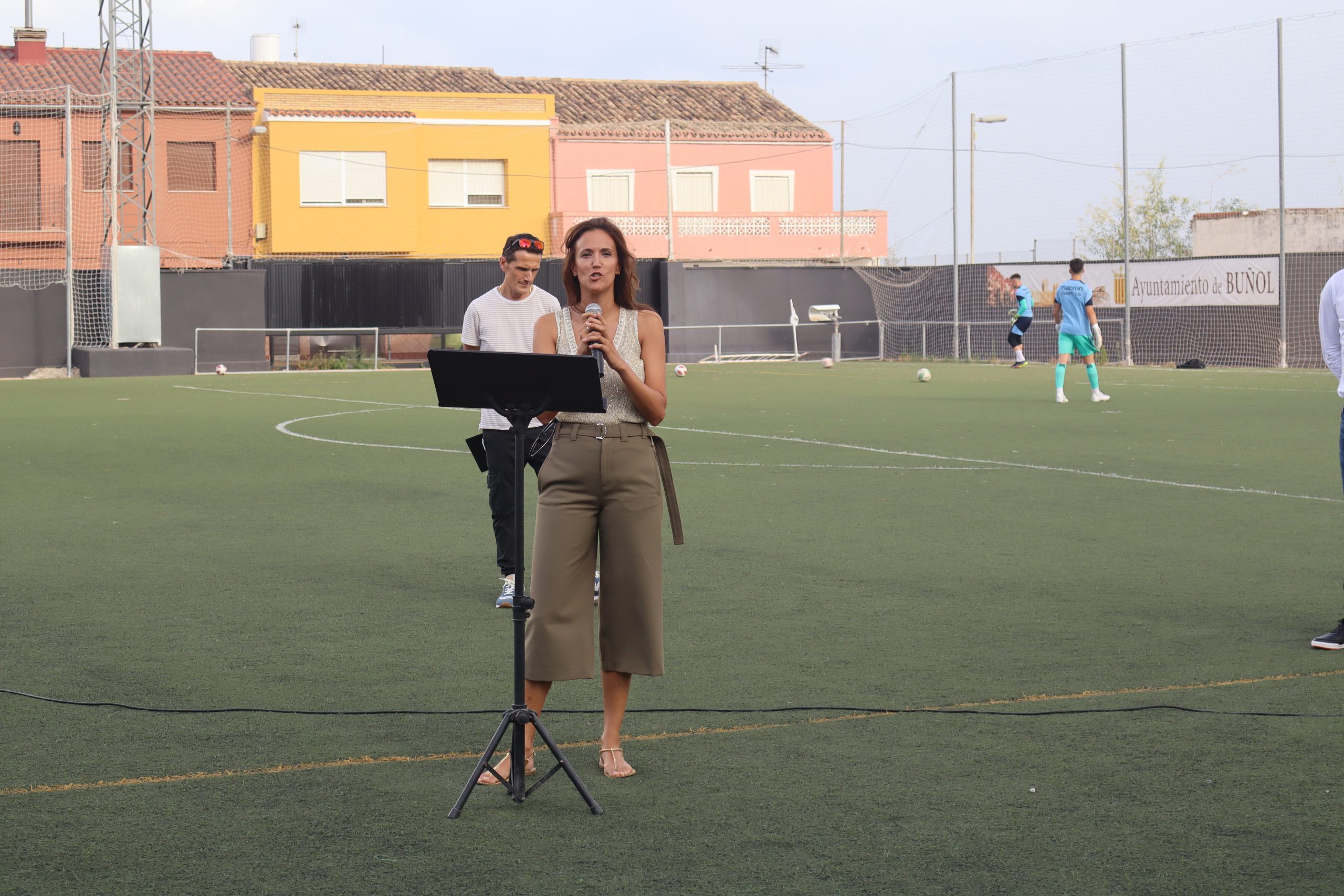 Tras las intervenciones de la propia alcaldesa, del presidente del C.D. Buñol, Francisco Zanón, del primer entrenador, Luis Navarro, y del capitán, Rubén González “Gonza”, la presentación dio paso al partido de fútbol frente al Atlético Levante U.D., con saque de honor por parte de la representante del club, Aitana Lambíes Vallés. El encuentro acabó en derrota por la mínima 0-1, pero dejando buenas sensaciones por parte del equipo local.