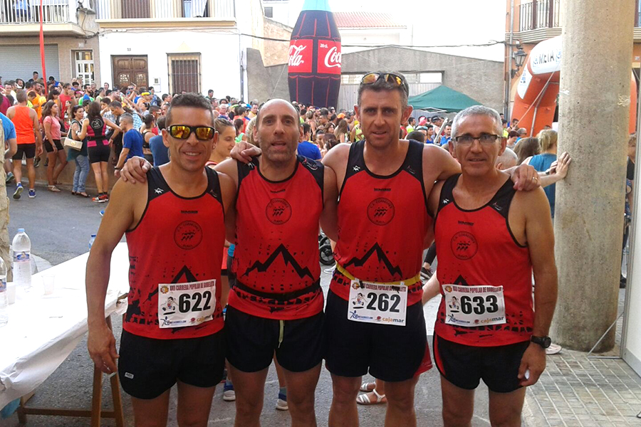 El 4 de agosto se celebró la IV 10K Vuelta a Pie Macastre. Casi 500 corredores terminaron la prueba, entre los que se encontraban algunos miembros del C.A. Correores de Buñol, que no podían faltar a la cita del pueblo vecino. Ramón Ginés nos dio una vez más una gran alegría, al quedar primero en categoría Veterano B (41.41, 21º de la general). Le acompañaron Miguel Ibáñez, Laguna Martínez, Jordi Zanón, Miguel Criado y Emilio Fuertes.
