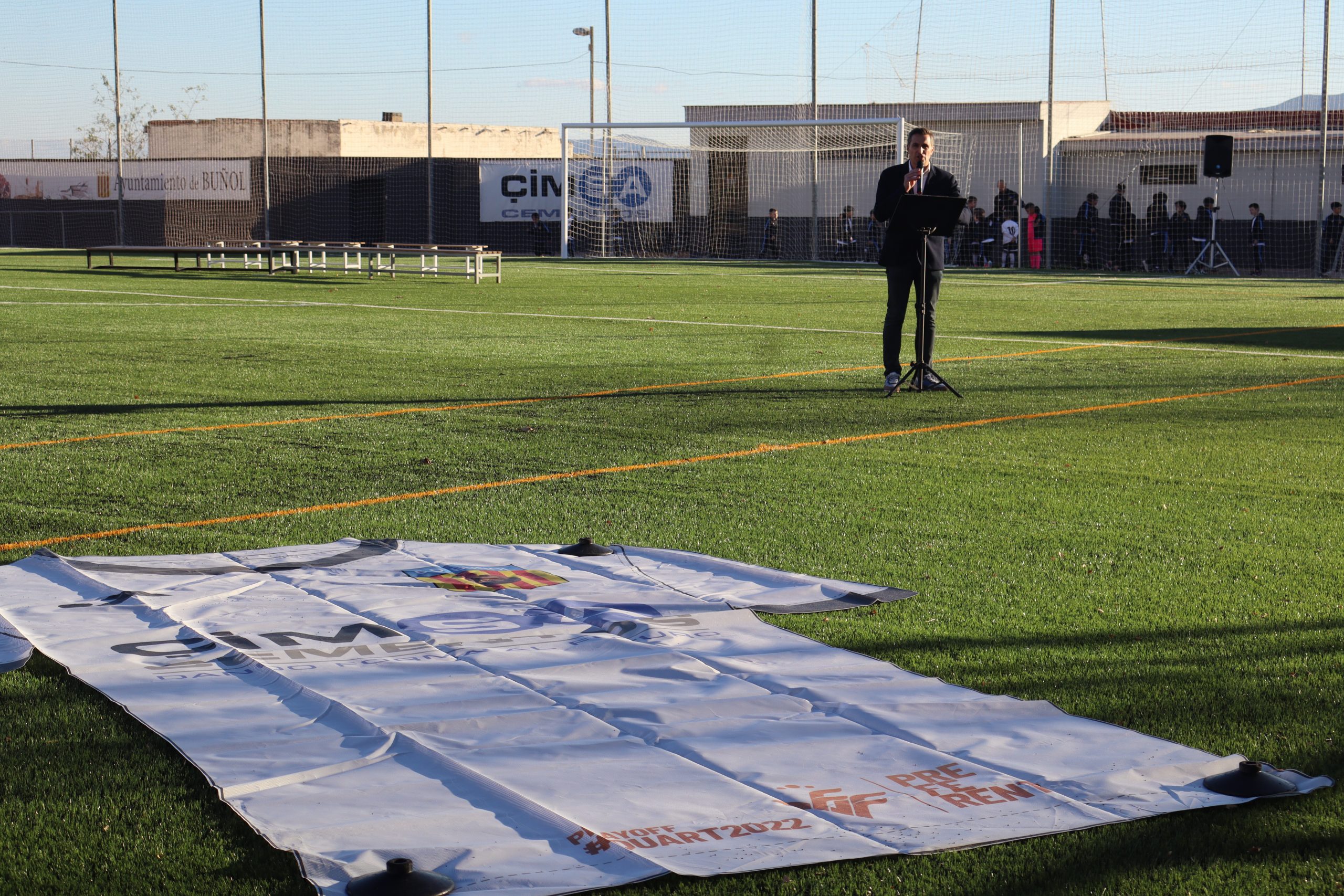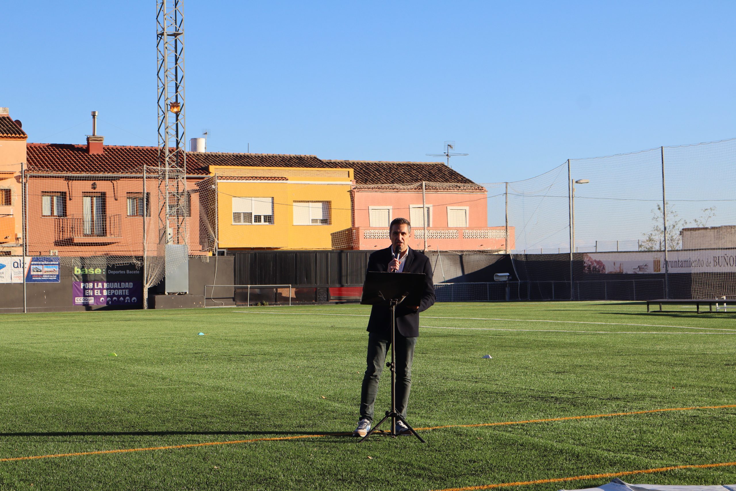 Uno a uno fueron saltando las jugadoras y jugadores de los distintos equipos al renovado césped artificial del Beltrán Báguena y recibieron el caluroso aplauso del público que los alentó y animó en todo momento. La presentación coincidió con la inauguración del nuevo césped artificial recién instalado en el campo. Allí acudió el presidente de la Diputación de Valencia, Vicent Mompó y la vicepresidenta del entre provincial, Natalia Enguix, que estuvieron acompañados por el presidente del club, Nicolás Galarza y por las autoridades del Ayuntamiento de Buñol. Lo bien cierto, es que el campo lucía un aspecto inmejorable para una tarde que fue muy emocionante. El acto, que presentó el periodista buñolense, Chimo Masmano, concluyó con un partido amistoso del equipo juvenil y con merienda para todos los asistentes.