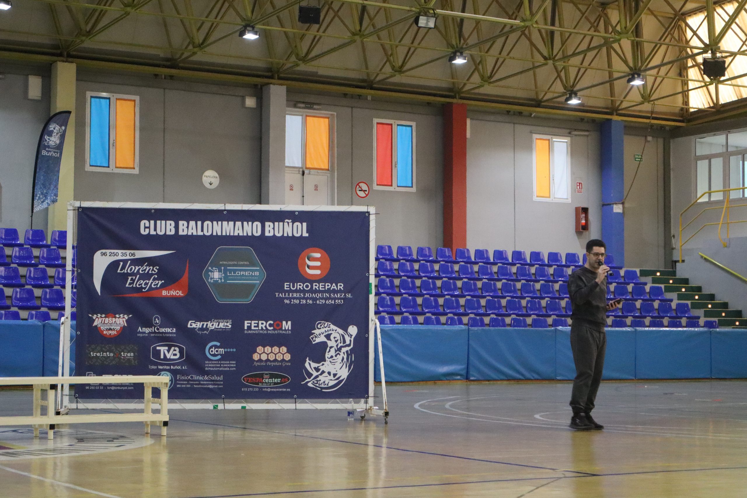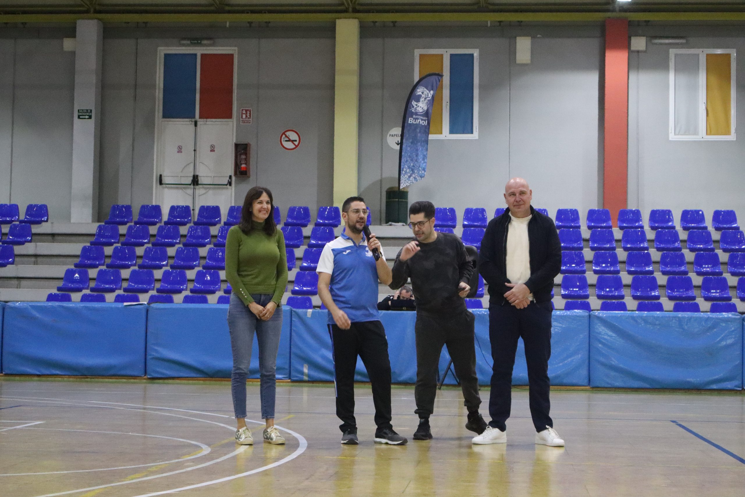 Tras saltar todos los equipos al campo, el público pudo disfrutar del encuentro de liga del conjunto sénior frente al Pilar Valencia «B», que desgraciadamente acabaron perdiendo los locales. Durante el descanso del partido, el club realizó varios sorteos con productos aportados por los numerosos patrocinadores que respaldan esta temporada al Balonmano Buñol.