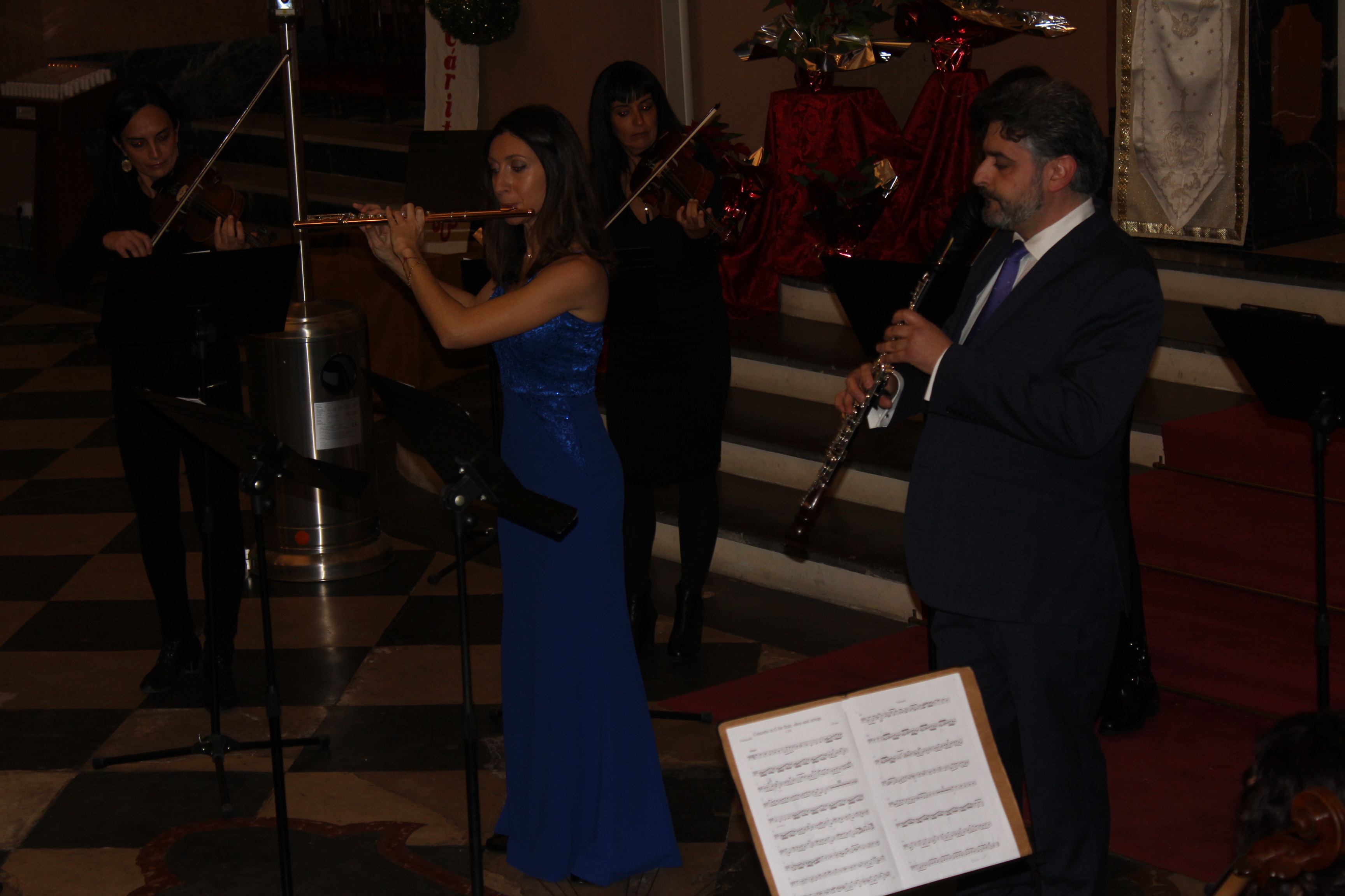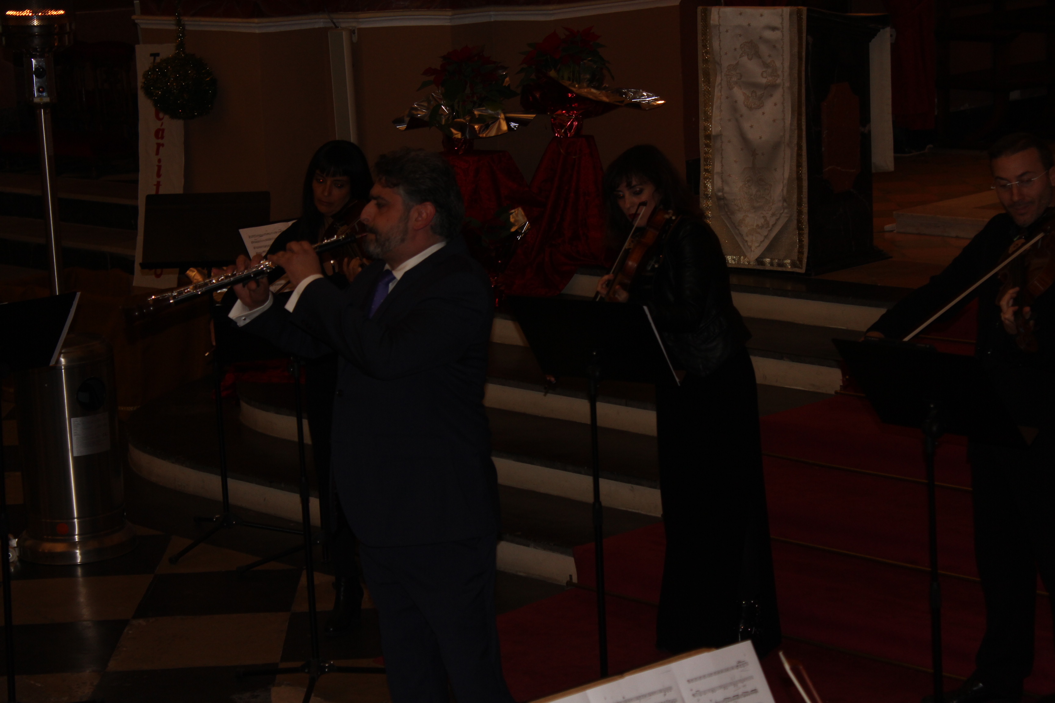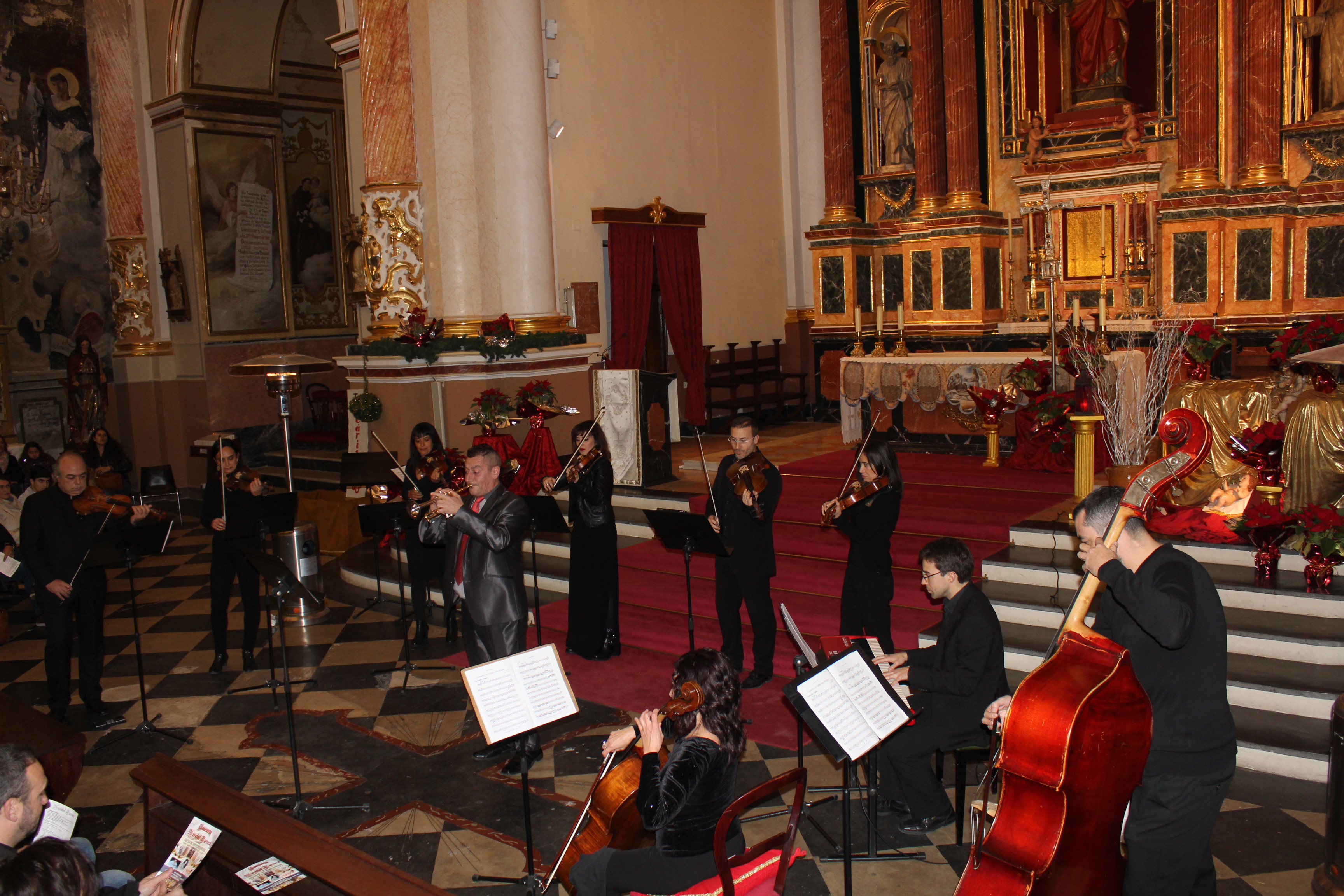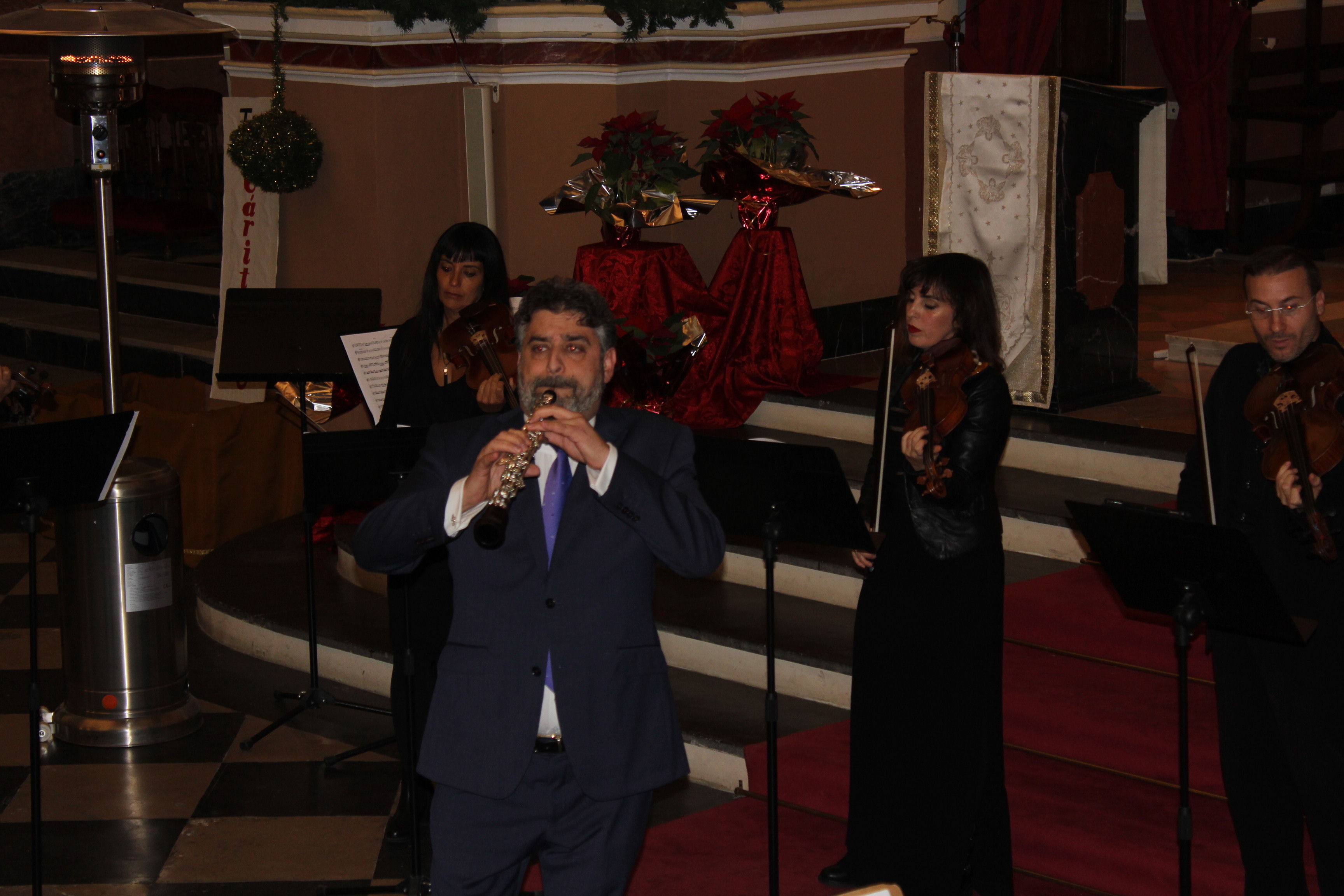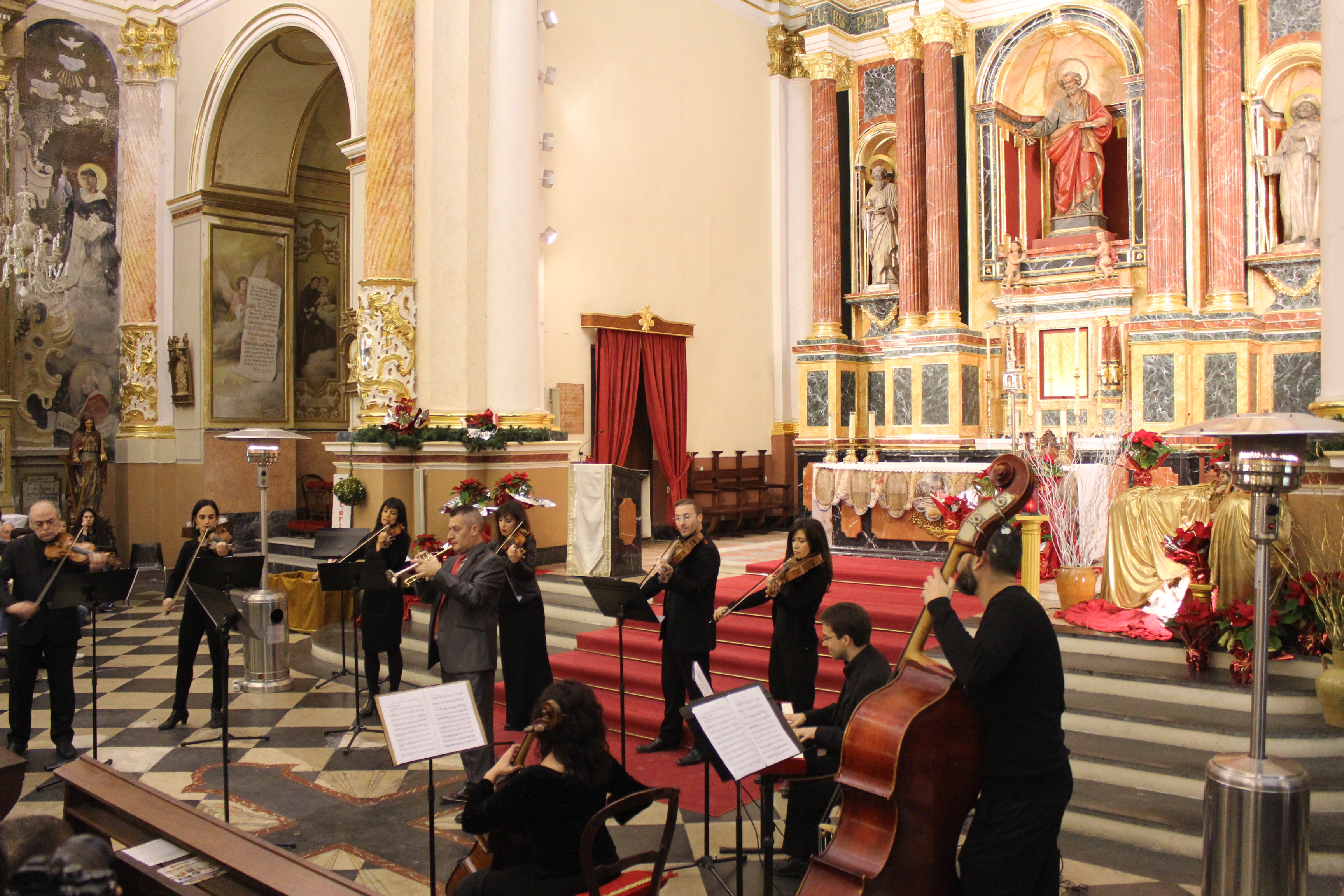 David Avilés.- La parroquia San Pedro Apóstol de Buñol acogió ayer el concierto «Navidad Barroca» que abarrotó el templo de amantes a la música. El concierto corrió a cargo de los solistas Antonio Cambres a la trompeta, Amalia Tortajada a la flauta y José Antonio Masmano al oboe, acompañados la Camerata Bertrán. Los músicos deleitaron al público, entre el cual estuvo la alcaldesa Juncal Carrascosa, el concejal de cultura Juan Luis Pallas y el párroco de localidad Enrique Boronat entre otros, acompañados como no por los familiares de estos magníficos intérpretes.