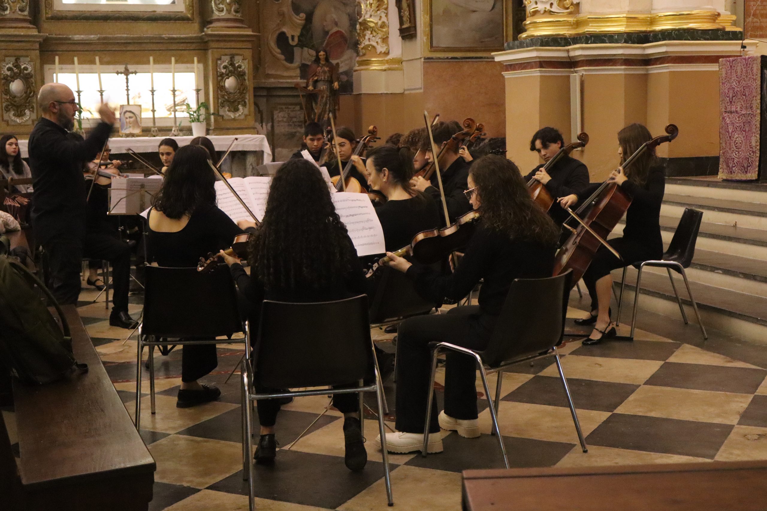 El recital, que dio comienzo a las 20:00 horas, ofreció un programa variado en el que se combinaron obras corales y piezas interpretadas por la orquesta de cuerda, creando un ambiente solemne y cercano, acorde con el espacio y el momento del año. La actuación puso en valor el trabajo realizado por el alumnado y el profesorado, así como el esfuerzo colectivo que hay detrás de este tipo de conciertos.