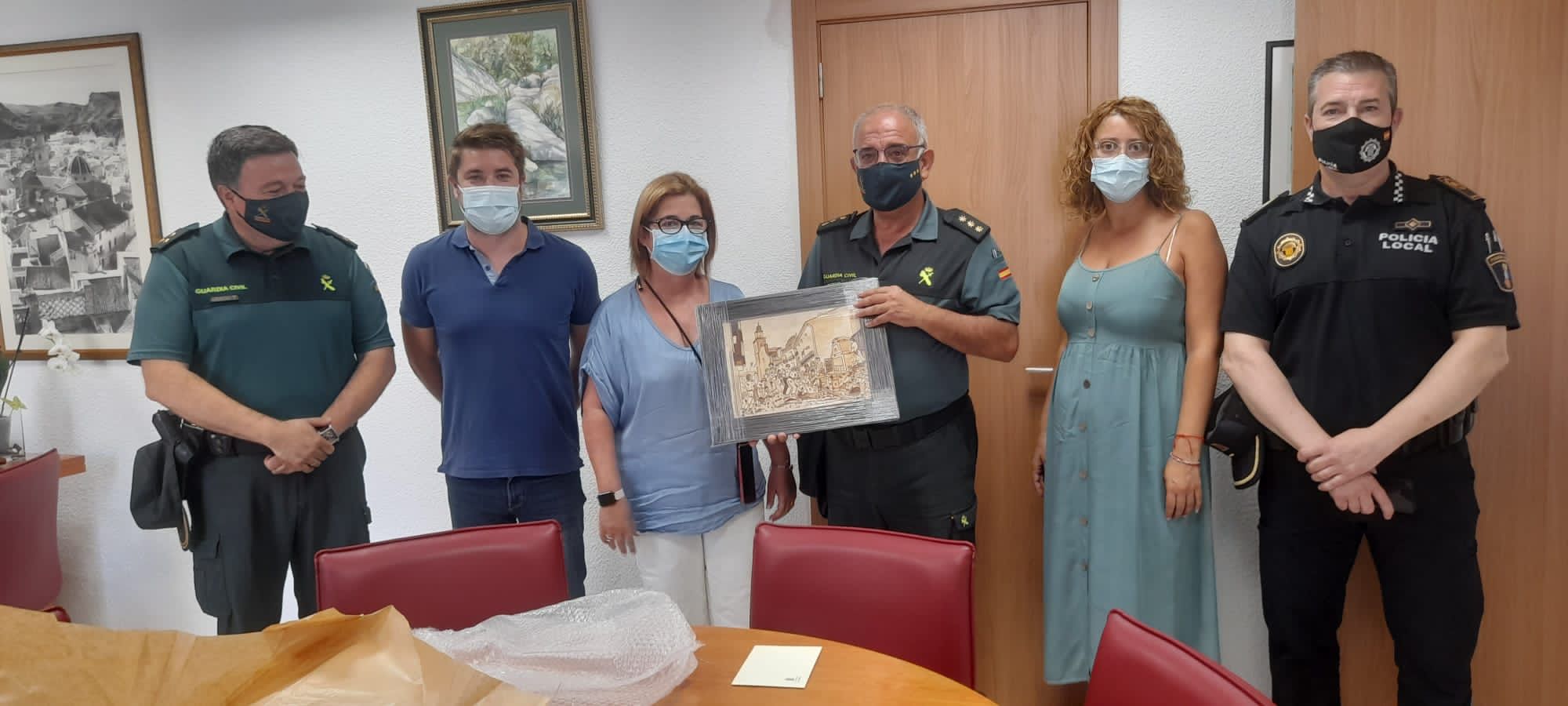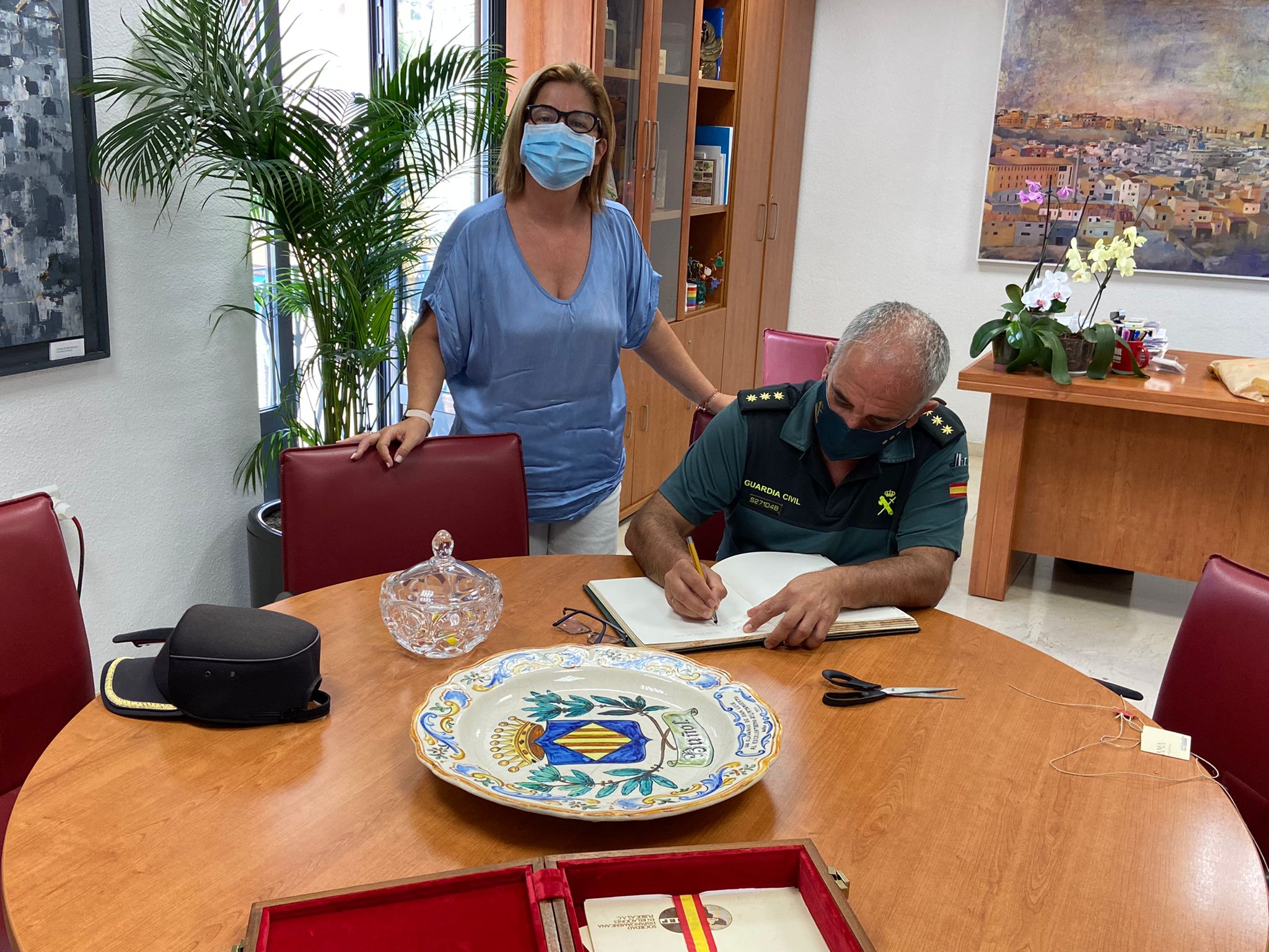 La Alcaldesa ha ofrecido, en recuerdo de Buñol y en agradecimiento a su labor, una pieza de cerámica de Albuyama que simboliza los orígenes de “la Tomatina”. No en vano tanto el Coronel, como el Capitán han sido unos grandes promotores y defensores de la seguridad en la fiesta internacional. También ha sido determinante su implicación para el refuerzo del personal del puesto de Guardia Civil de Buñol.