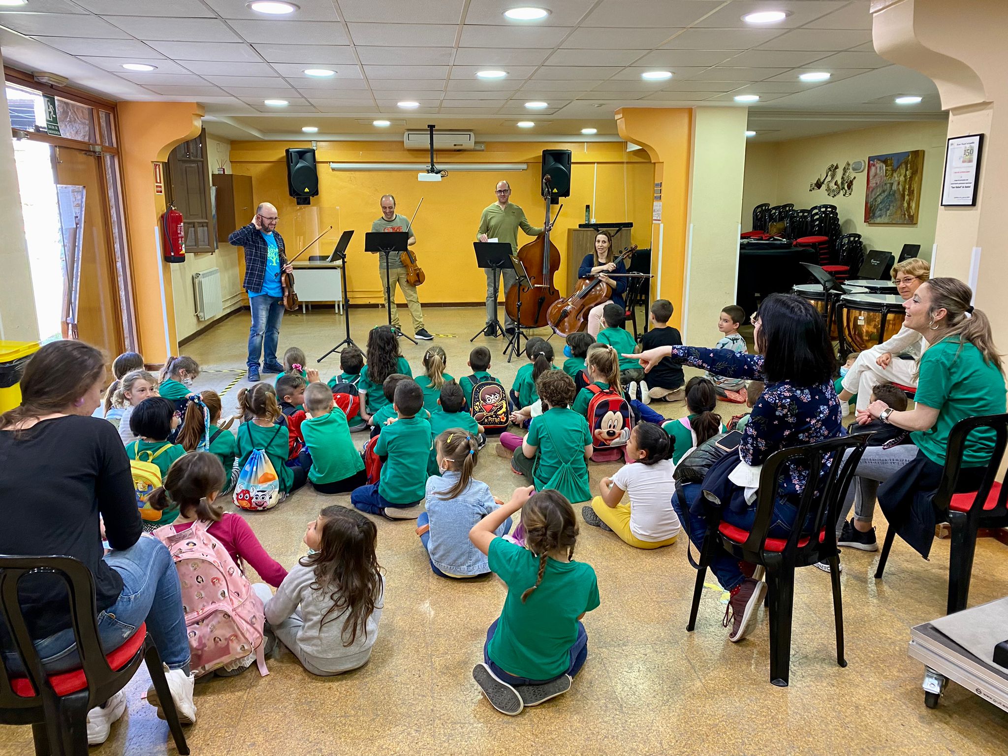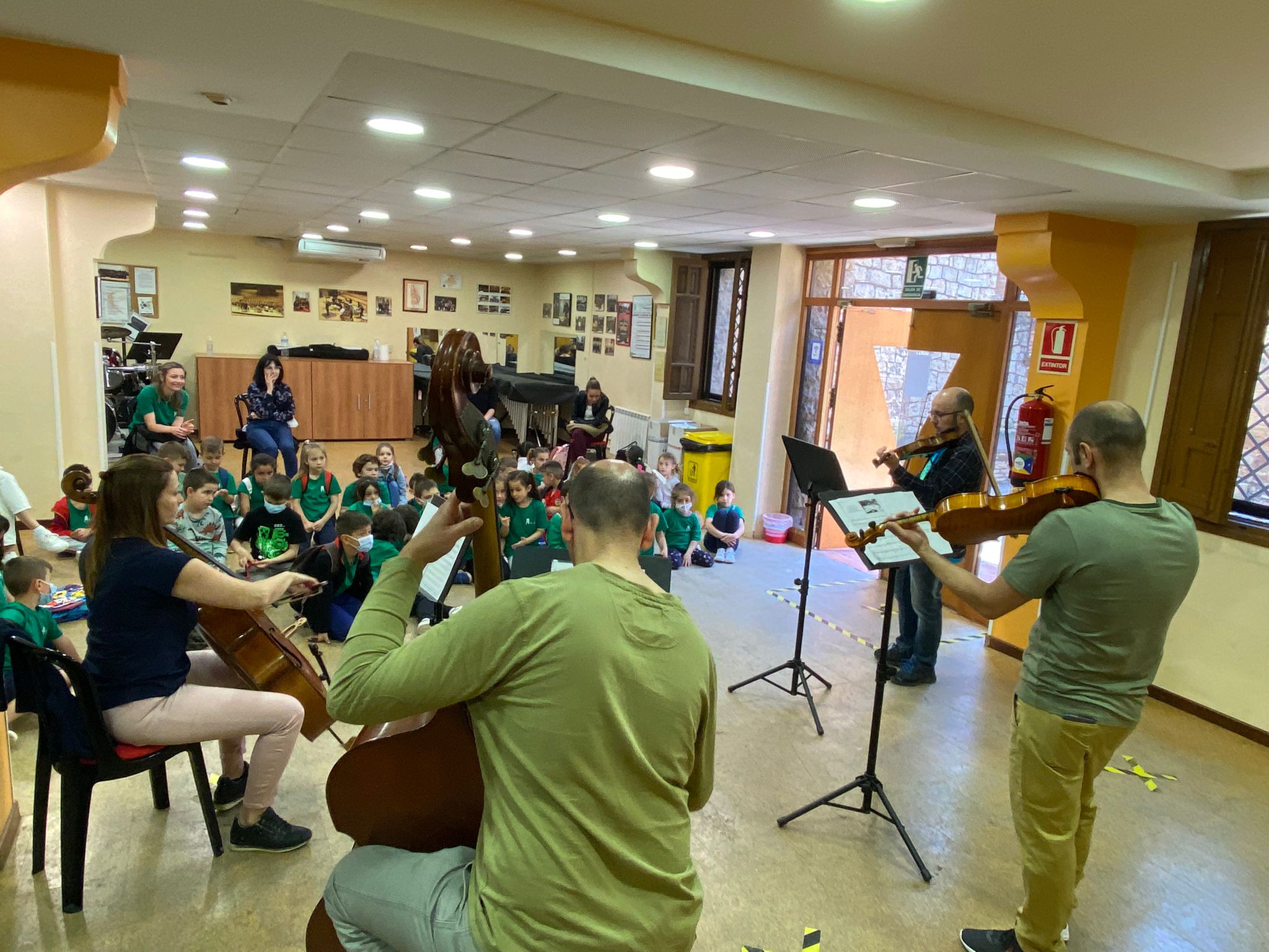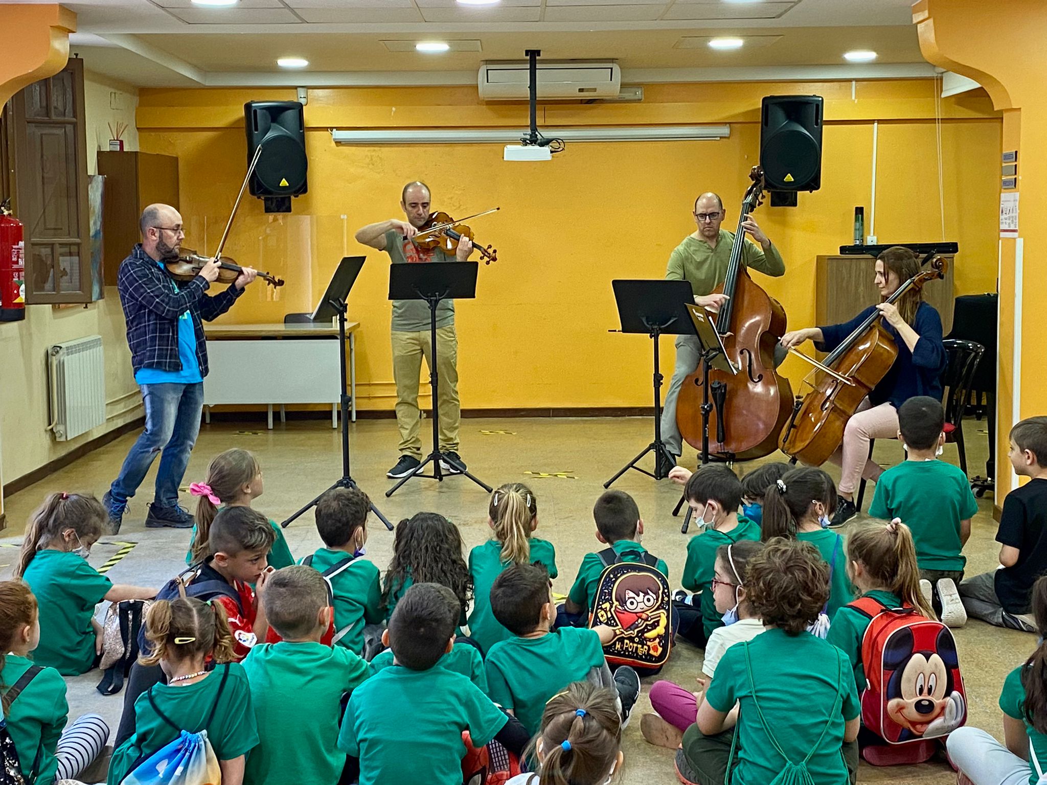 La actividad consistió en una explicación didáctica de los instrumentos de la familia de la cuerda frotada, interactuando con los niños y profesores de los colegios. Estos pequeños pudieron ver de primera mano los instrumentos de cuerda que formaron el cuarteto de los profesores José Guerrero (violín), Juan García (viola), Sheyla Carrascosa (violonchelo), y Valeriano Hernández (contrabajo).