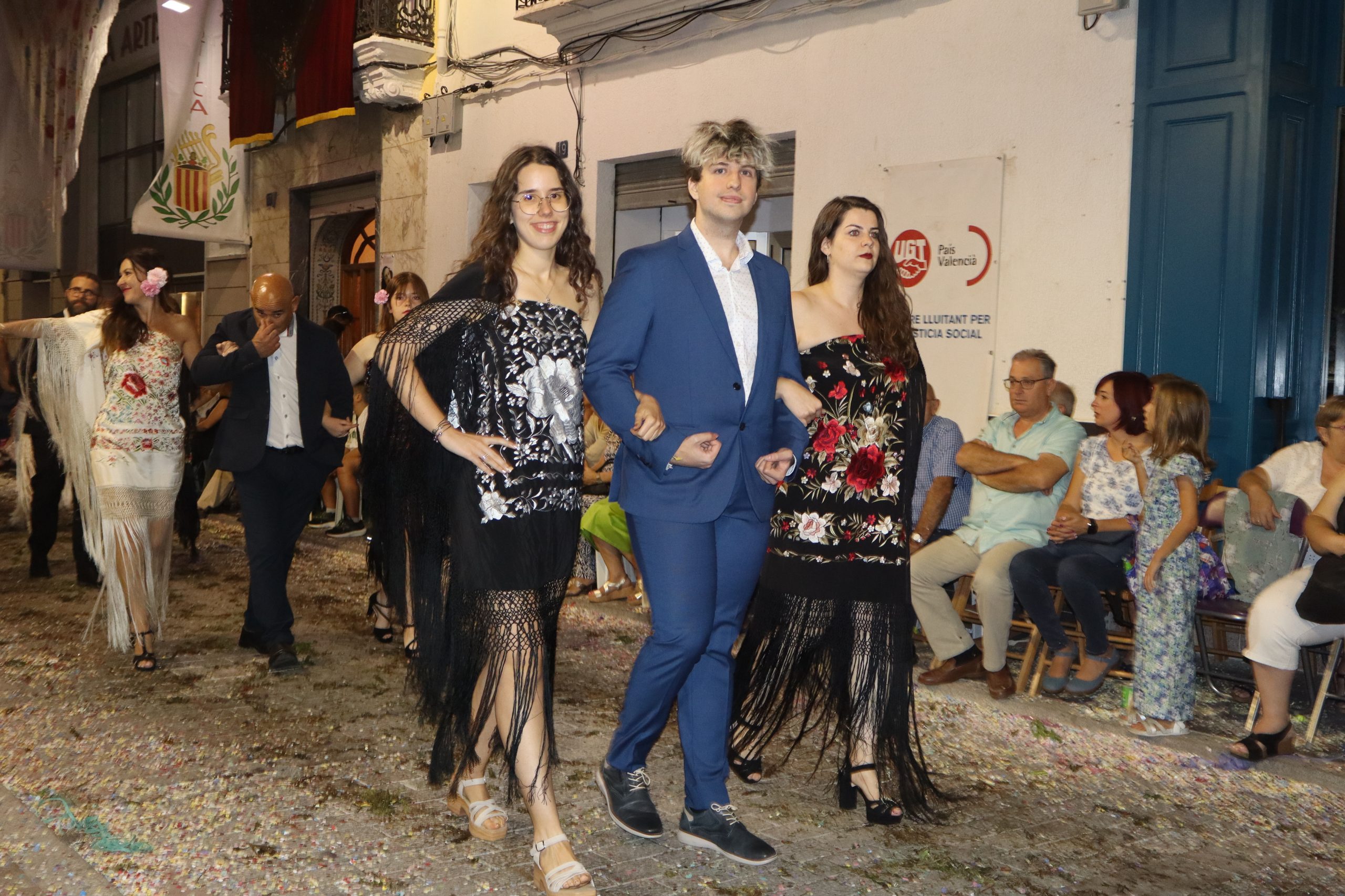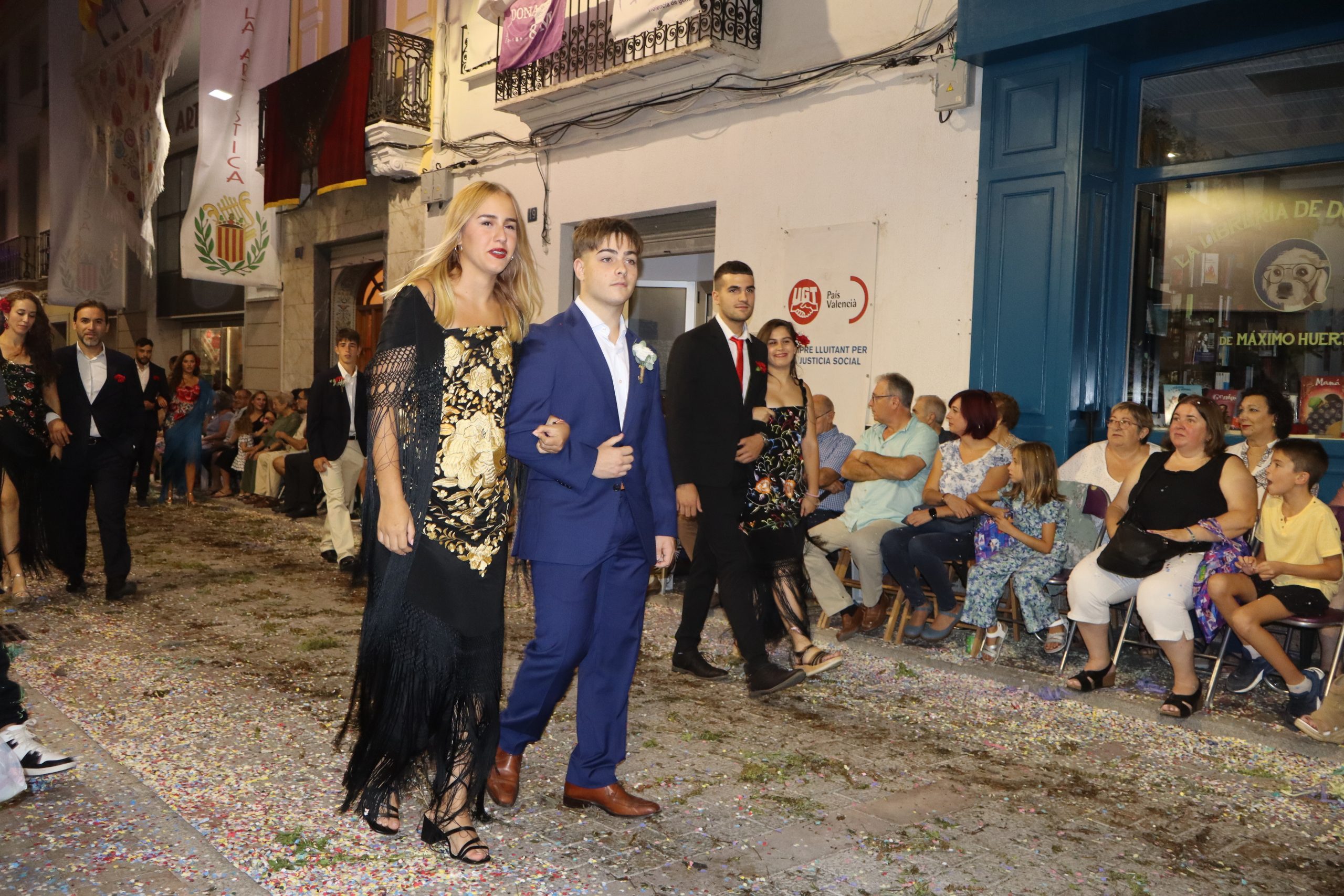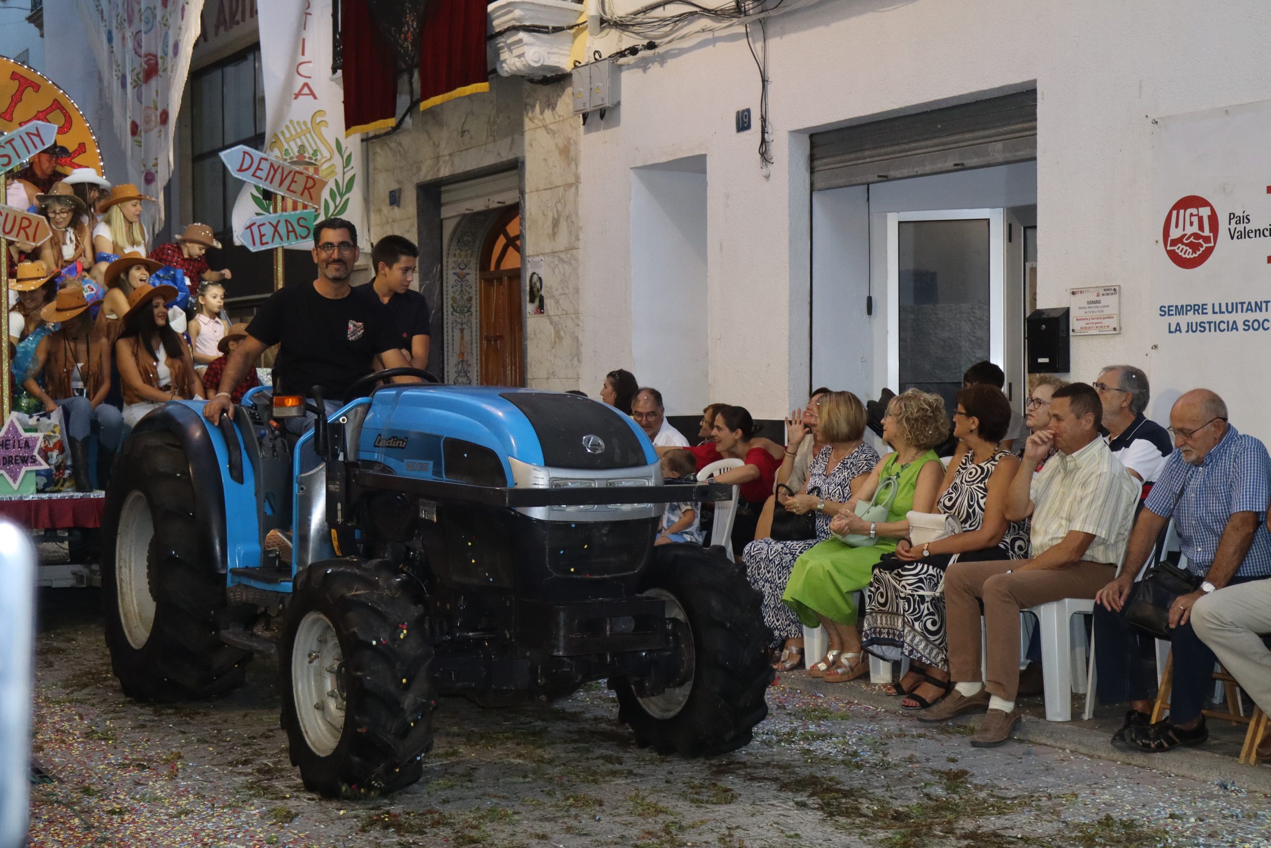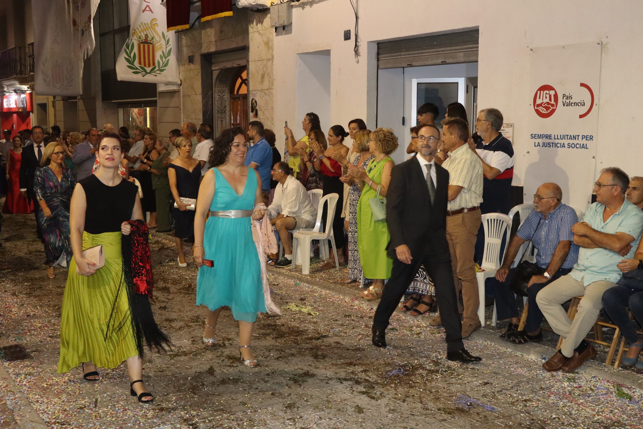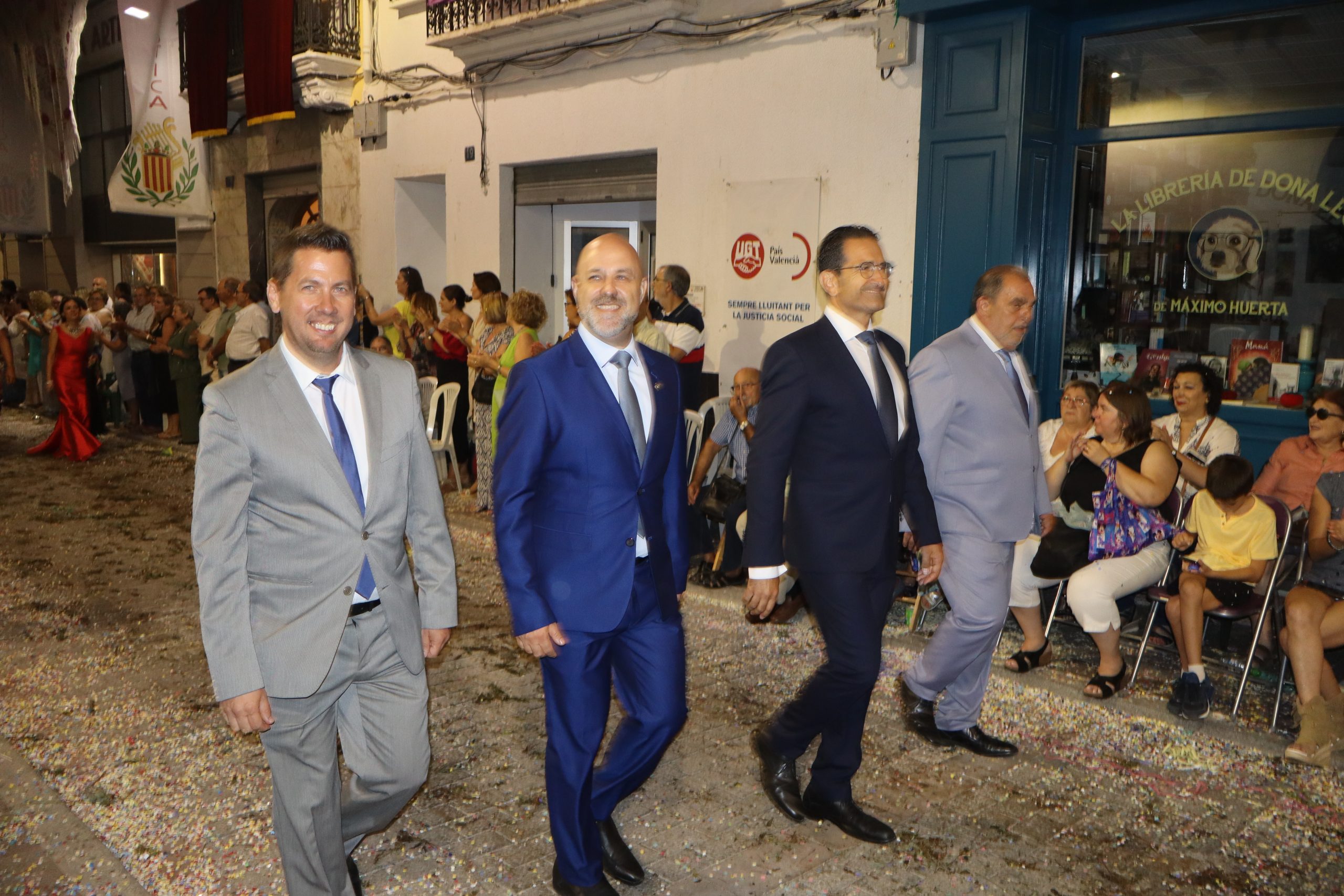 El desfile se cerró con la carroza de las Reinas y Representante del año pasado, mientras que las de este ejercicio –Paula Gisbert, Virginia Miñana Carrascosa y Sira Blanes García– desfilaron a pie por las calles buñolenses, acompañadas de diferentes formaciones musicales. La última, como no, «La Artística» de Buñol, dirigida por Mario Ortuño y que acompañaba a la Reina del «Mantón» y a la Junta Directiva, Presidida por Francisco Blasco.