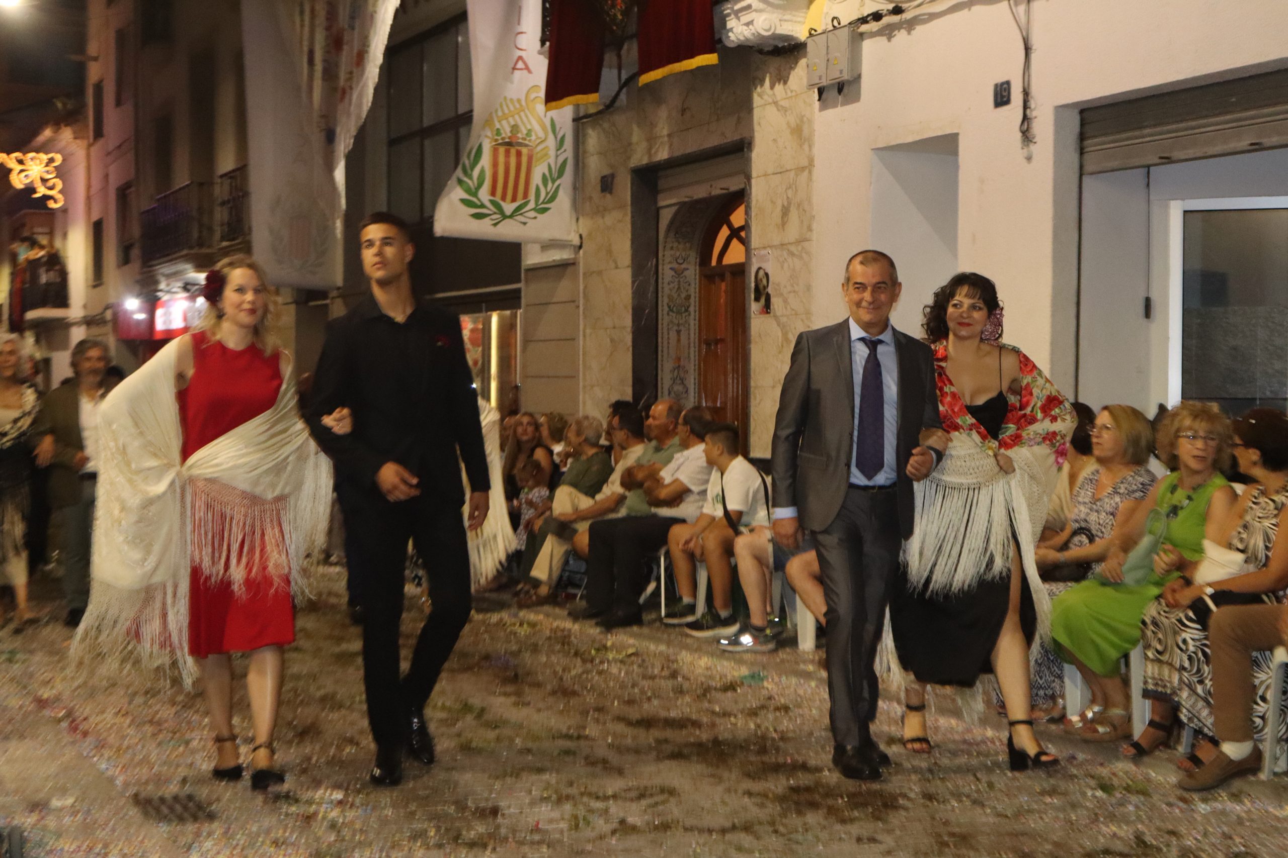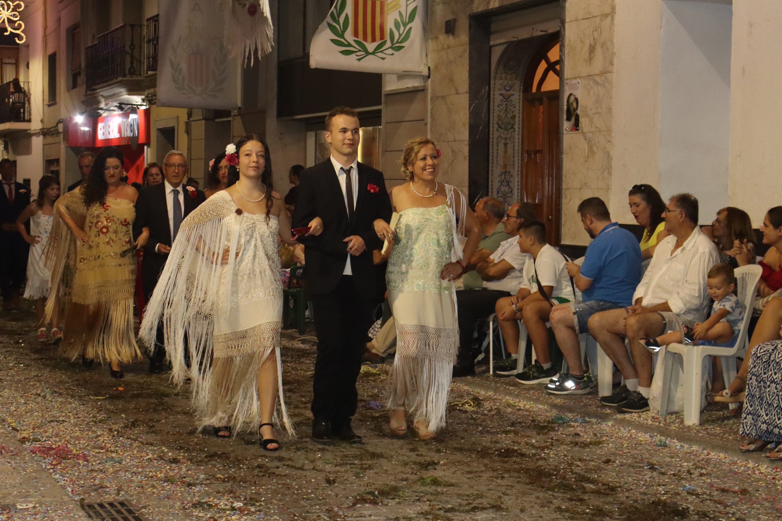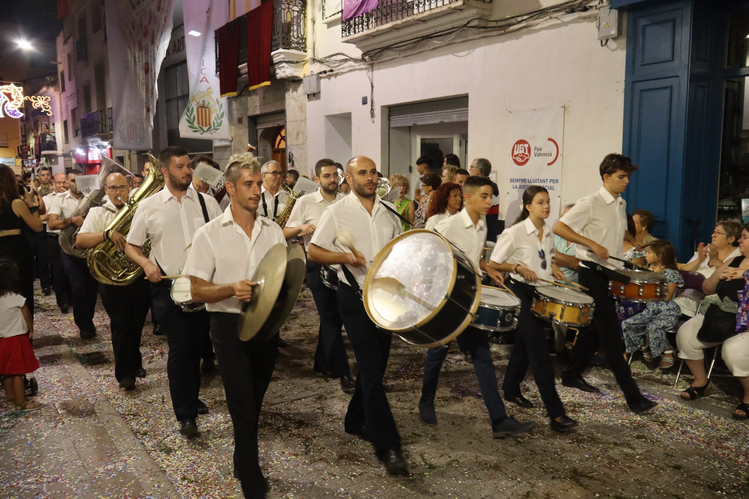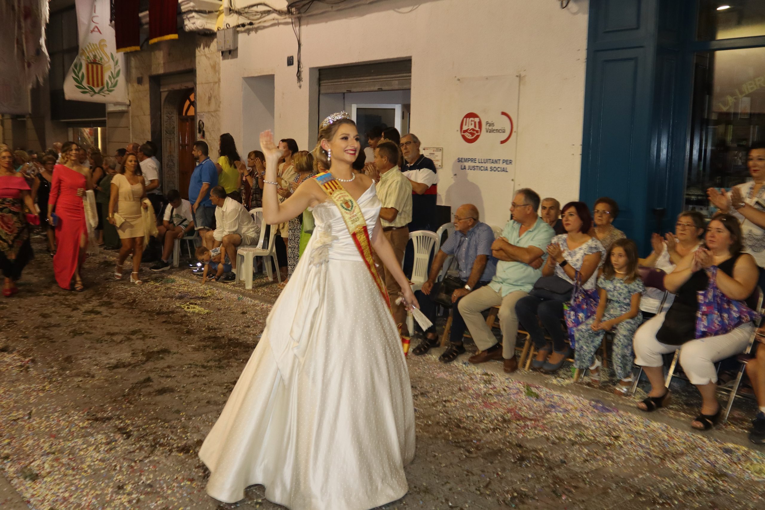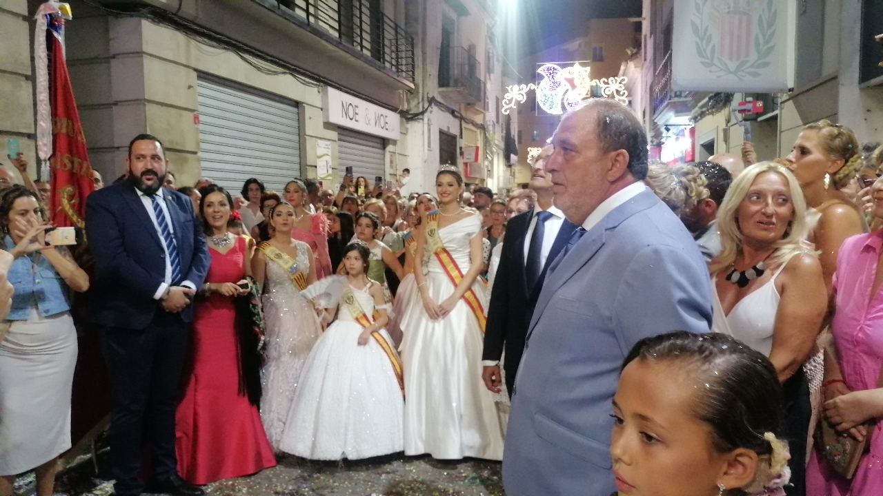 El desfile se cerró con la carroza de las Reinas y Representante del año pasado, mientras que las de este ejercicio –Paula Gisbert, Virginia Miñana Carrascosa y Sira Blanes García– desfilaron a pie por las calles buñolenses, acompañadas de diferentes formaciones musicales. La última, como no, «La Artística» de Buñol, dirigida por Mario Ortuño y que acompañaba a la Reina del «Mantón» y a la Junta Directiva, Presidida por Francisco Blasco.
