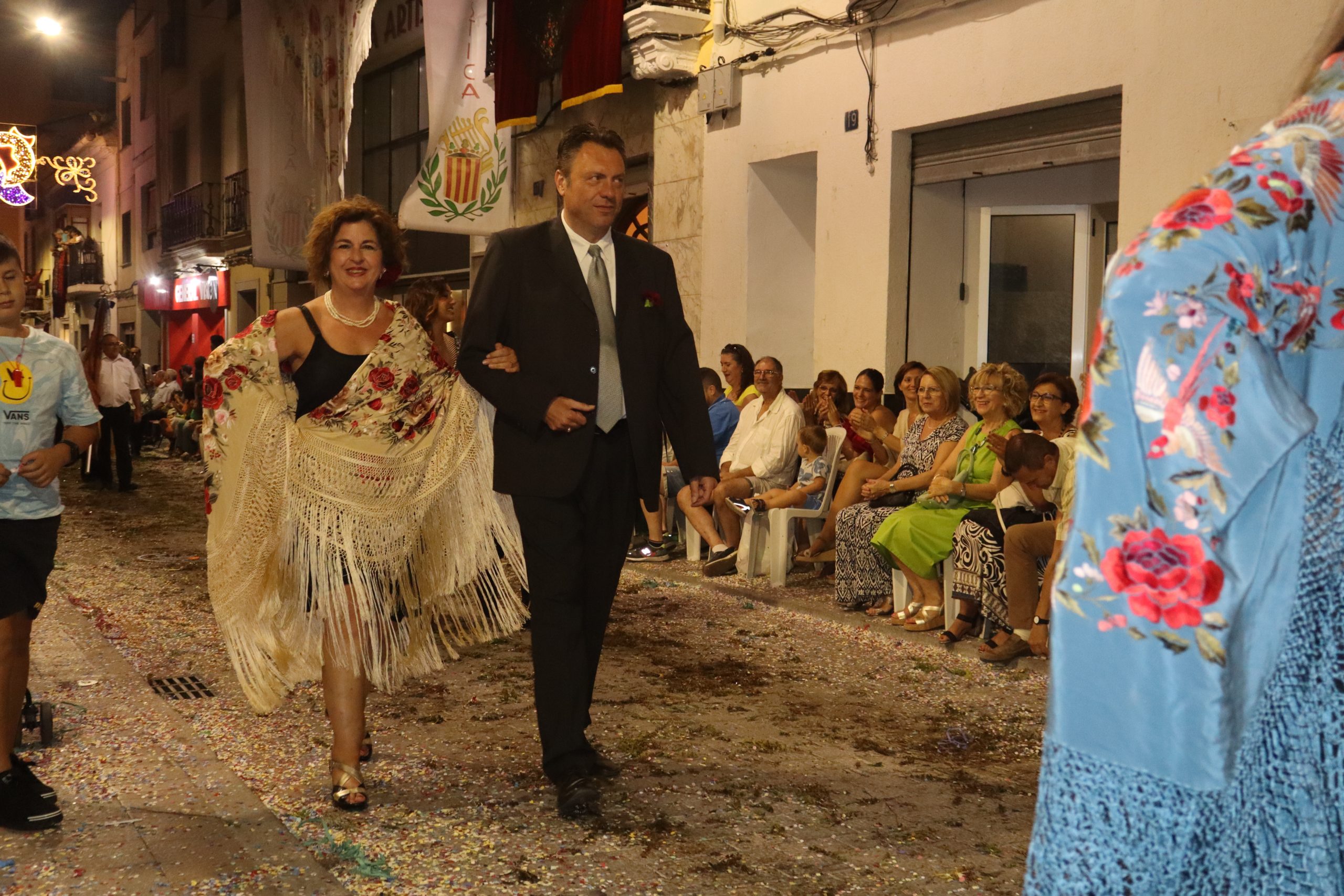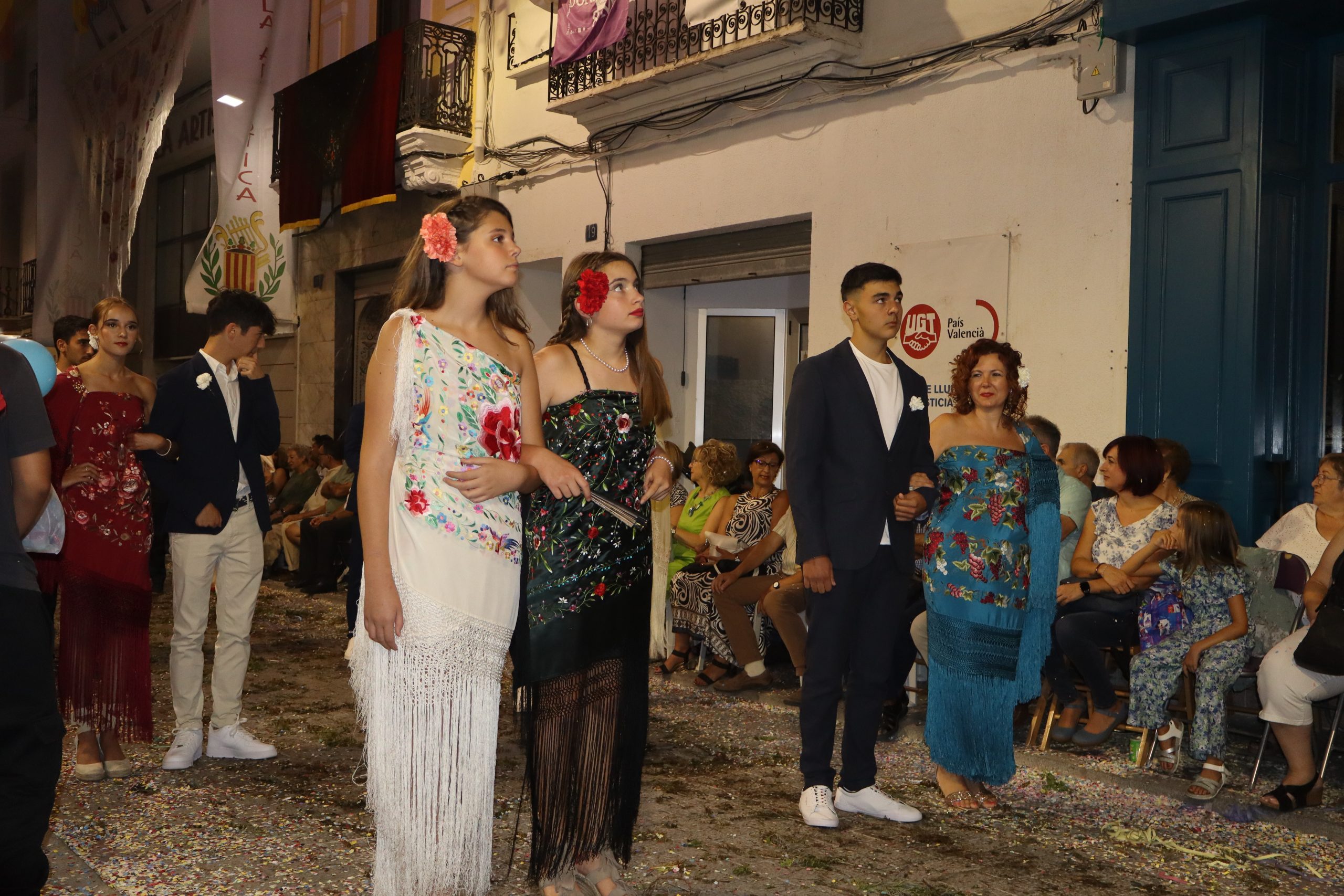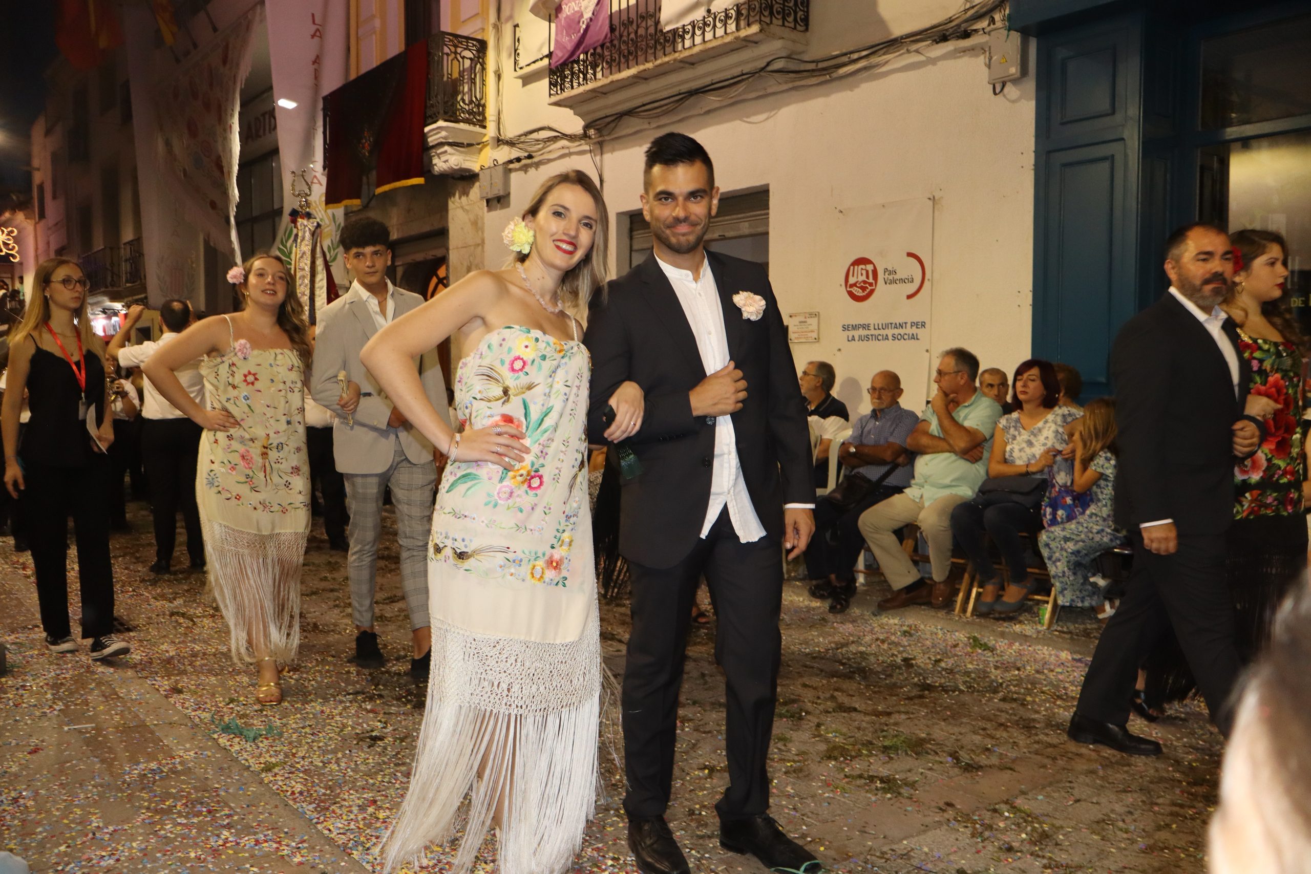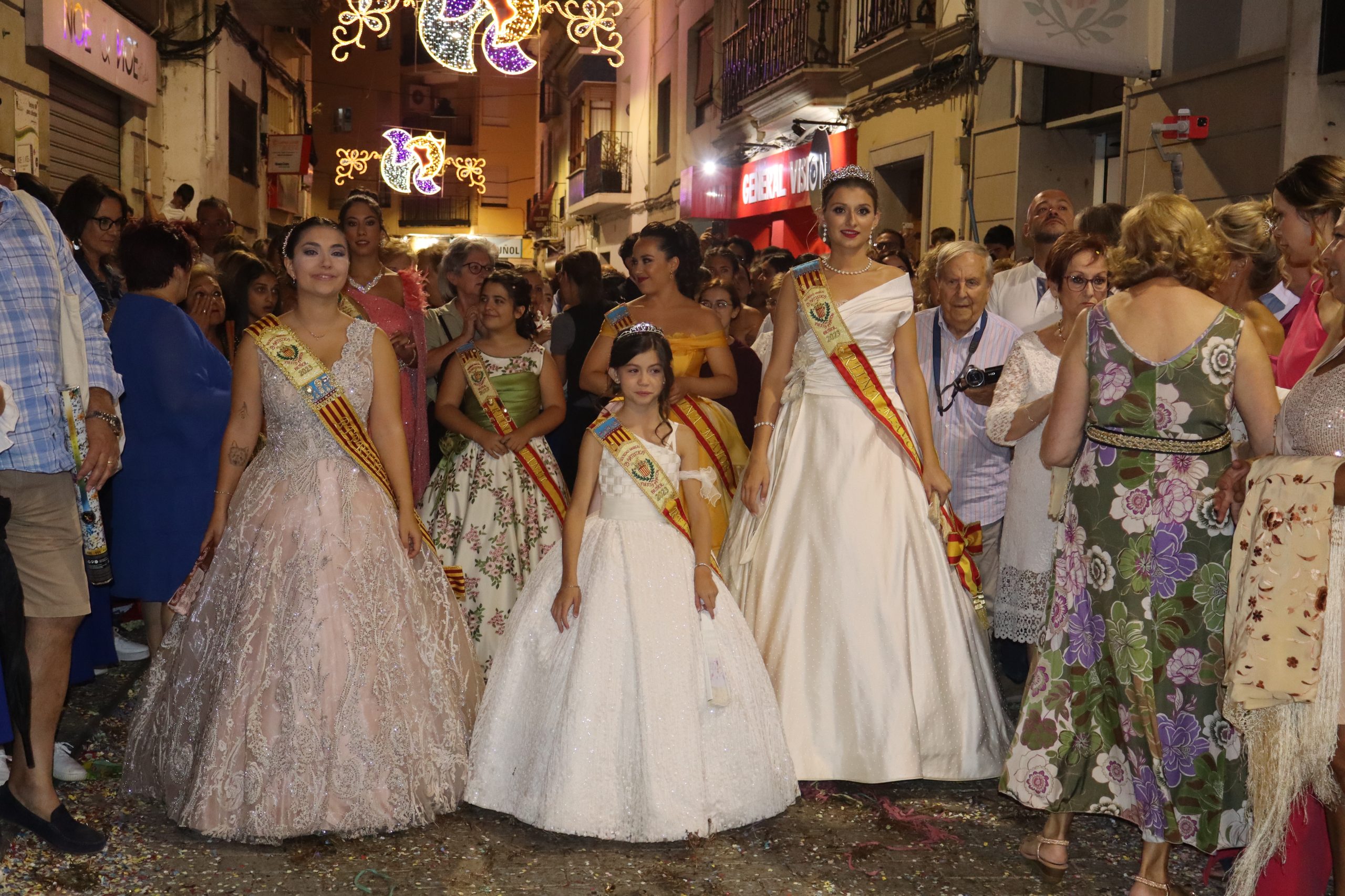 El desfile se cerró con la carroza de las Reinas y Representante del año pasado, mientras que las de este ejercicio –Paula Gisbert, Virginia Miñana Carrascosa y Sira Blanes García– desfilaron a pie por las calles buñolenses, acompañadas de diferentes formaciones musicales. La última, como no, «La Artística» de Buñol, dirigida por Mario Ortuño y que acompañaba a la Reina del «Mantón» y a la Junta Directiva, Presidida por Francisco Blasco.