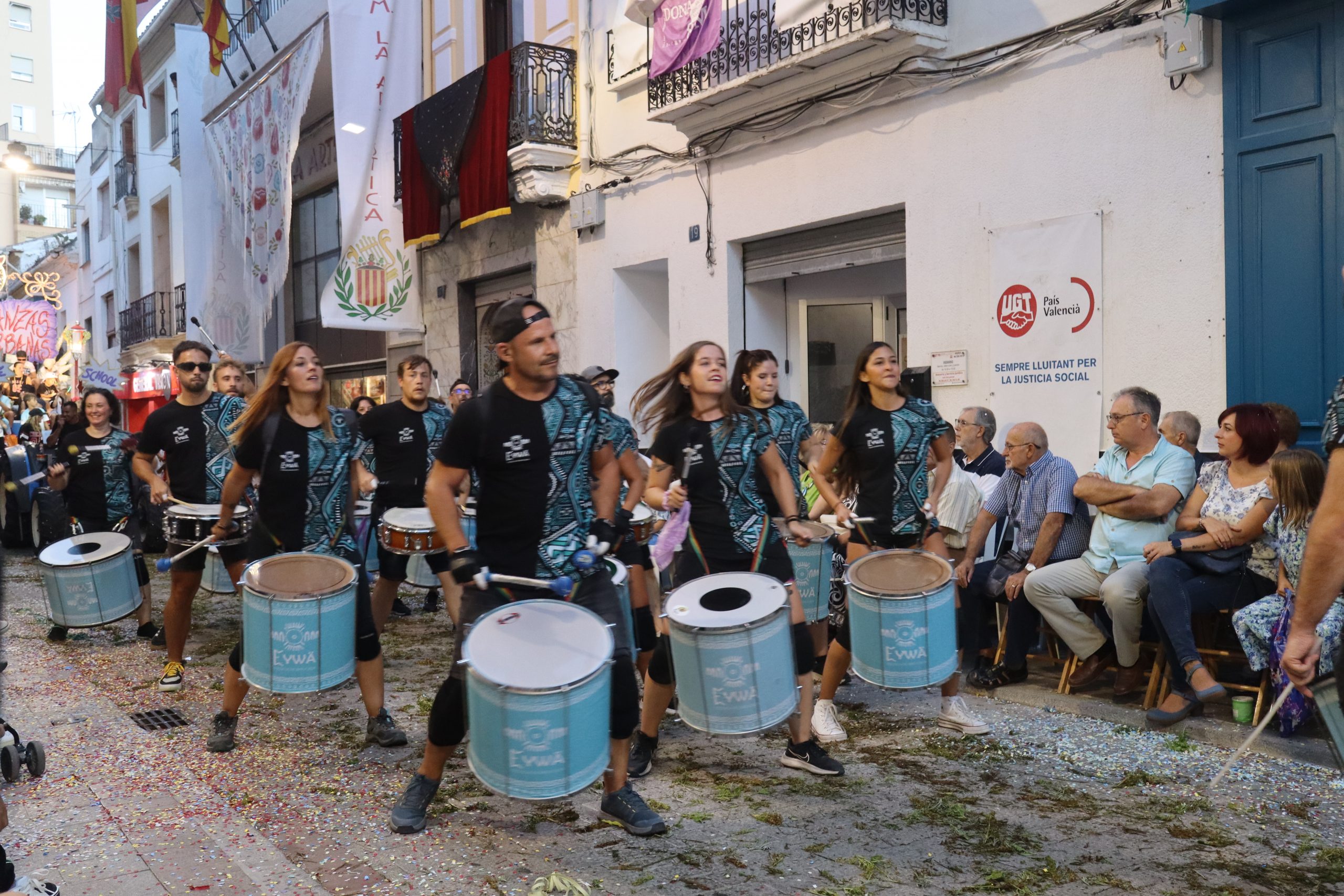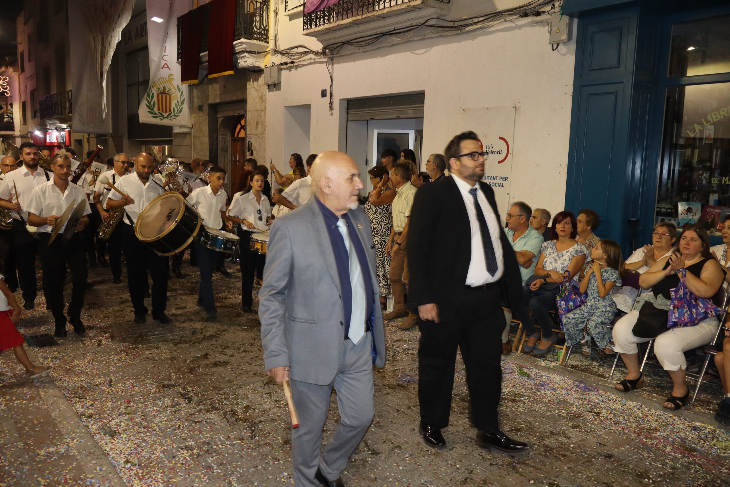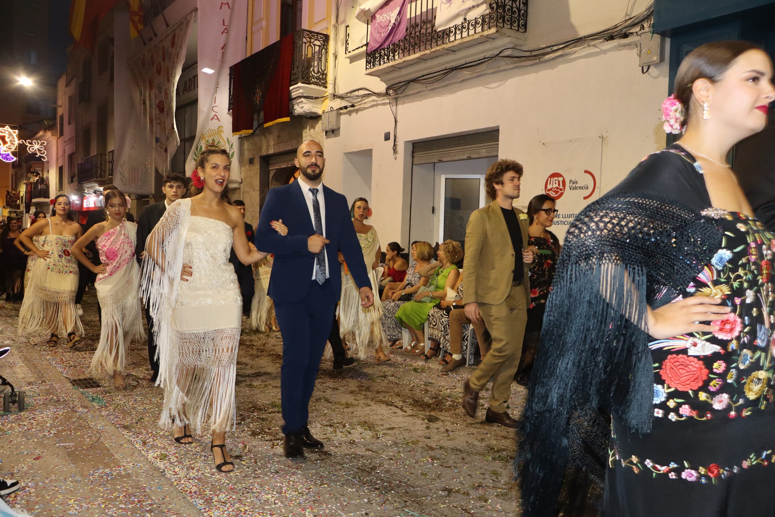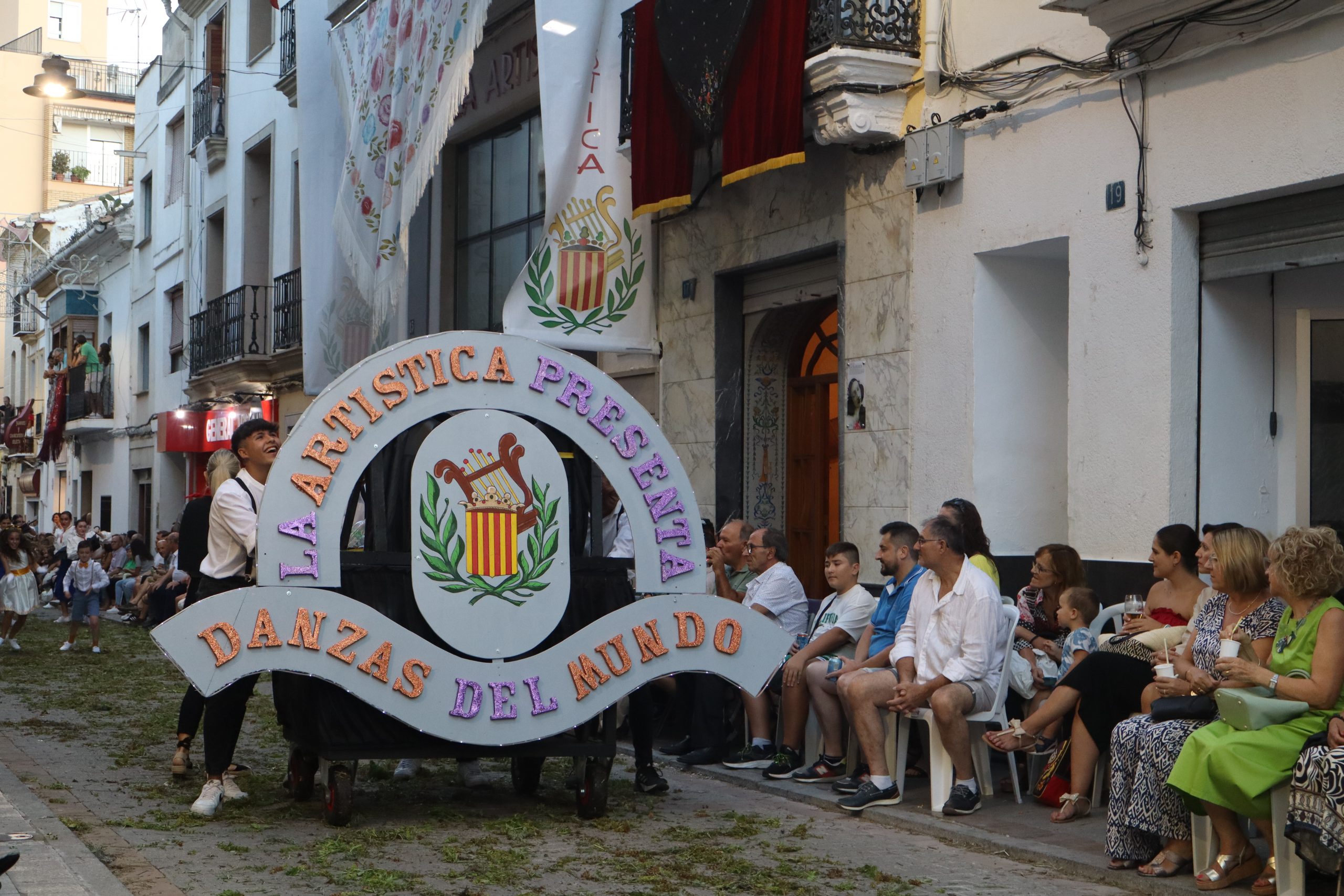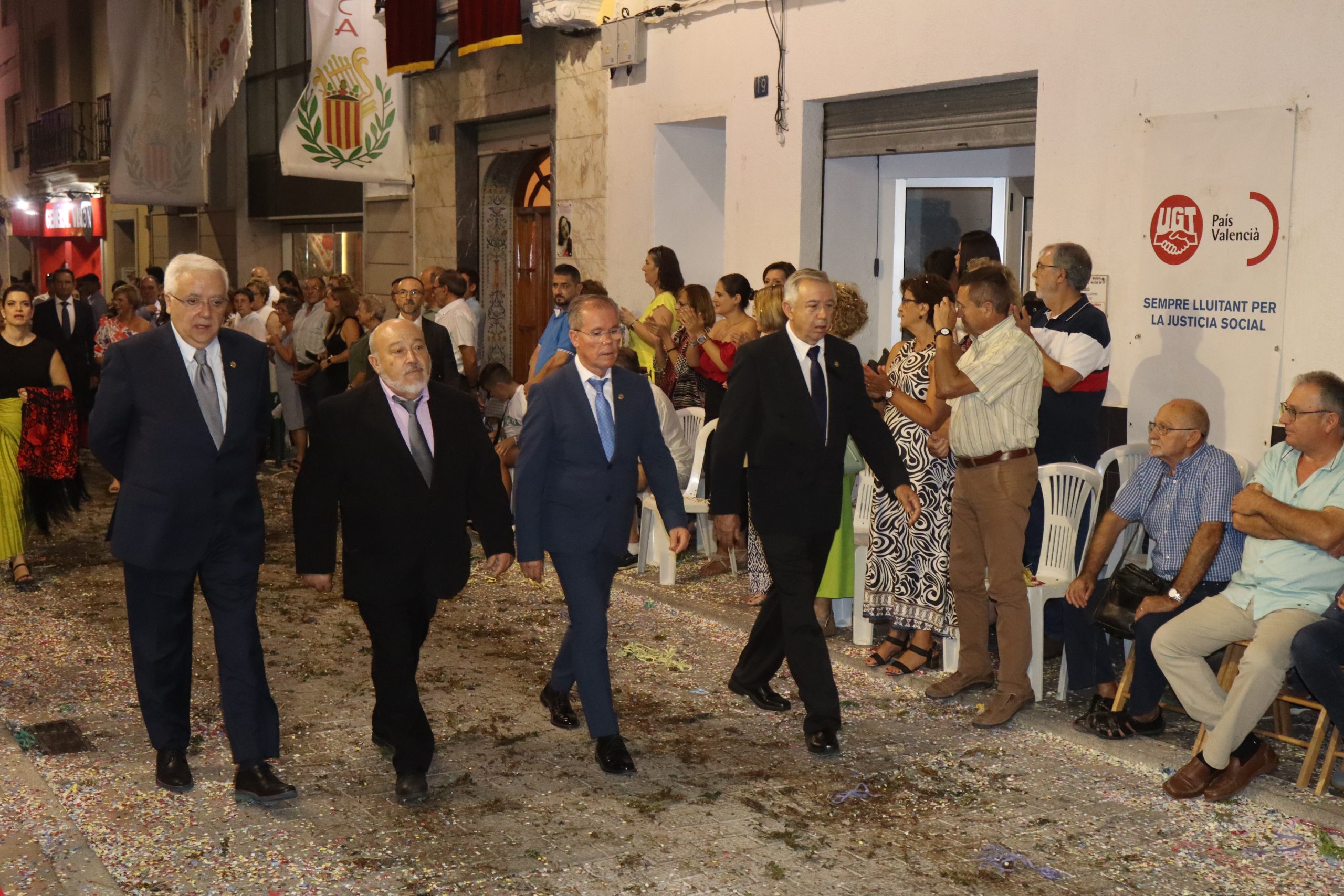 El desfile se cerró con la carroza de las Reinas y Representante del año pasado, mientras que las de este ejercicio –Paula Gisbert, Virginia Miñana Carrascosa y Sira Blanes García– desfilaron a pie por las calles buñolenses, acompañadas de diferentes formaciones musicales. La última, como no, «La Artística» de Buñol, dirigida por Mario Ortuño y que acompañaba a la Reina del «Mantón» y a la Junta Directiva, Presidida por Francisco Blasco.